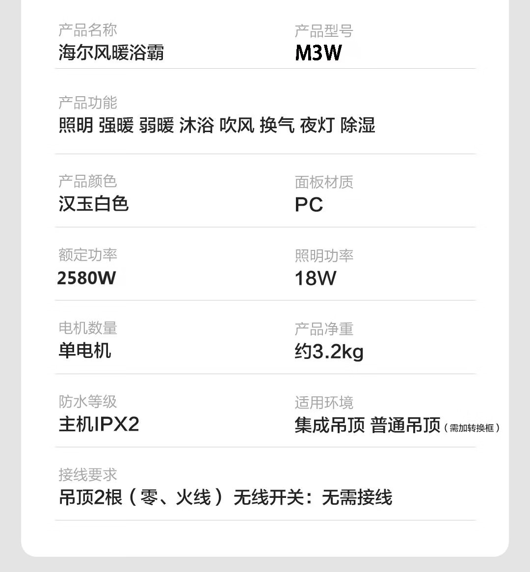 海尔浴霸暖风照明排气一体集成300x600风暖卫生间换气浴霸灯m3w