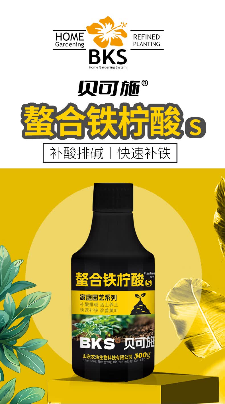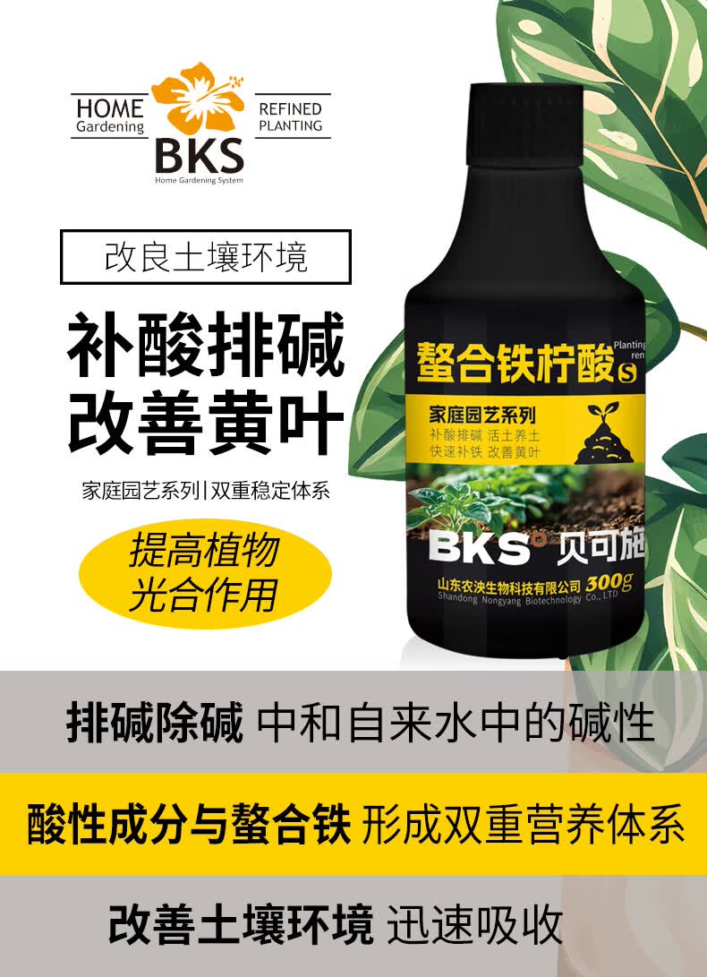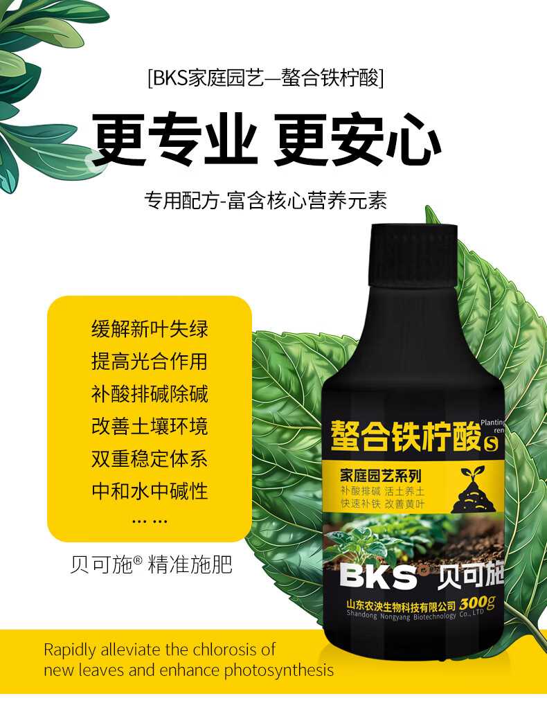 贝可施螯合铁柠酸改善新叶失绿促进光合补酸排碱绿植花卉园艺通用 螯合铁柠酸300ml*4