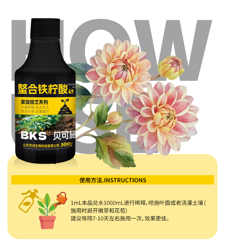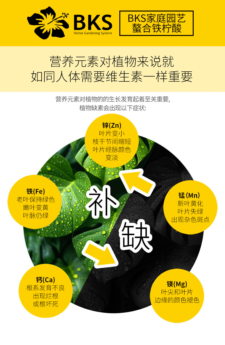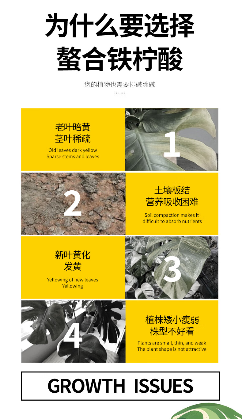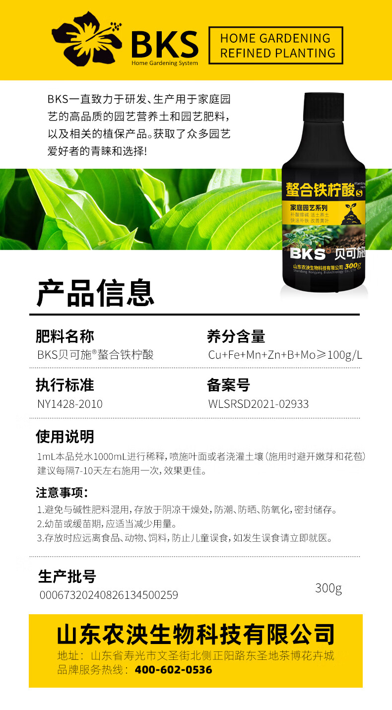 贝可施螯合铁柠酸改善新叶失绿促进光合补酸排碱绿植花卉园艺通用 螯合铁柠酸300ml*4