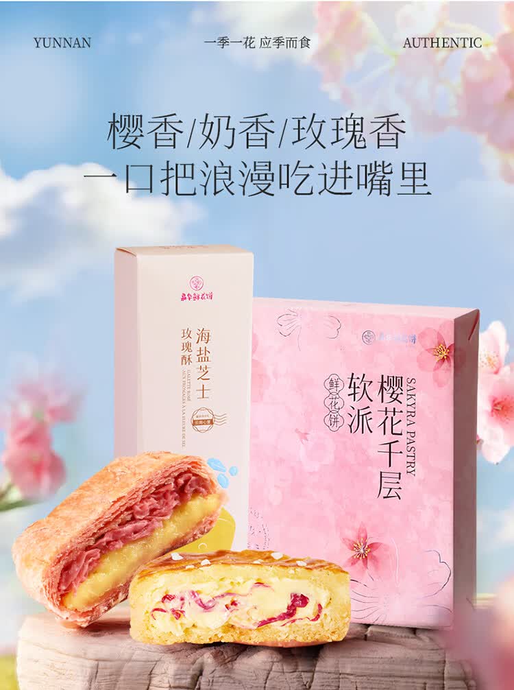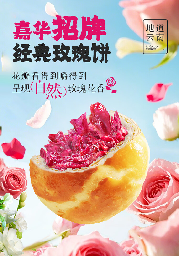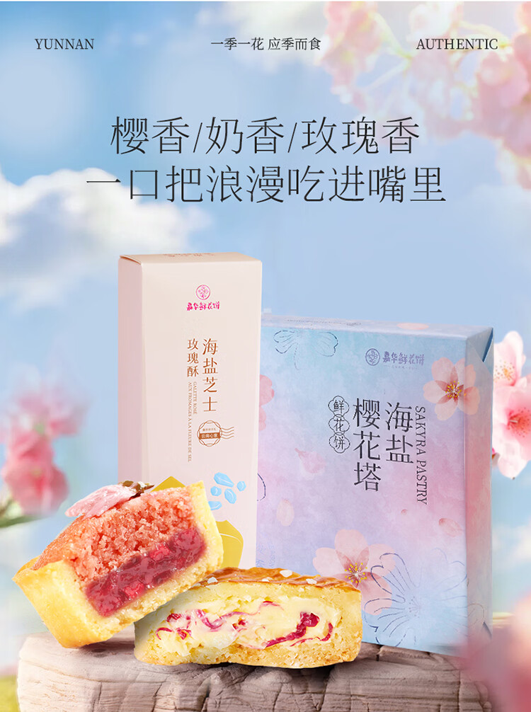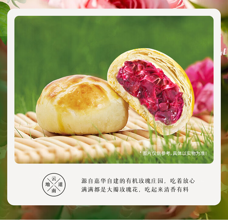 嘉华 鲜花饼多口味玫瑰花饼樱花云南特产面包零食糕点心早餐食品 经典玫瑰饼35g*10枚