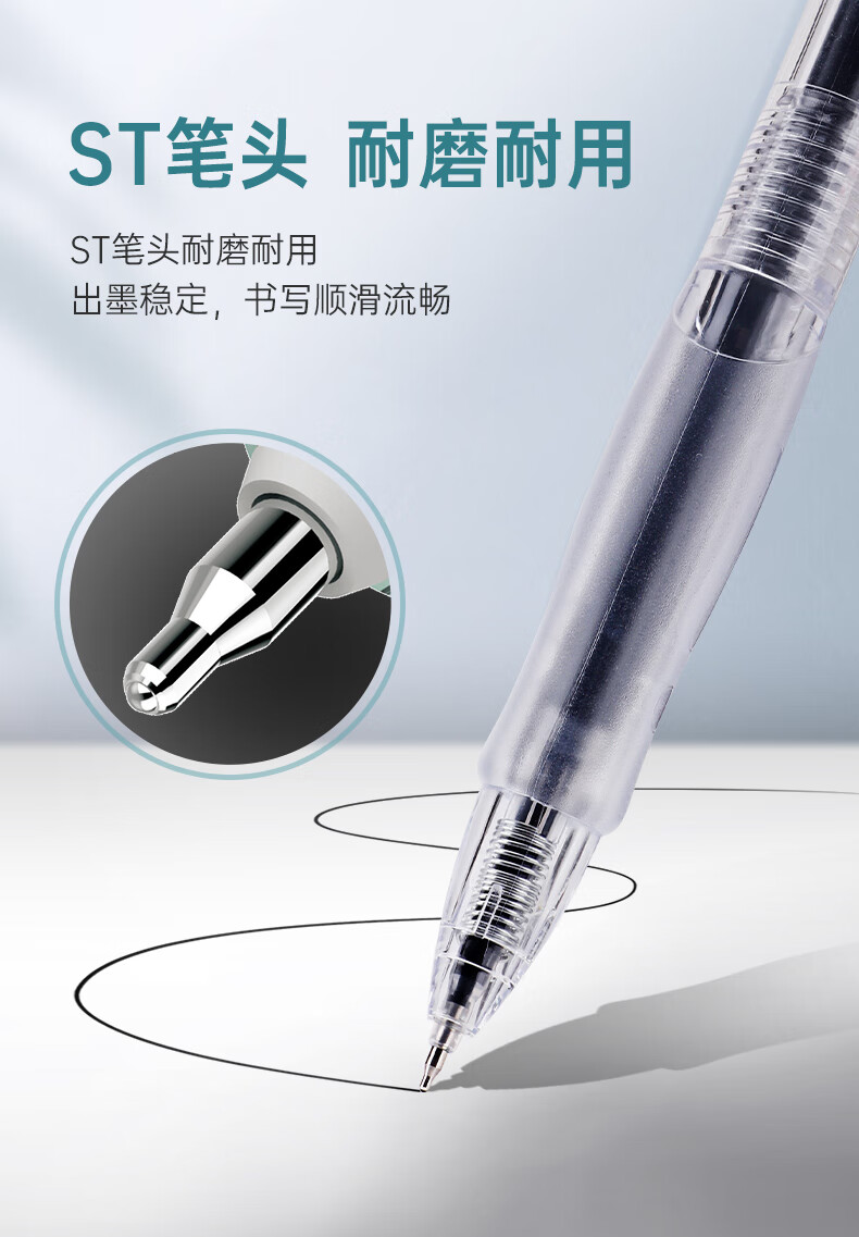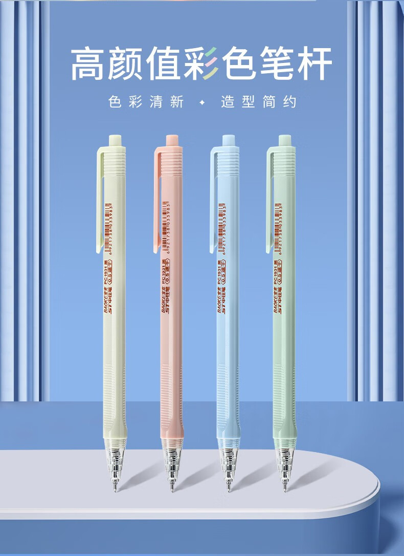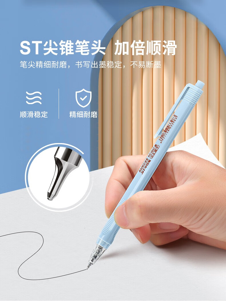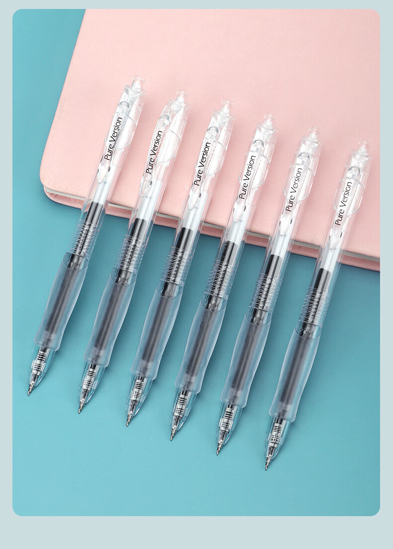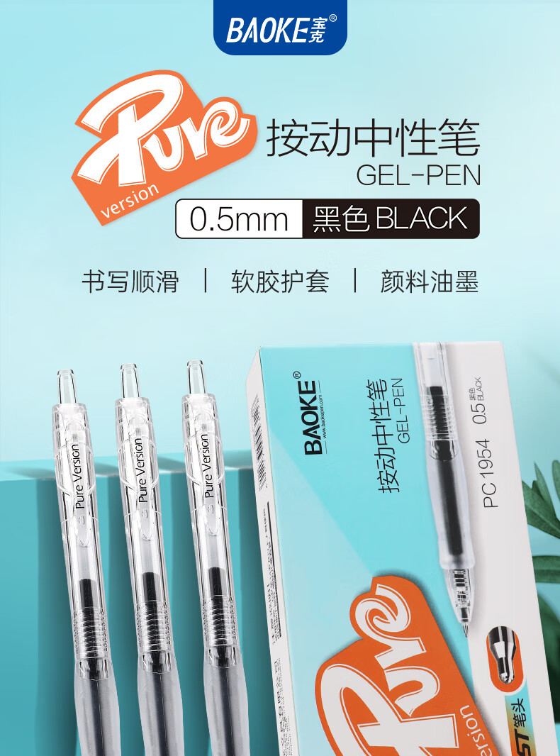 宝克(BAOKE)刷题笔ST头双核芯按动中性笔速干学生初高中生专用刷题笔黑笔替芯顺滑0.5碳素水笔 黑笔【透明软胶护套】12支/盒 0.5mm 黑色ST头按动中性笔 包邮