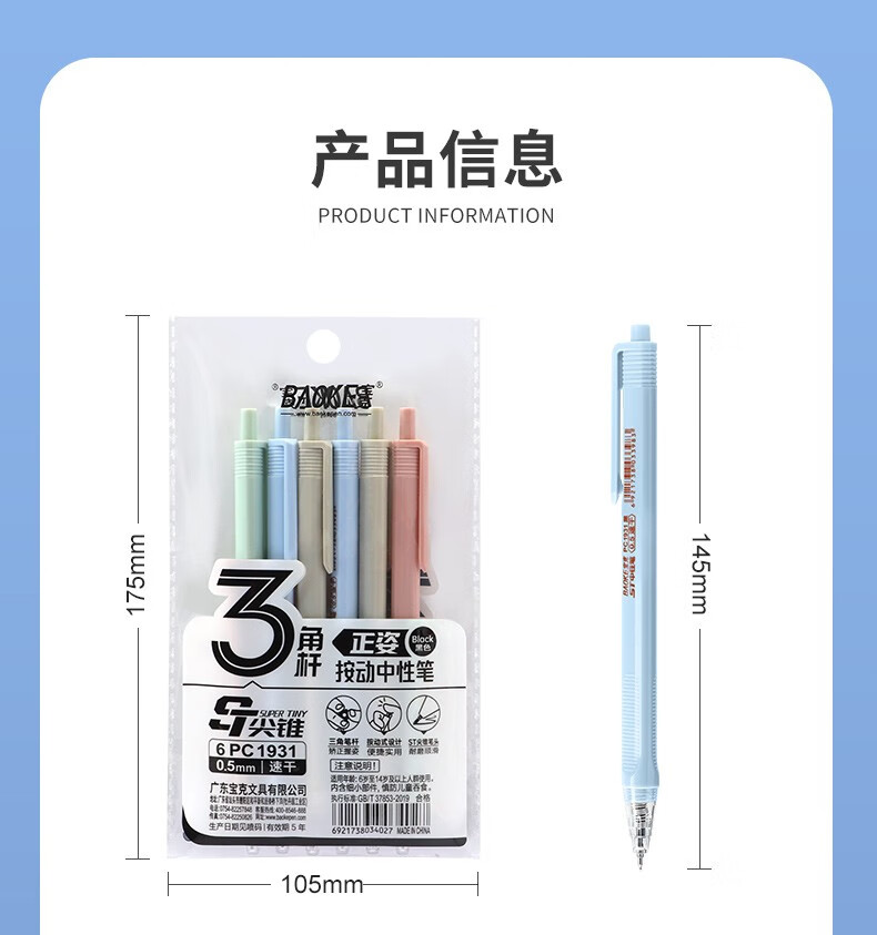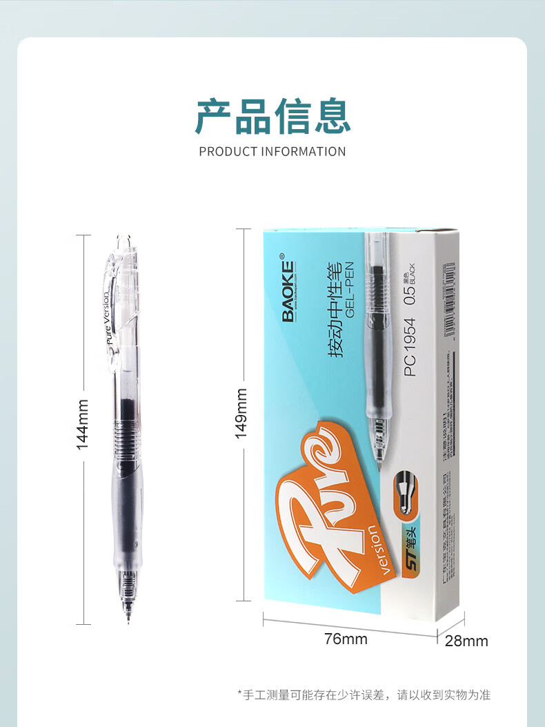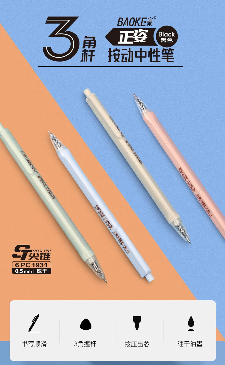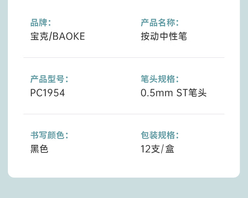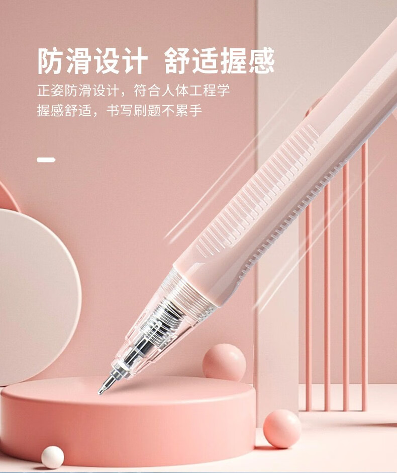 宝克(BAOKE)刷题笔ST头双核芯按动中性笔速干学生初高中生专用刷题笔黑笔替芯顺滑0.5碳素水笔 黑笔【透明软胶护套】12支/盒 0.5mm 黑色ST头按动中性笔 包邮