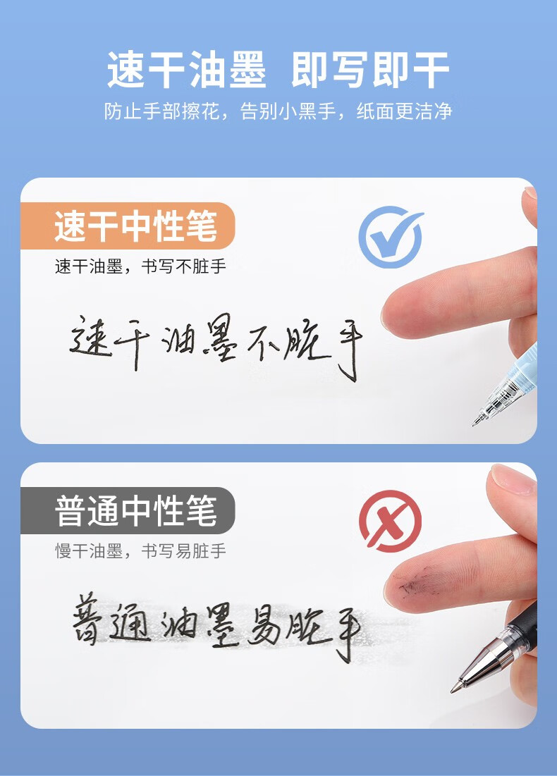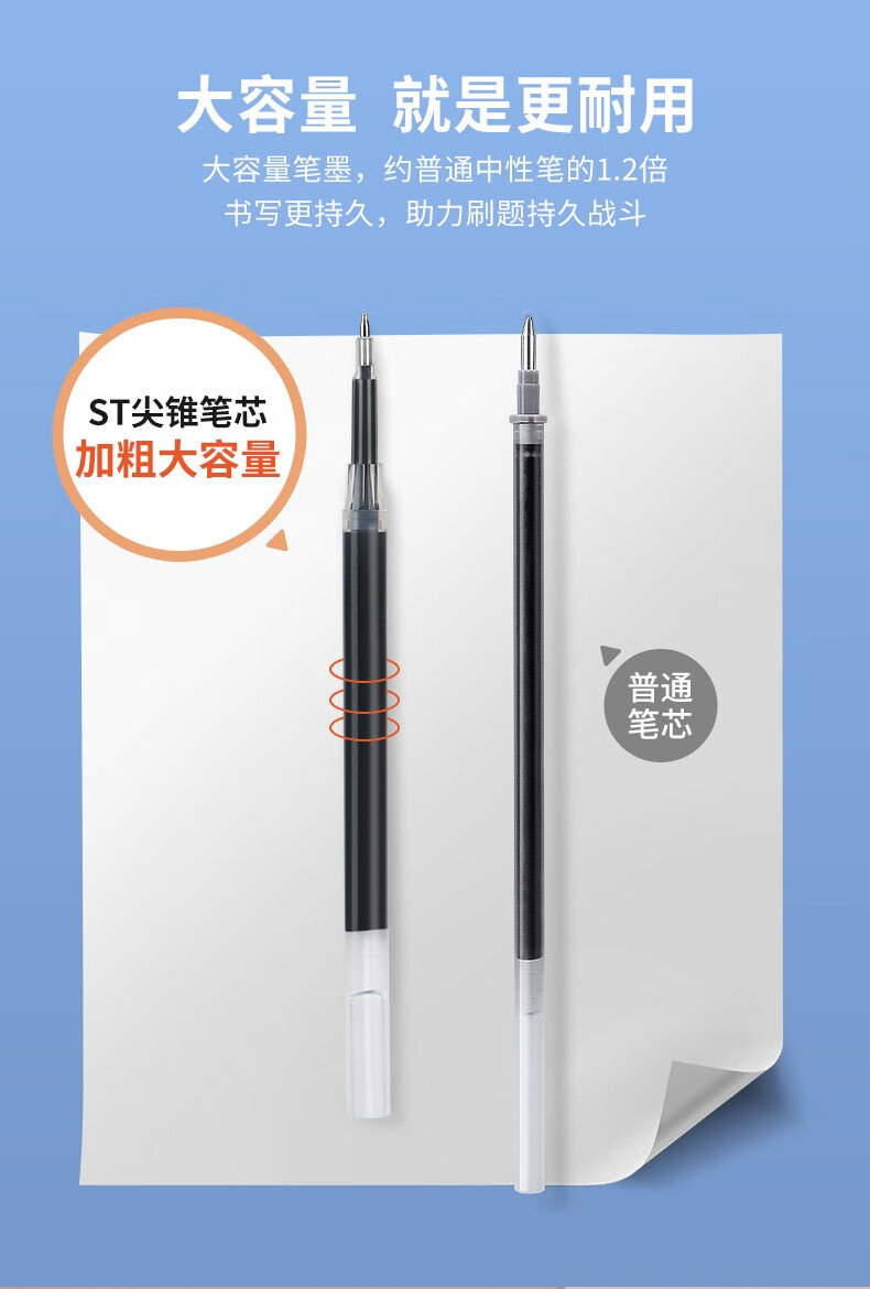 得力按动中性笔水笔学生用大容量黑色st速干六边形战士考试小分贝碳素超黑防水签字笔芯0.5按压刷题笔 【静音速干】2支+10支替芯 0.5mm