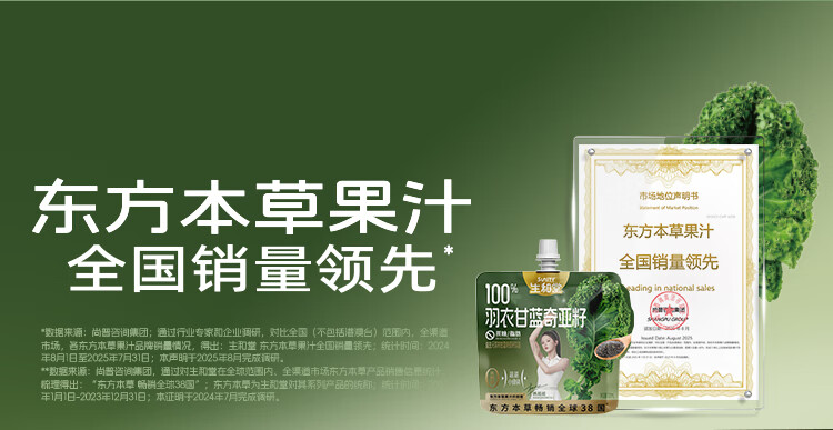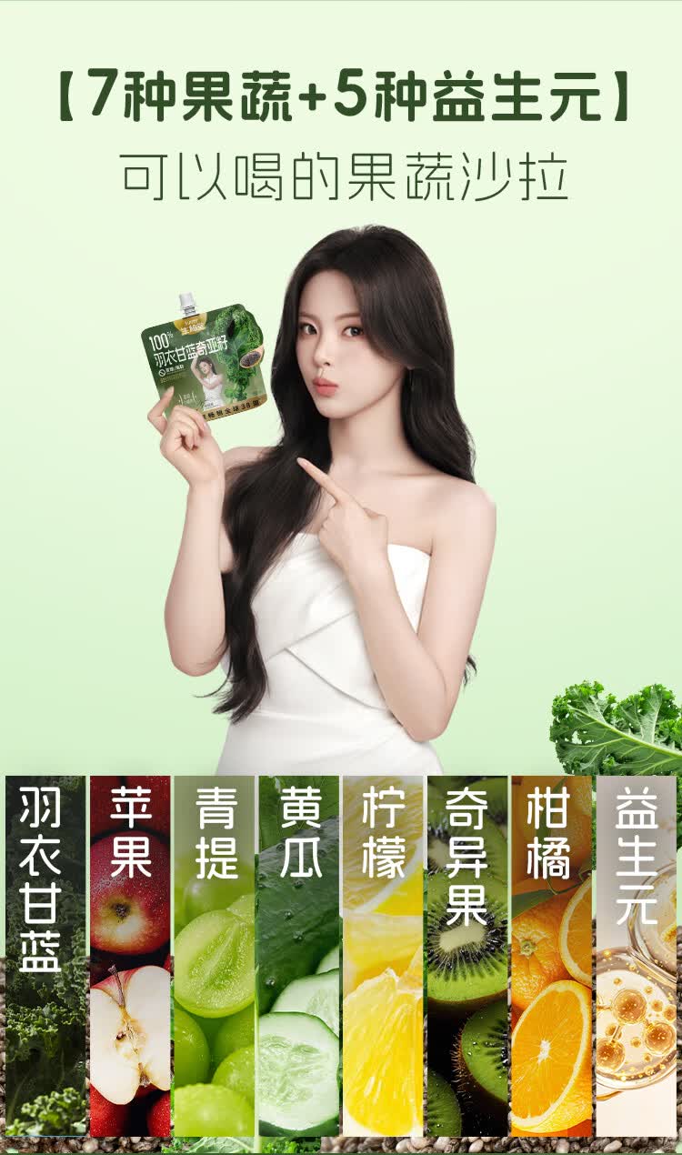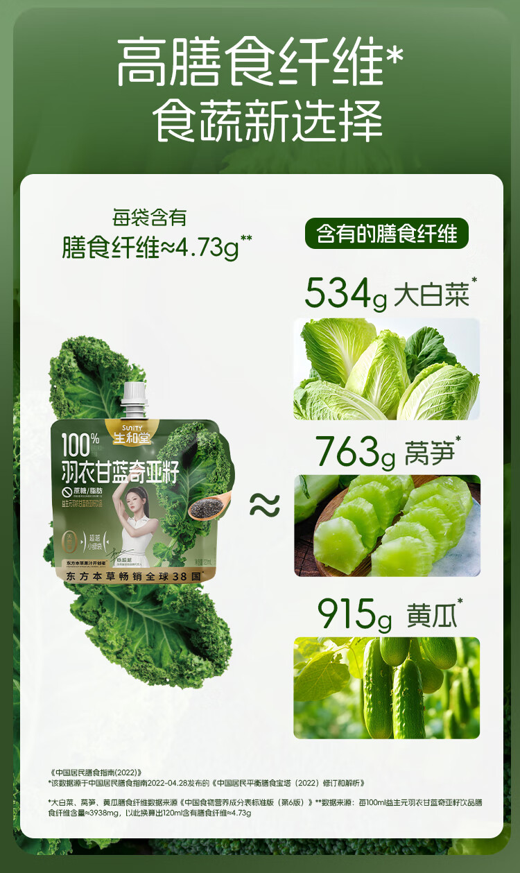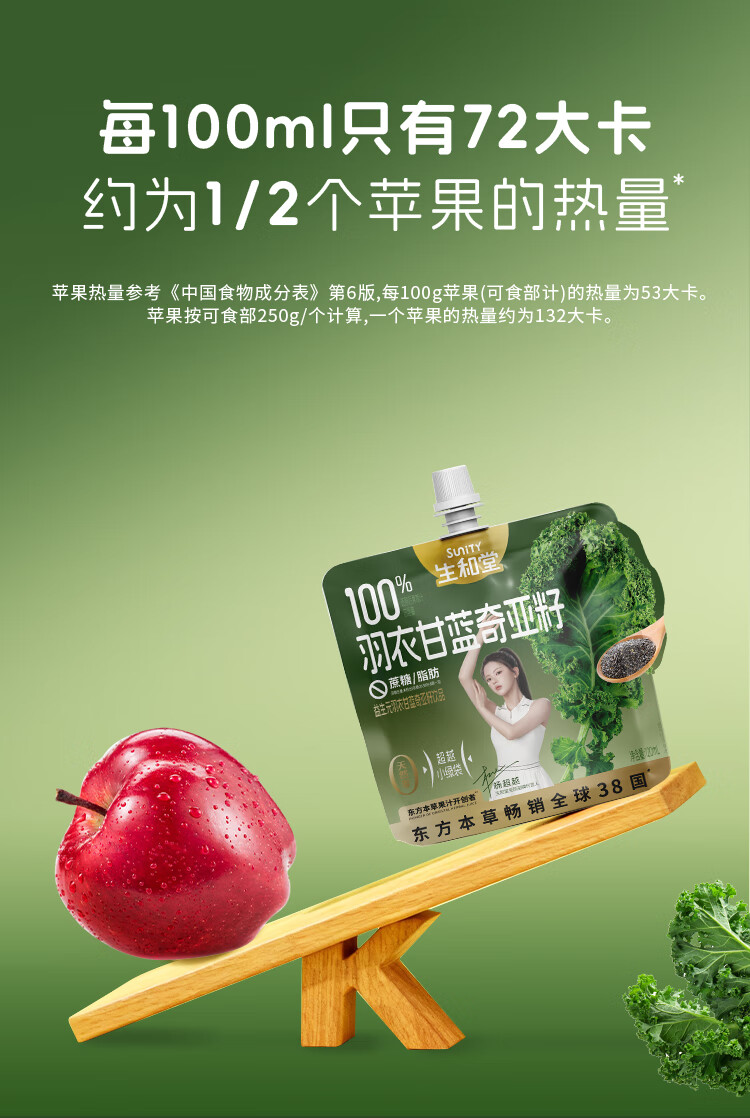 生和堂杨超越同款益生元羽衣甘蓝奇亚籽饮品120ml 7种果蔬含膳食纤维 10袋羽衣甘蓝饮品
