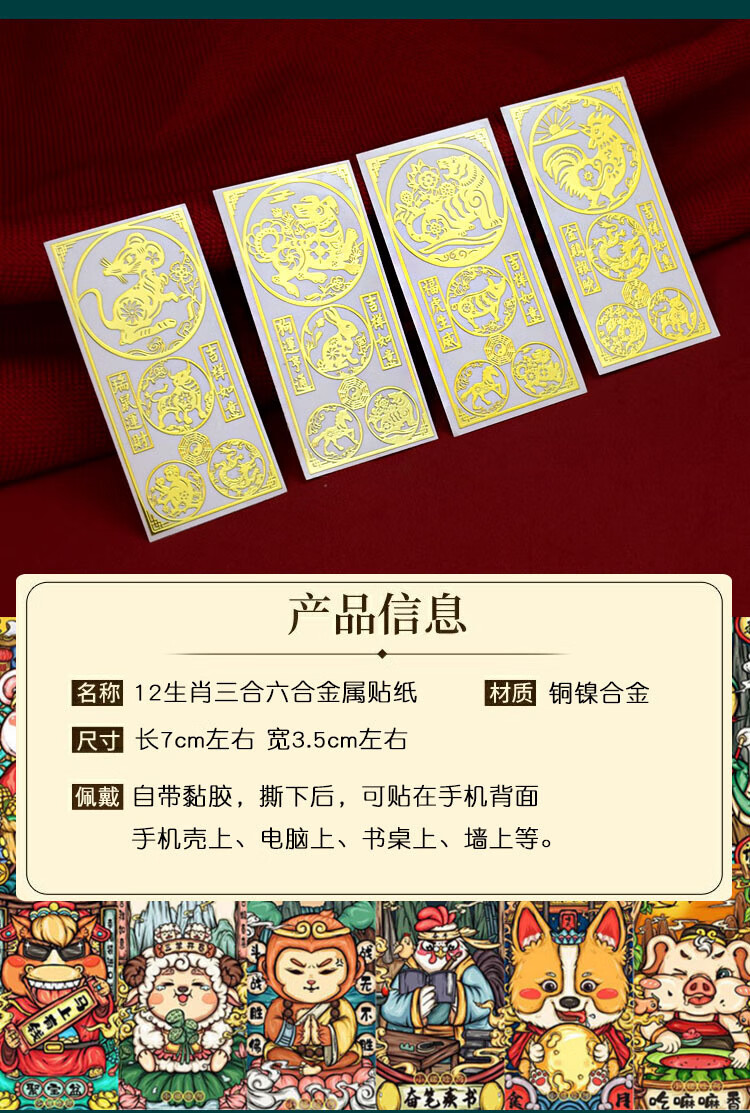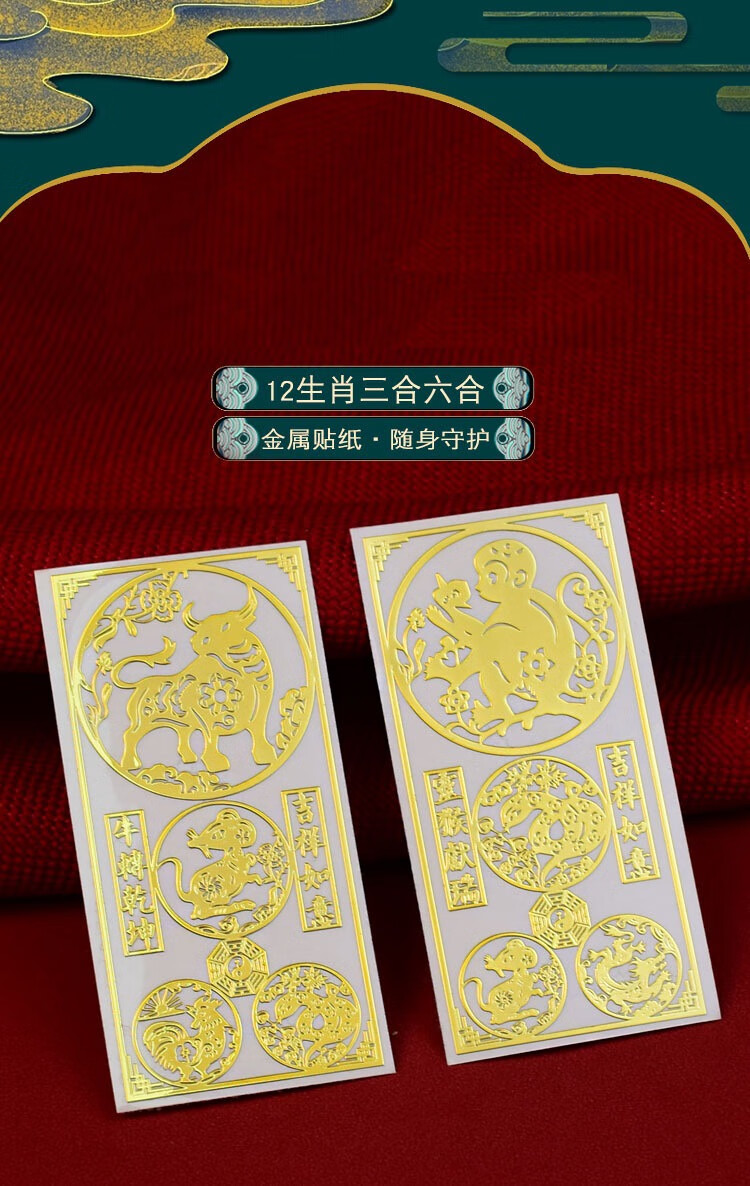 乐睦唯【厂家直发】手机金属背贴 鼠牛龙蛇马十二生肖三合六合纸贴不留 生肖【鼠】三合六合金属贴 默认