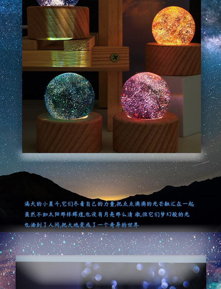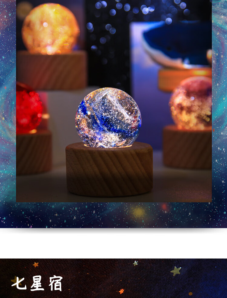 映棠七彩水晶球琉璃小夜灯桌面装饰摆件送女生男朋友走心高级生日礼物 7颗琉璃球+长木底座+礼盒