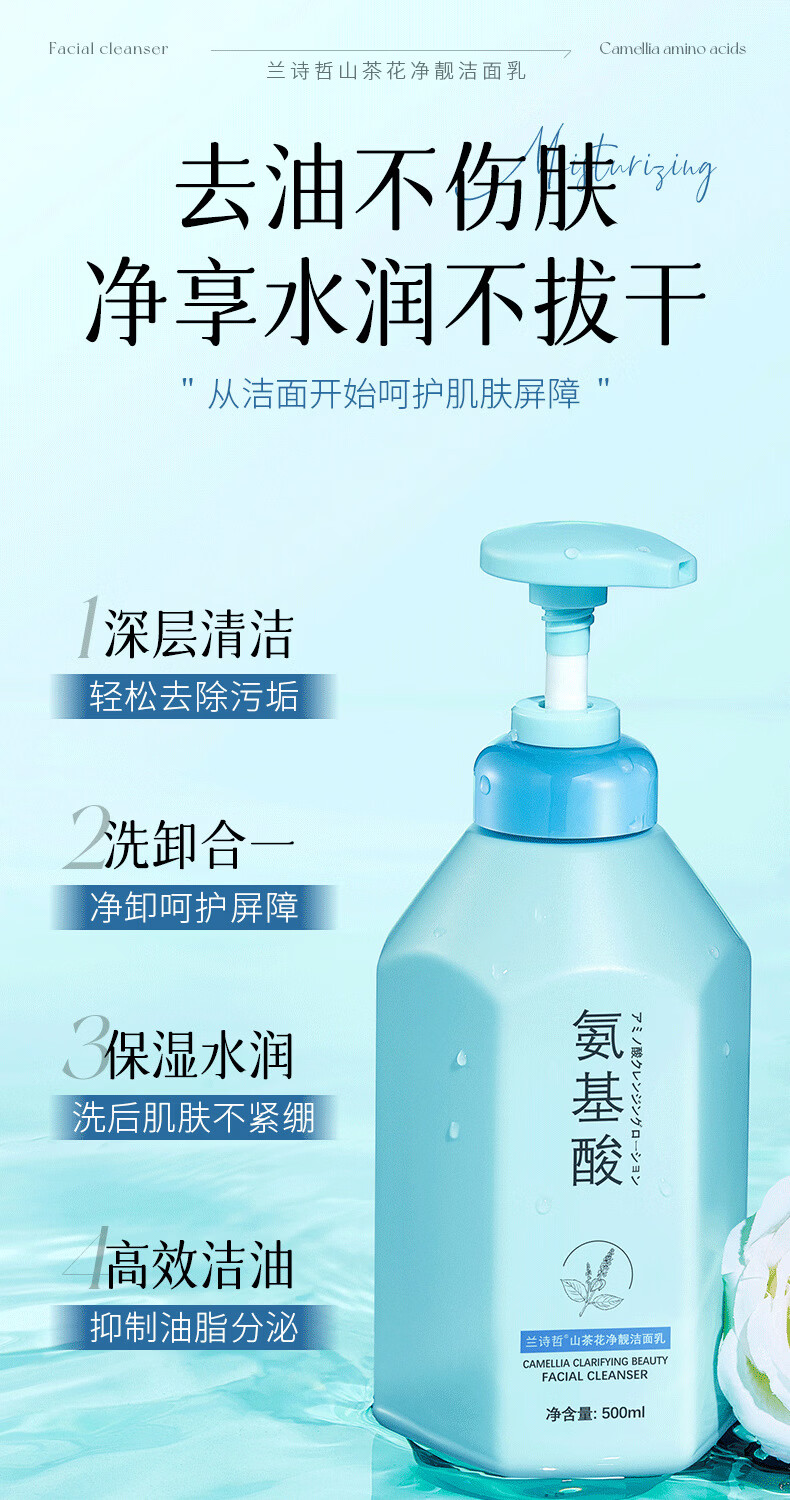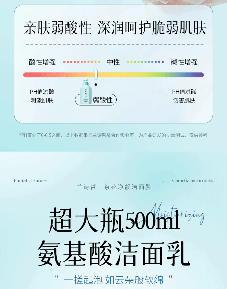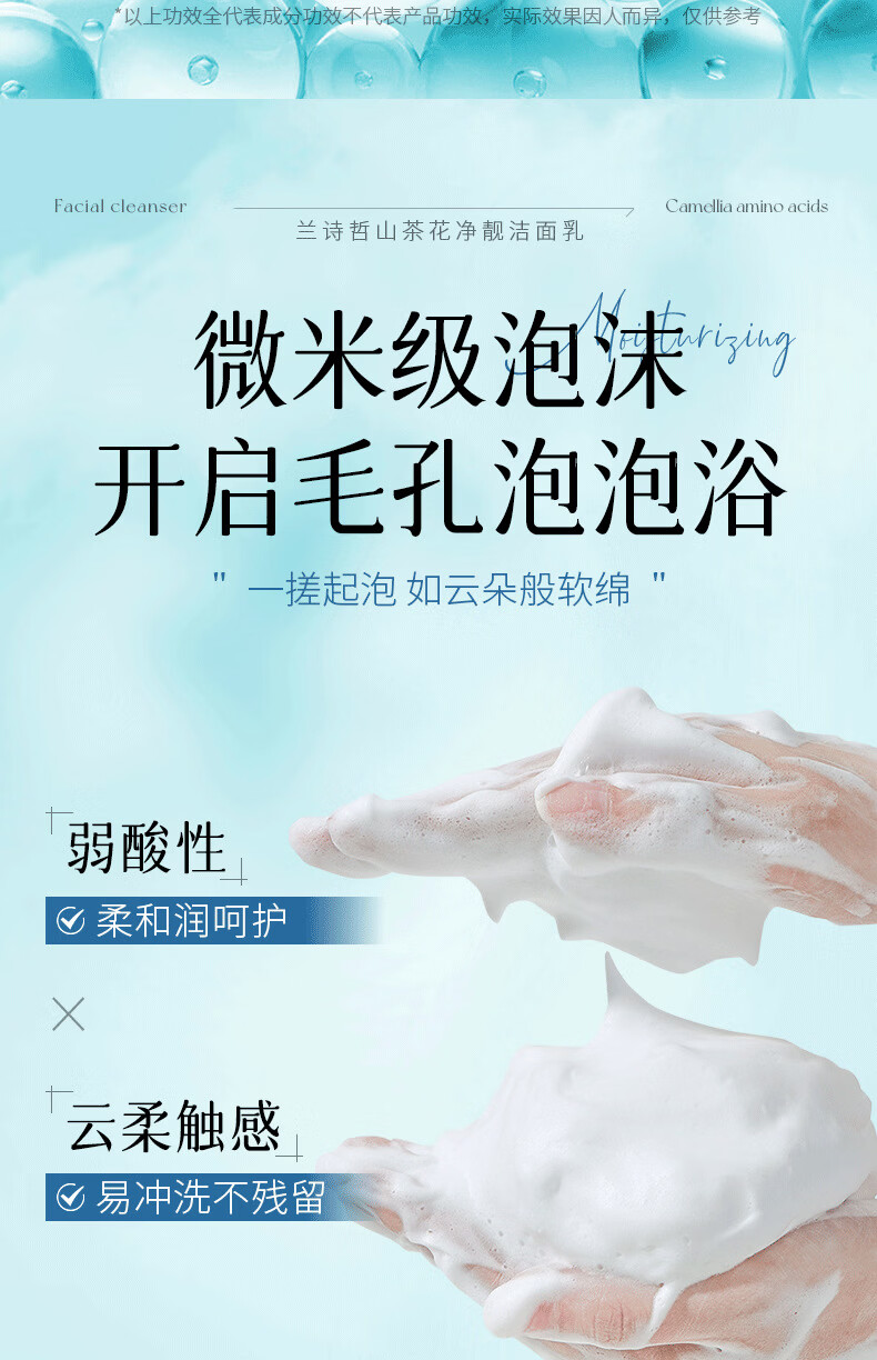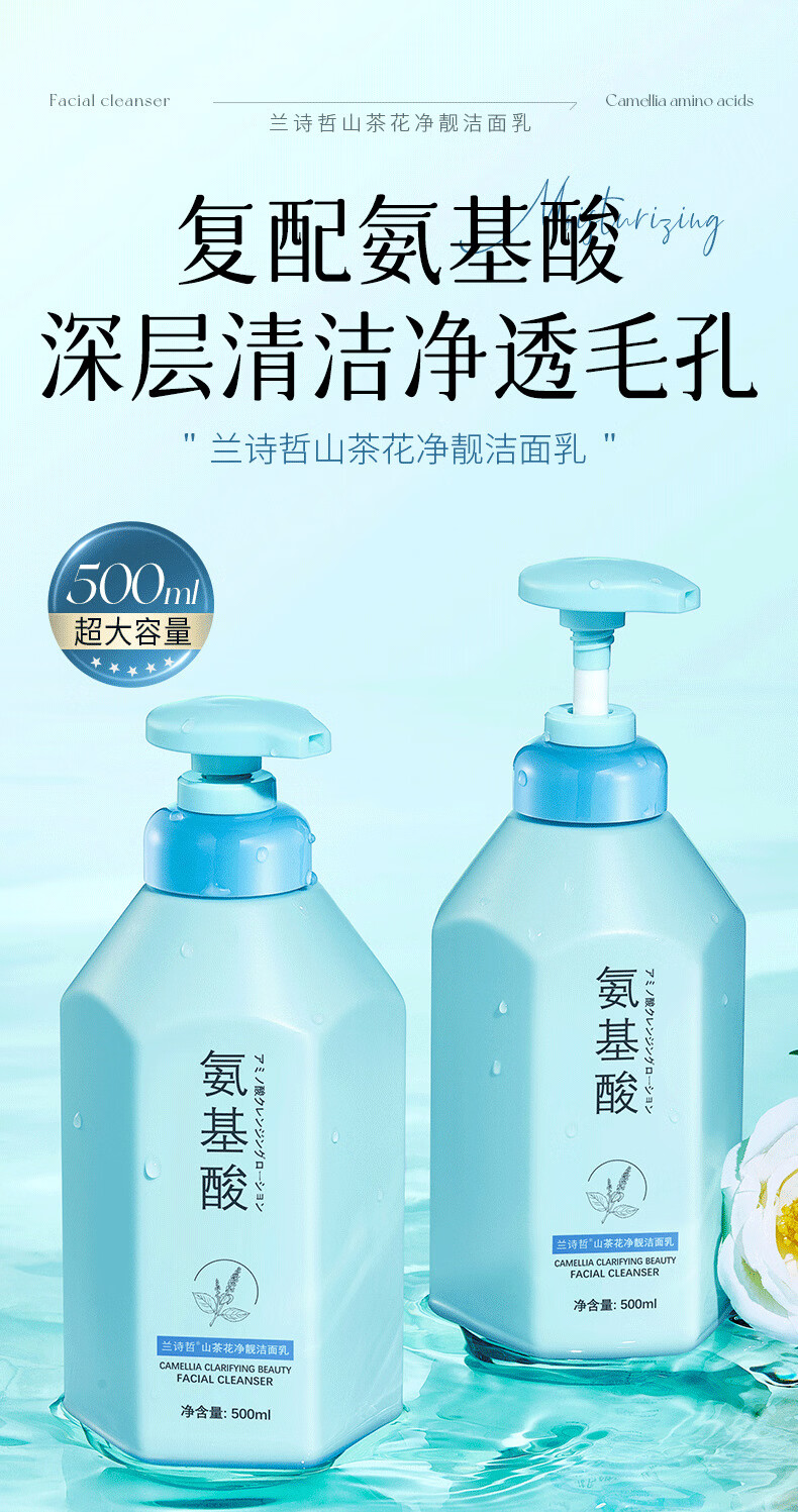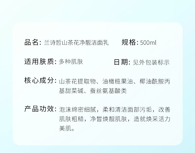 兰诗哲山茶花净靓洁面乳补水滋润保湿嫩滑氨基酸洗面奶护肤品 洁面乳500ml