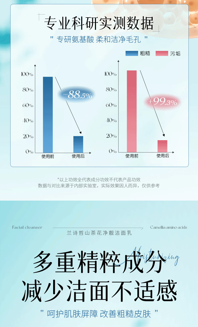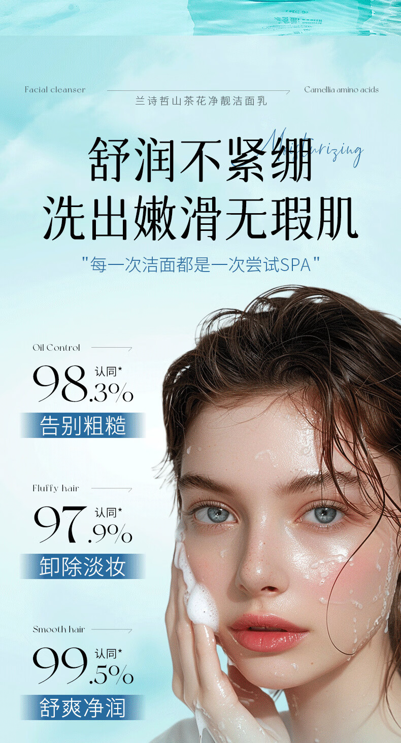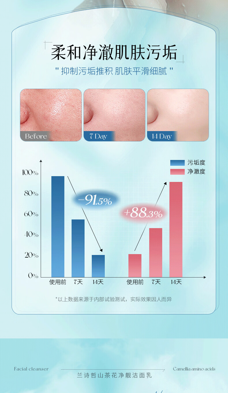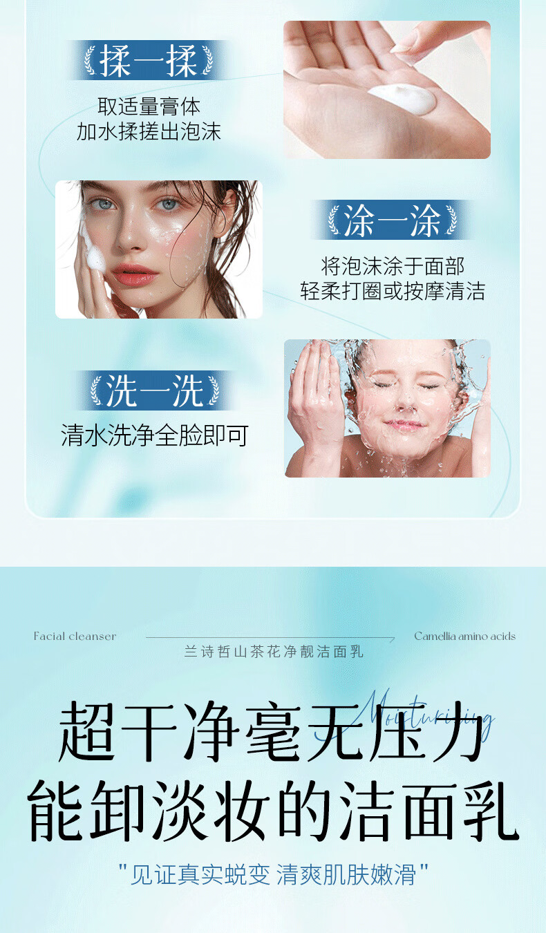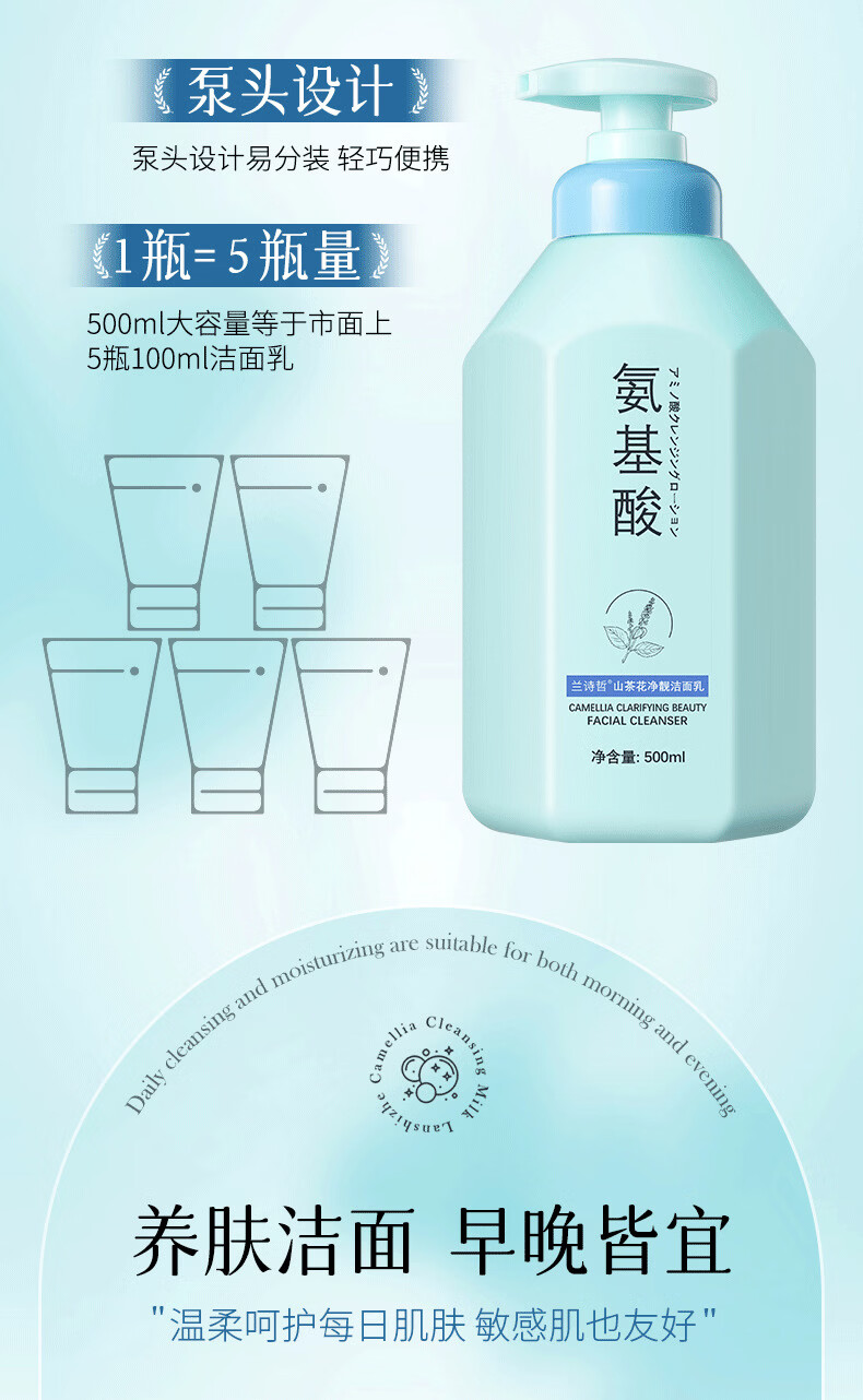 兰诗哲山茶花净靓洁面乳补水滋润保湿嫩滑氨基酸洗面奶护肤品 洁面乳500ml