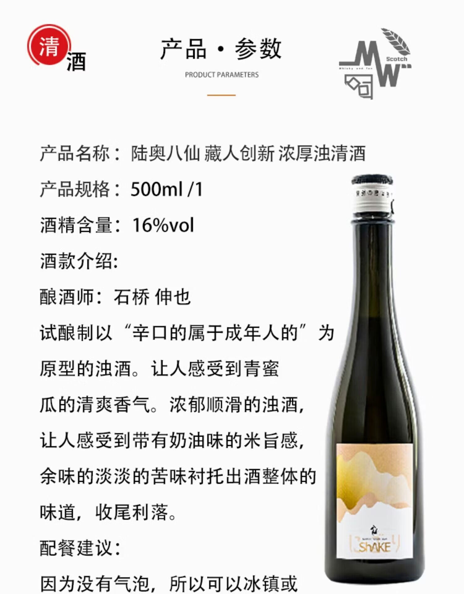 八仙 陆奥八仙系列 藏人创新赤色酵母气泡酒 创新浓厚 男山经典标清酒 藏人创新 赤色酵母微气泡清酒500ml