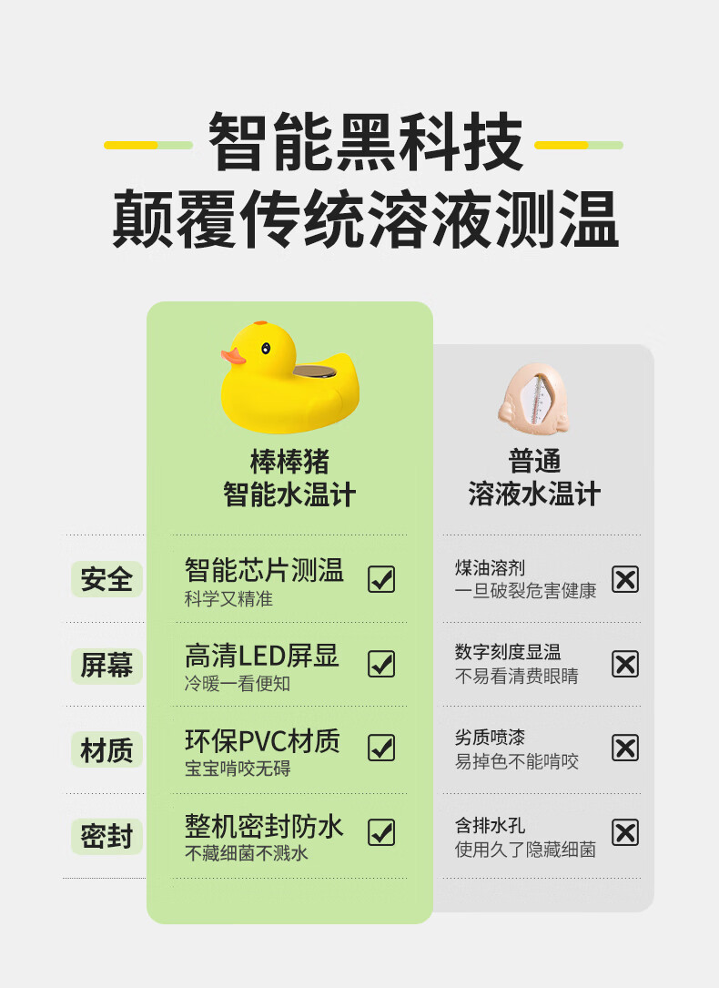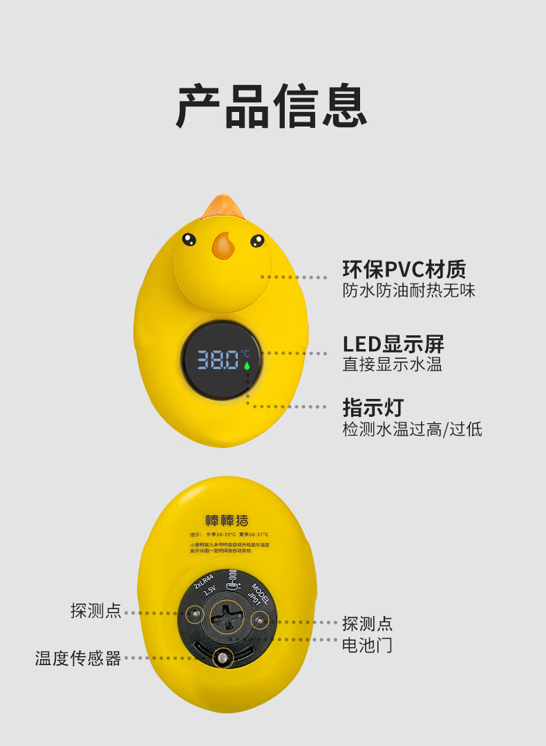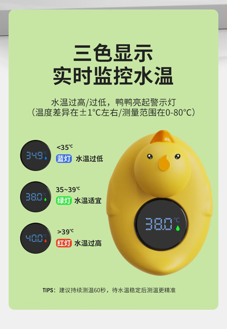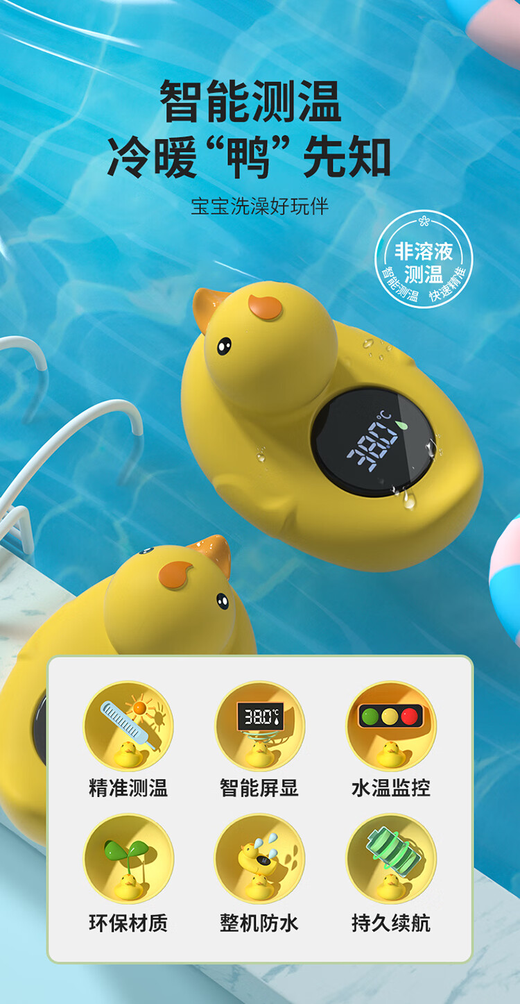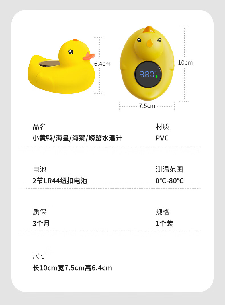 棒棒猪婴儿童洗澡纽扣电池水温计防烫提醒器洗澡测水温防烫伤 小黄鸭