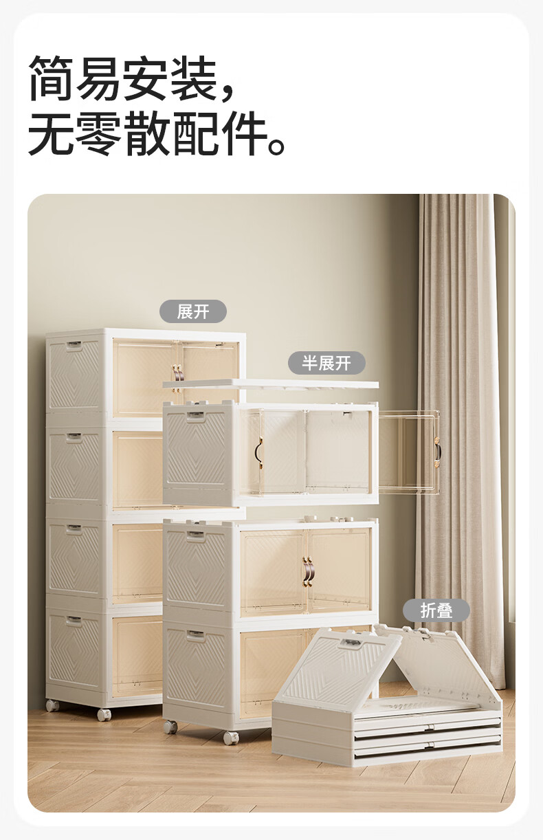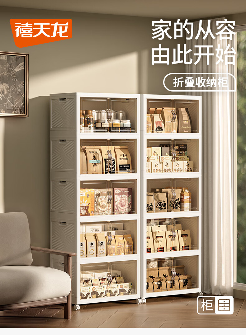 禧天龙收纳柜免安装可折叠衣柜零食储物柜厨房客厅杂物玩具收纳箱柜子 55cm 面宽【55*35*154.5cm五层】 五层【超大容量】