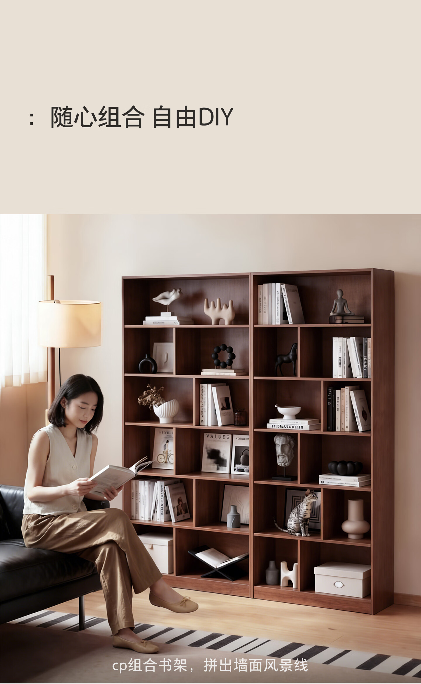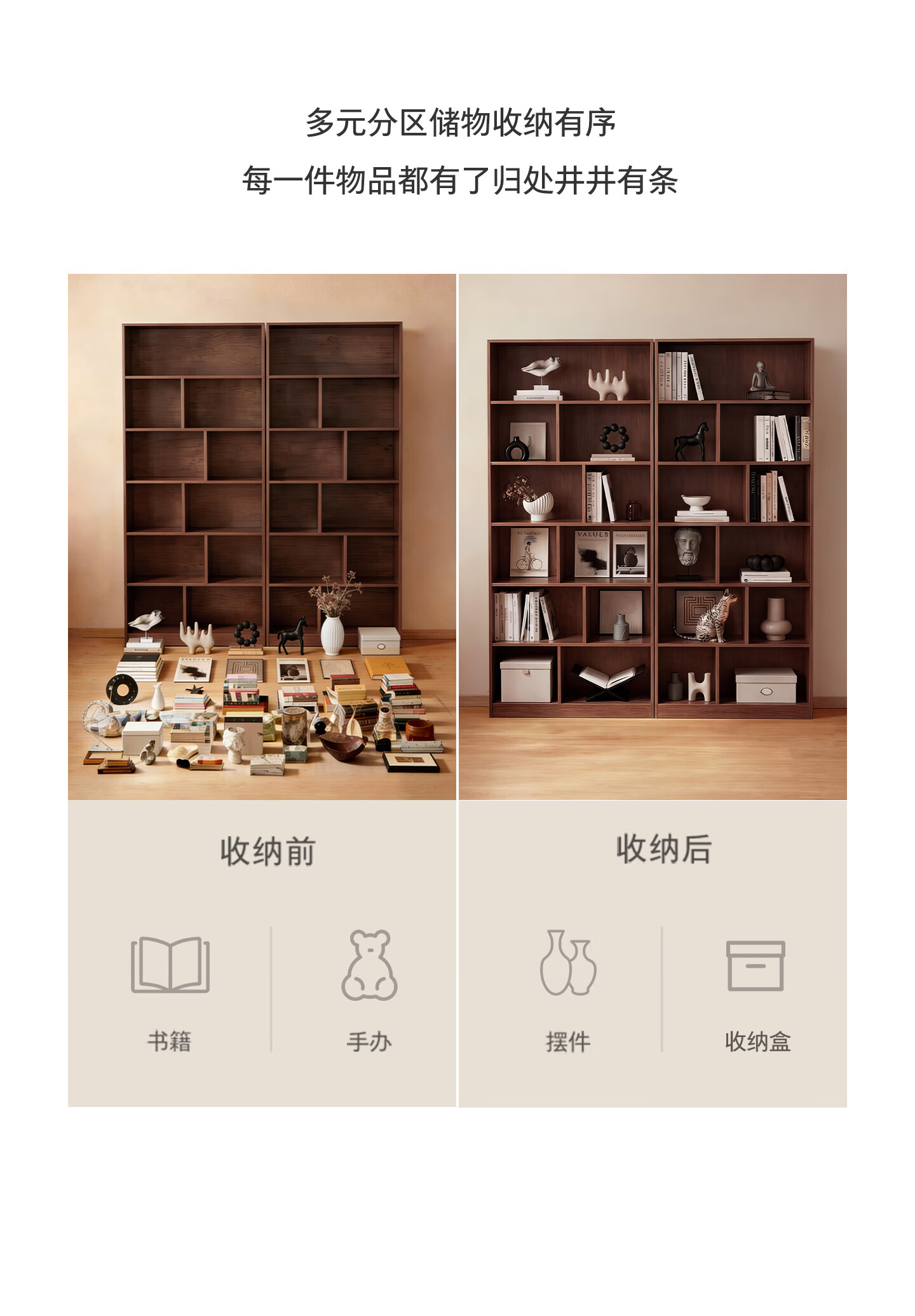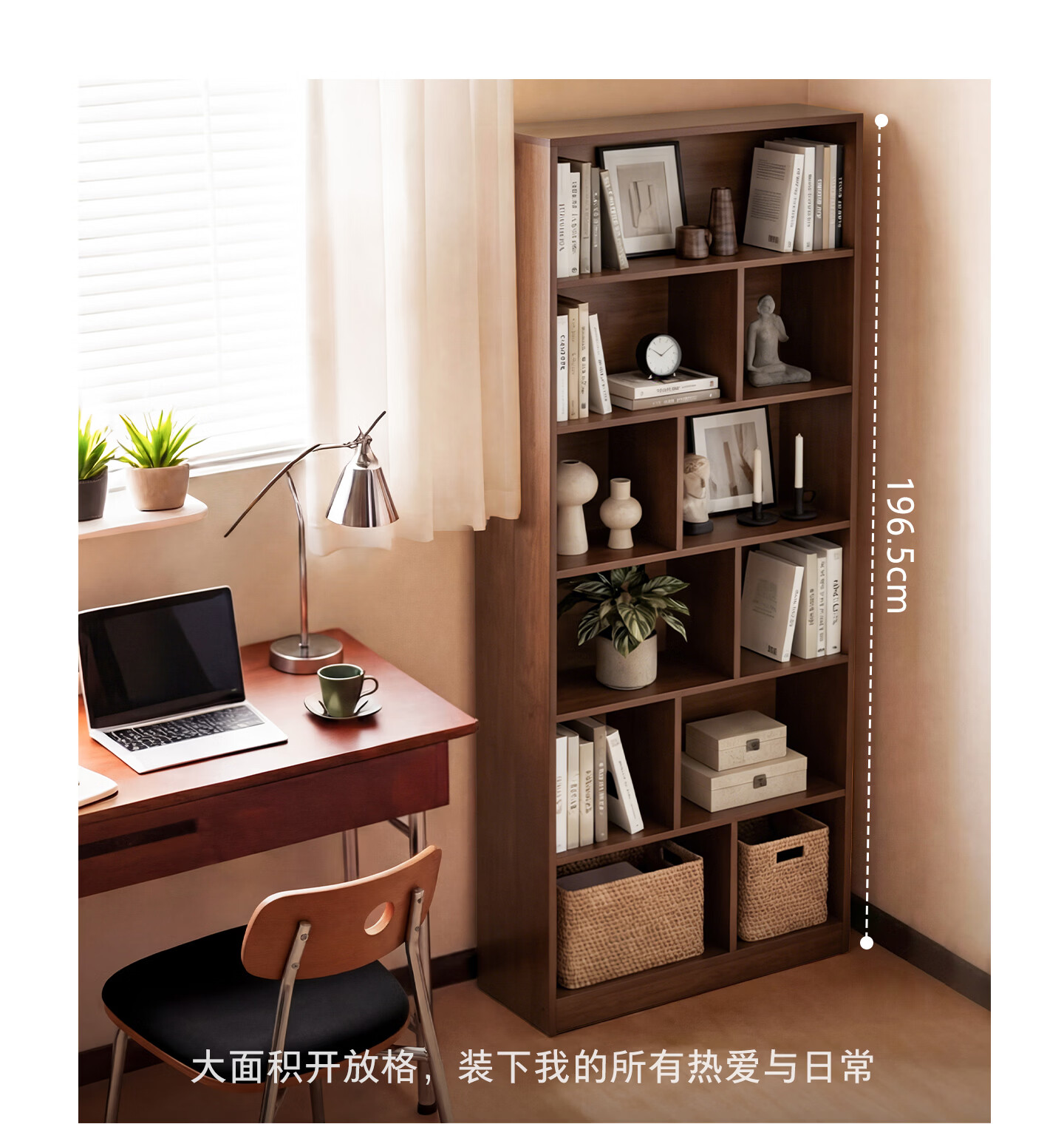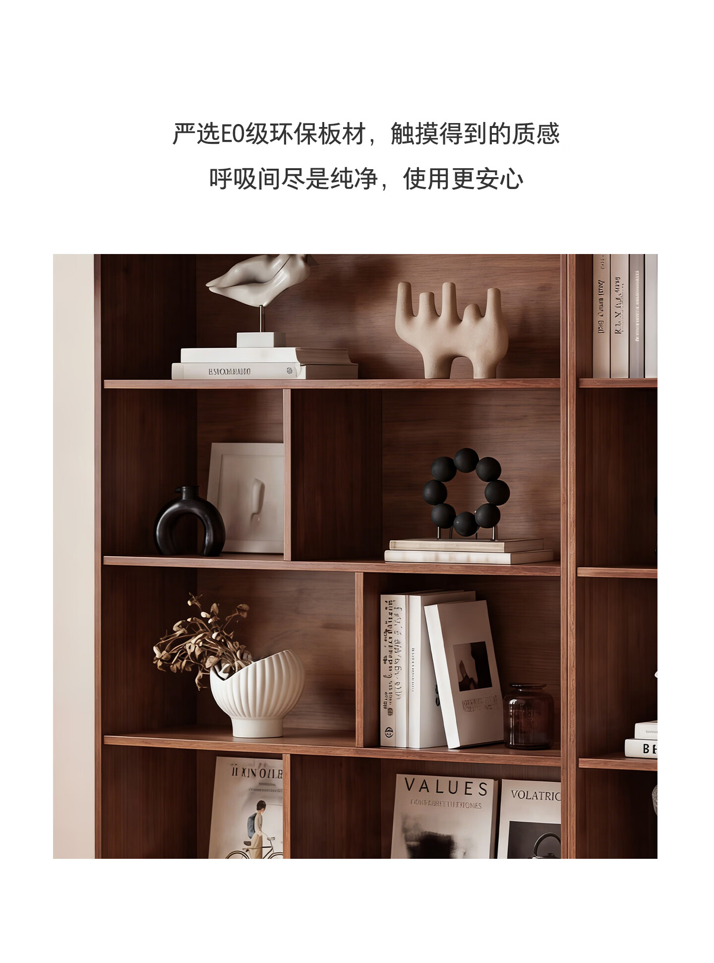 顾家家居书架置物架落地整墙柜子展示柜家用书柜一体靠墙客厅储物柜格子柜 【6层11格】胡桃色100*30*196cm 【送货上门免费安装】