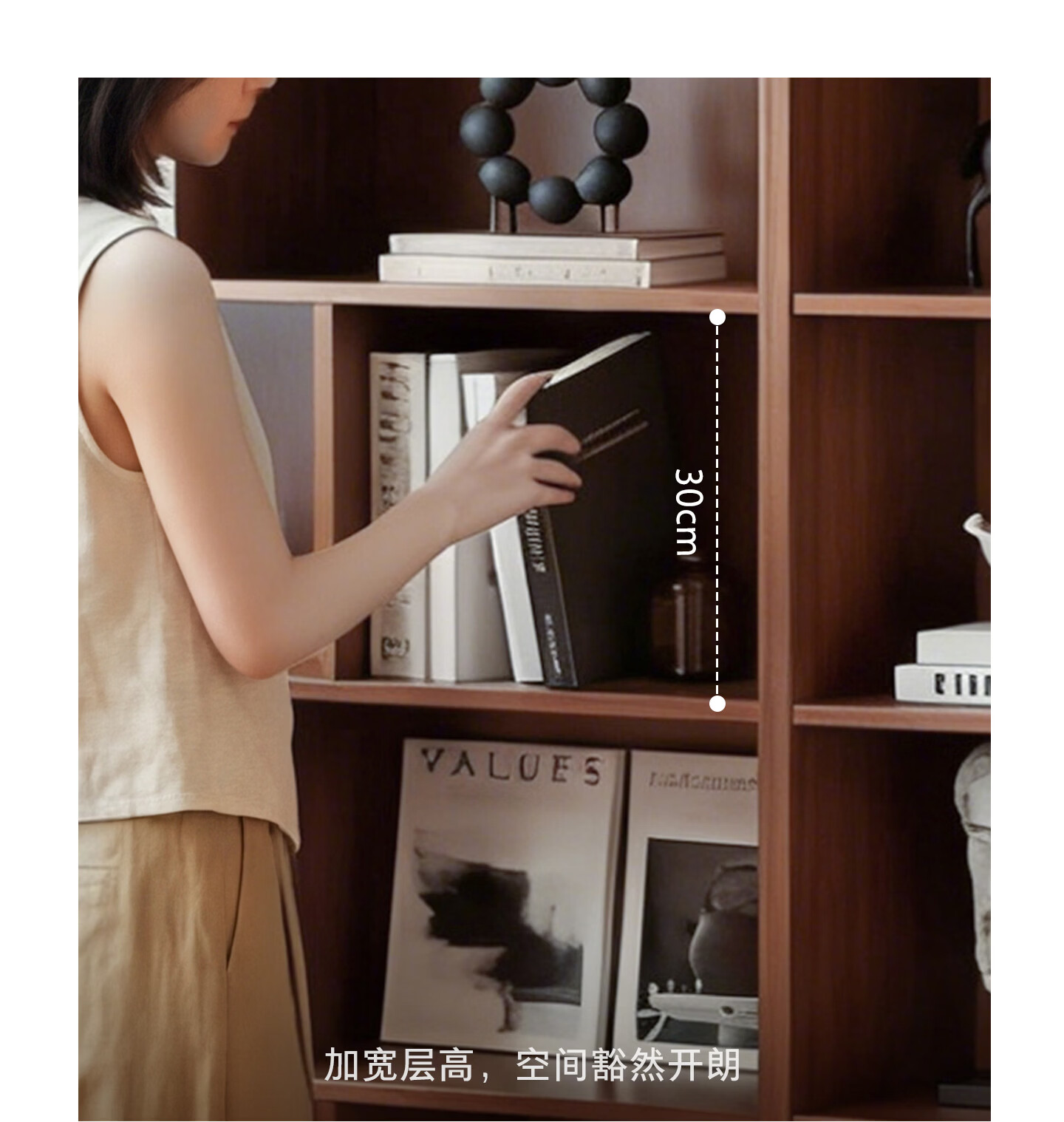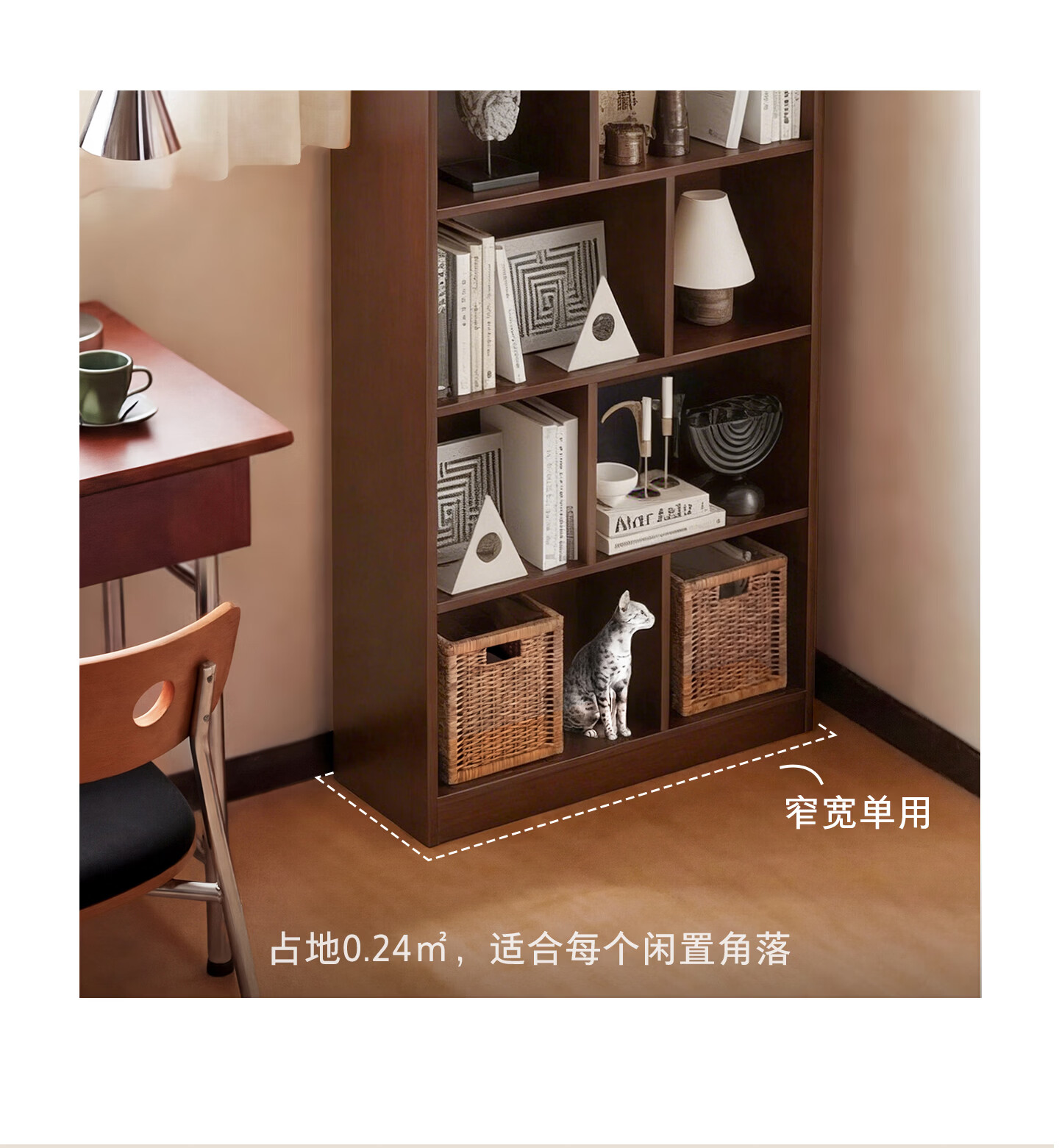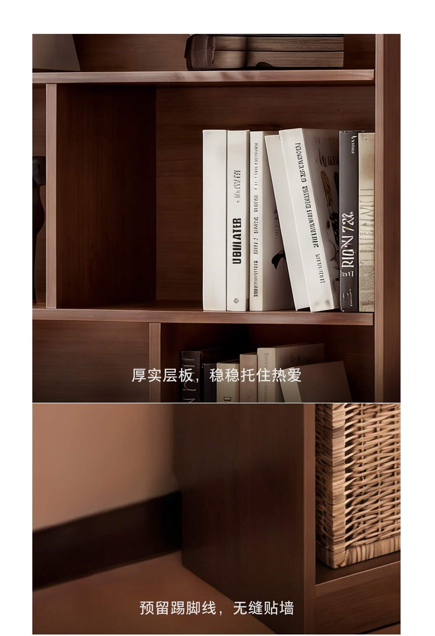 顾家家居书架置物架落地整墙柜子展示柜家用书柜一体靠墙客厅储物柜格子柜 【6层11格】胡桃色100*30*196cm 【送货上门免费安装】