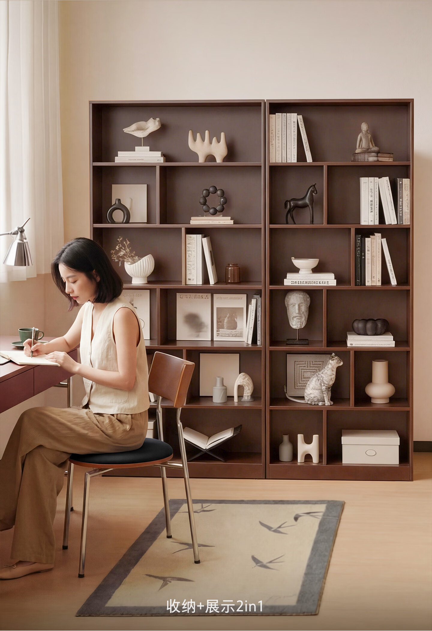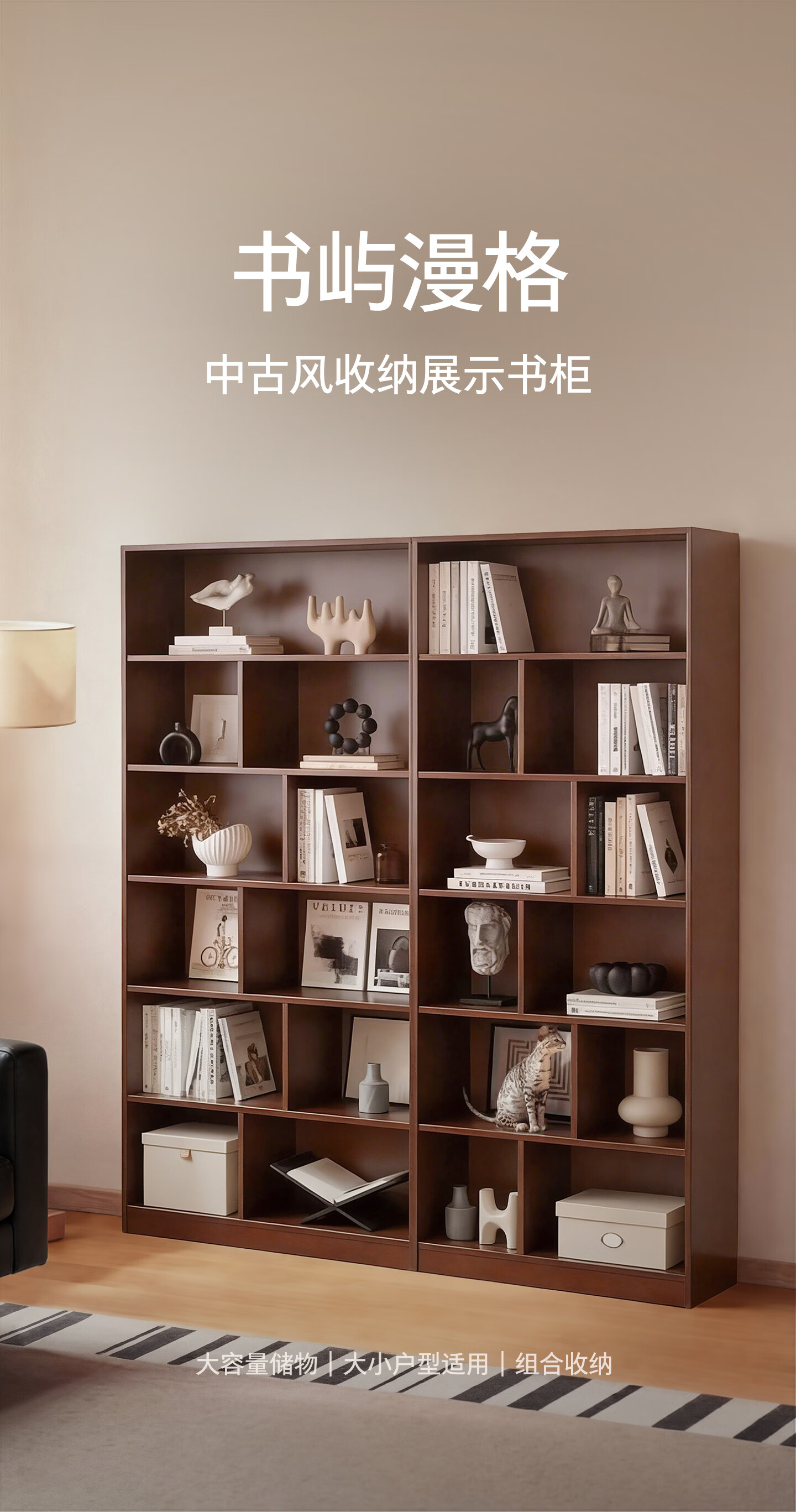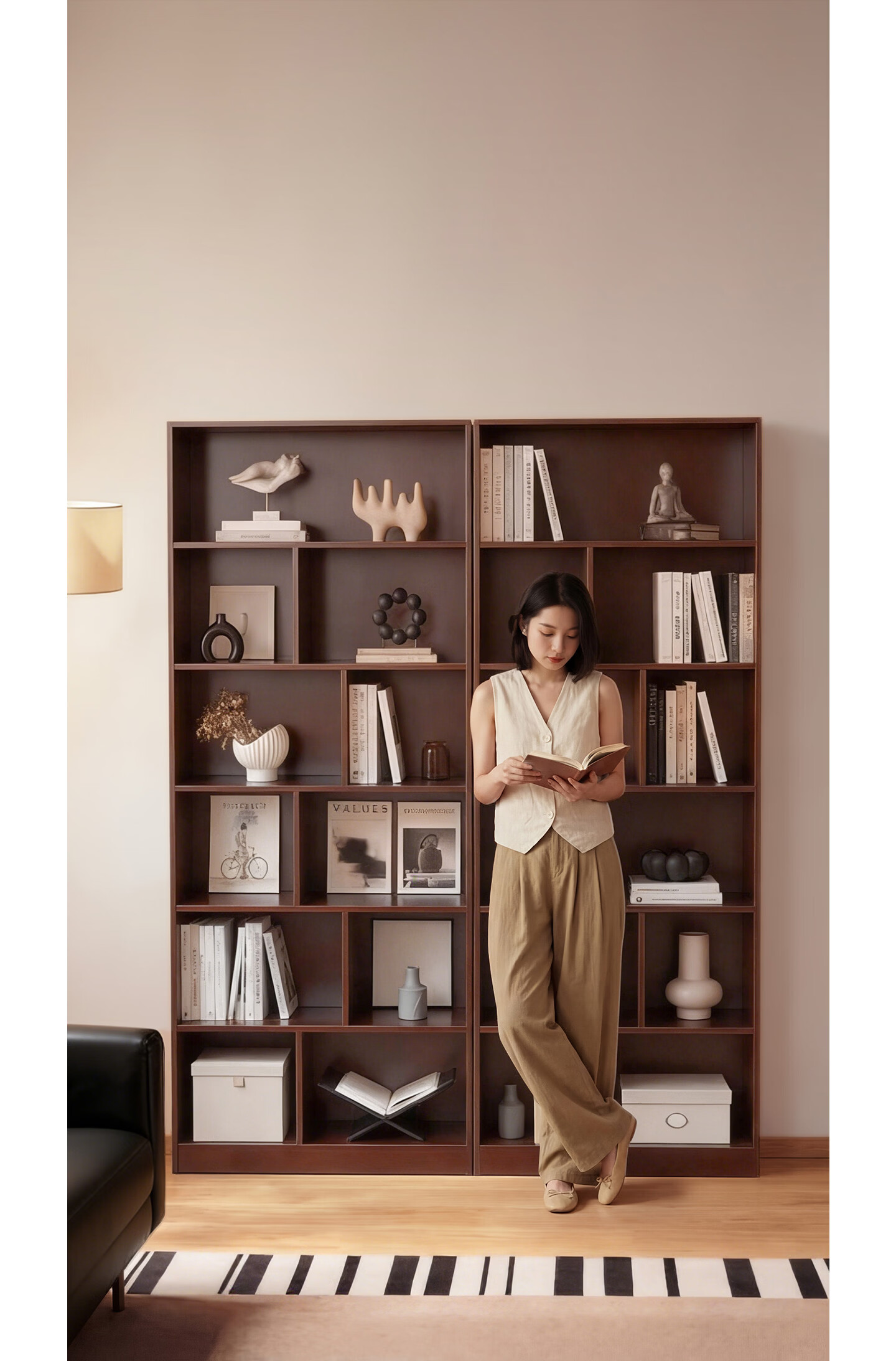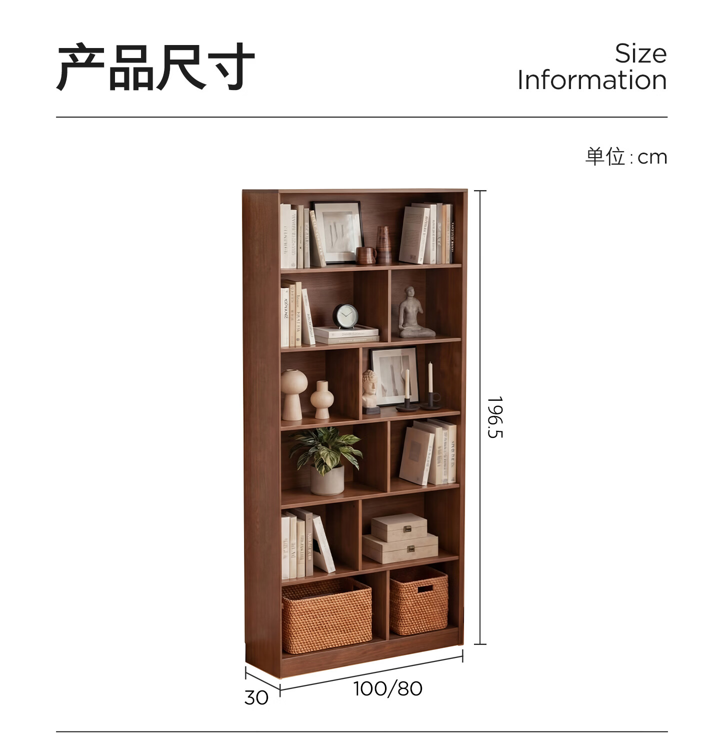 顾家家居书架置物架落地整墙柜子展示柜家用书柜一体靠墙客厅储物柜格子柜 【6层11格】胡桃色100*30*196cm 【送货上门免费安装】