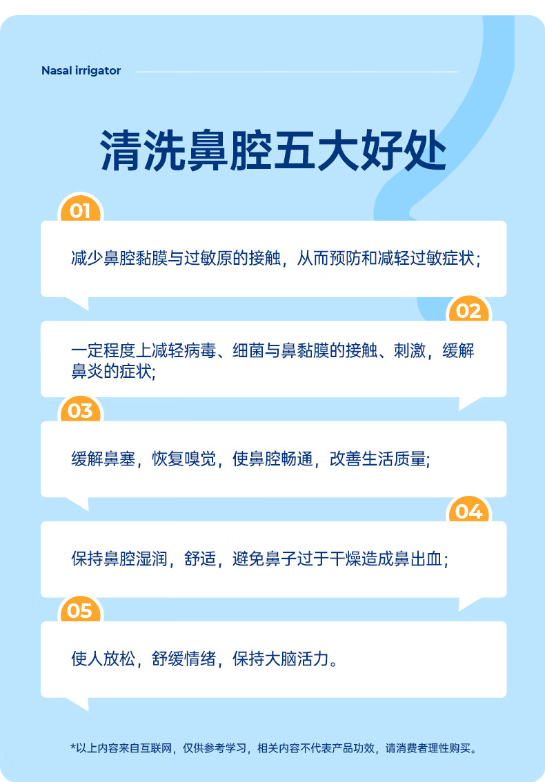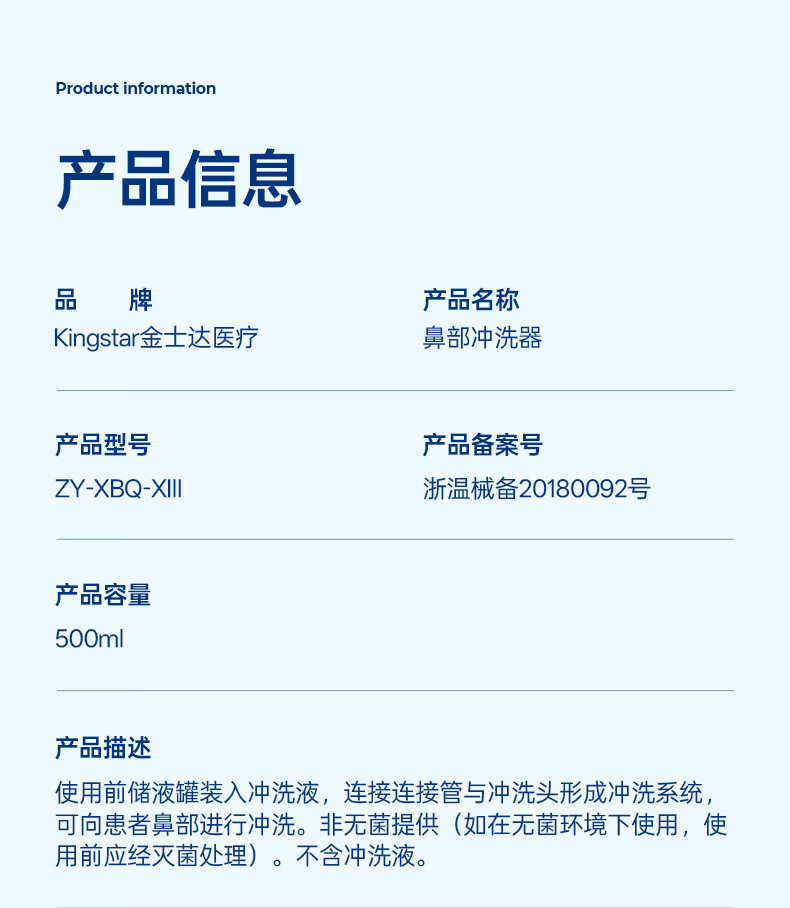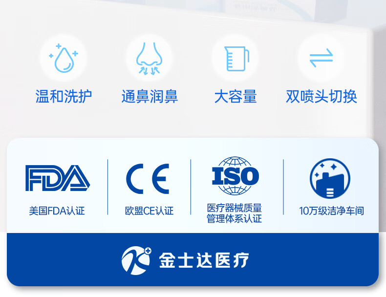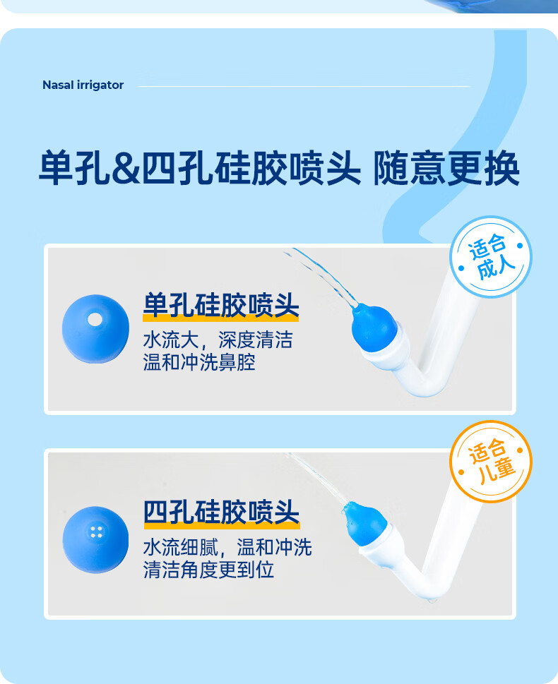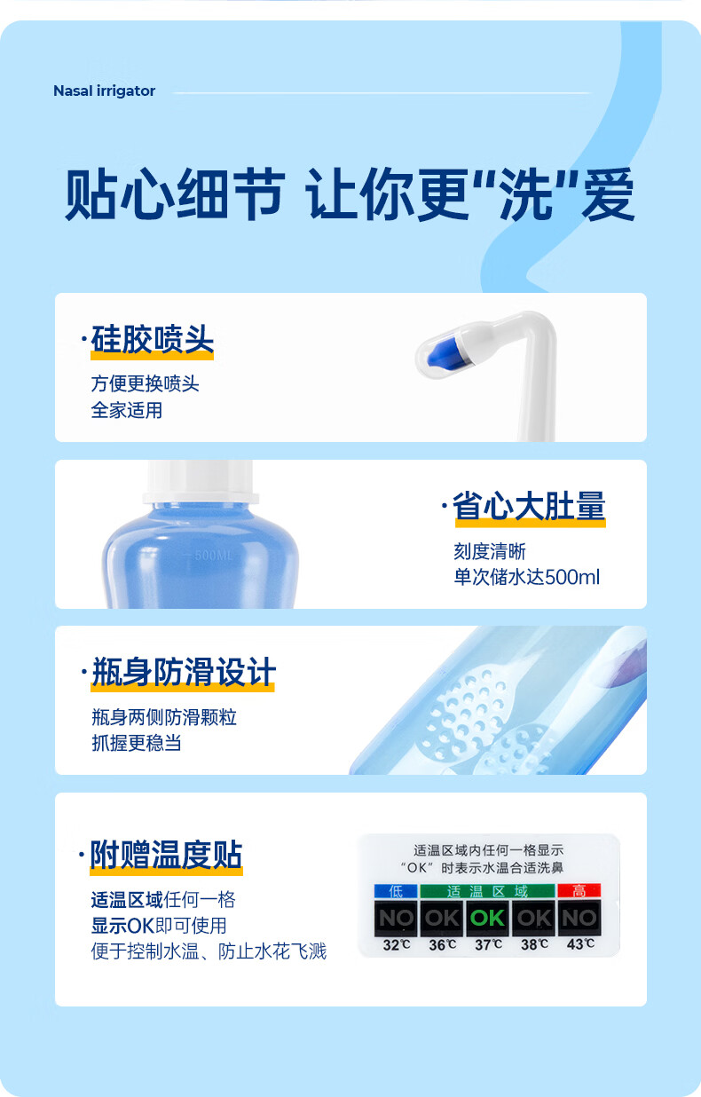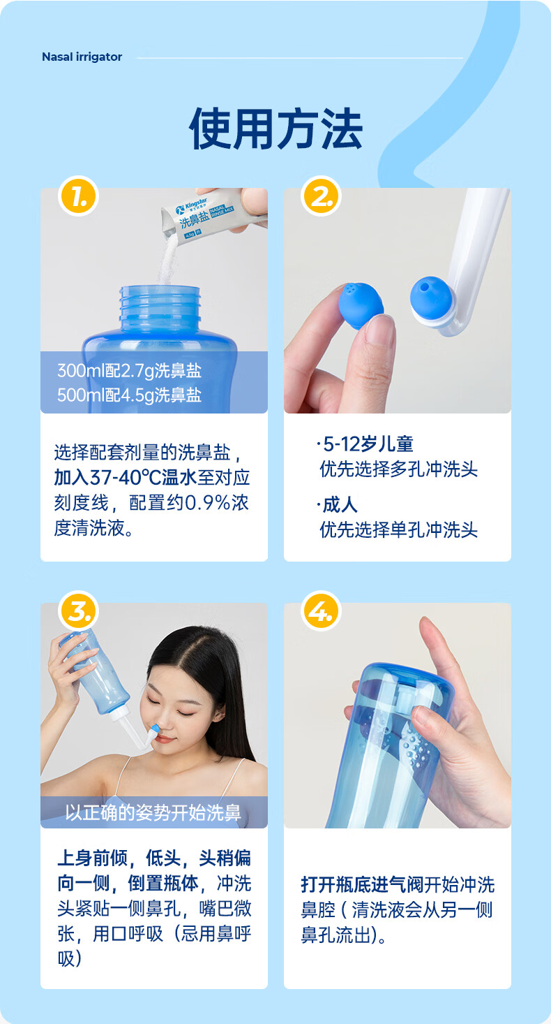 金士达tk洗鼻器家用成人儿童鼻腔清洗器 鼻炎鼻窦炎鼻部生理盐水冲洗器 鼻腔清洗器500ml套装+洗鼻盐4.5g*30袋