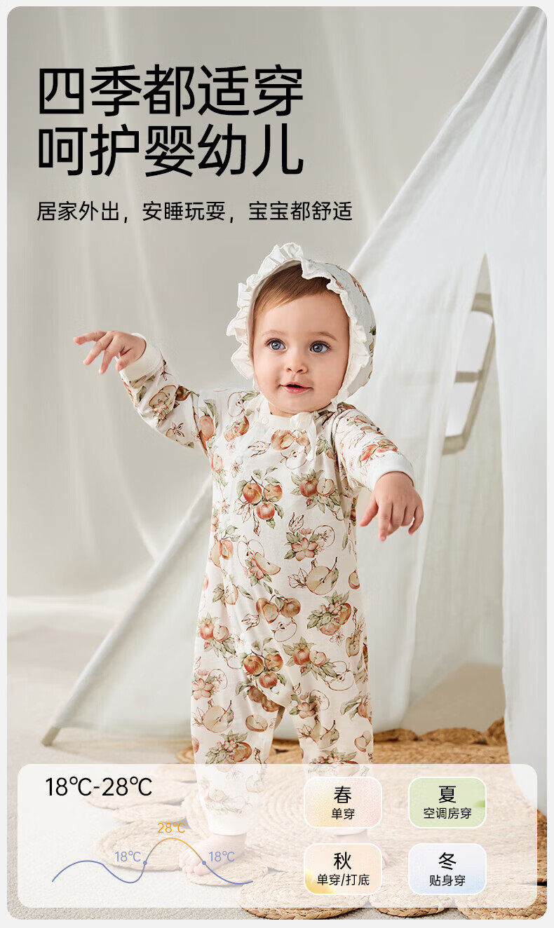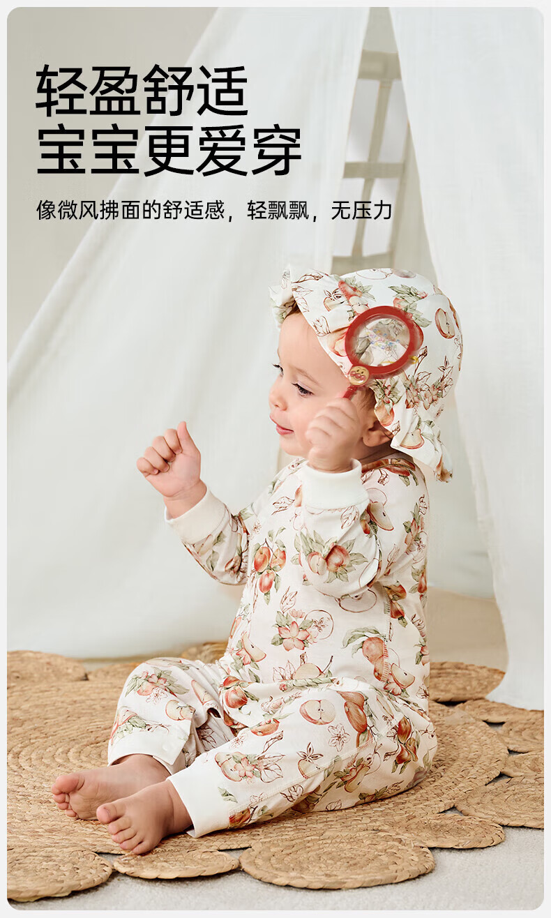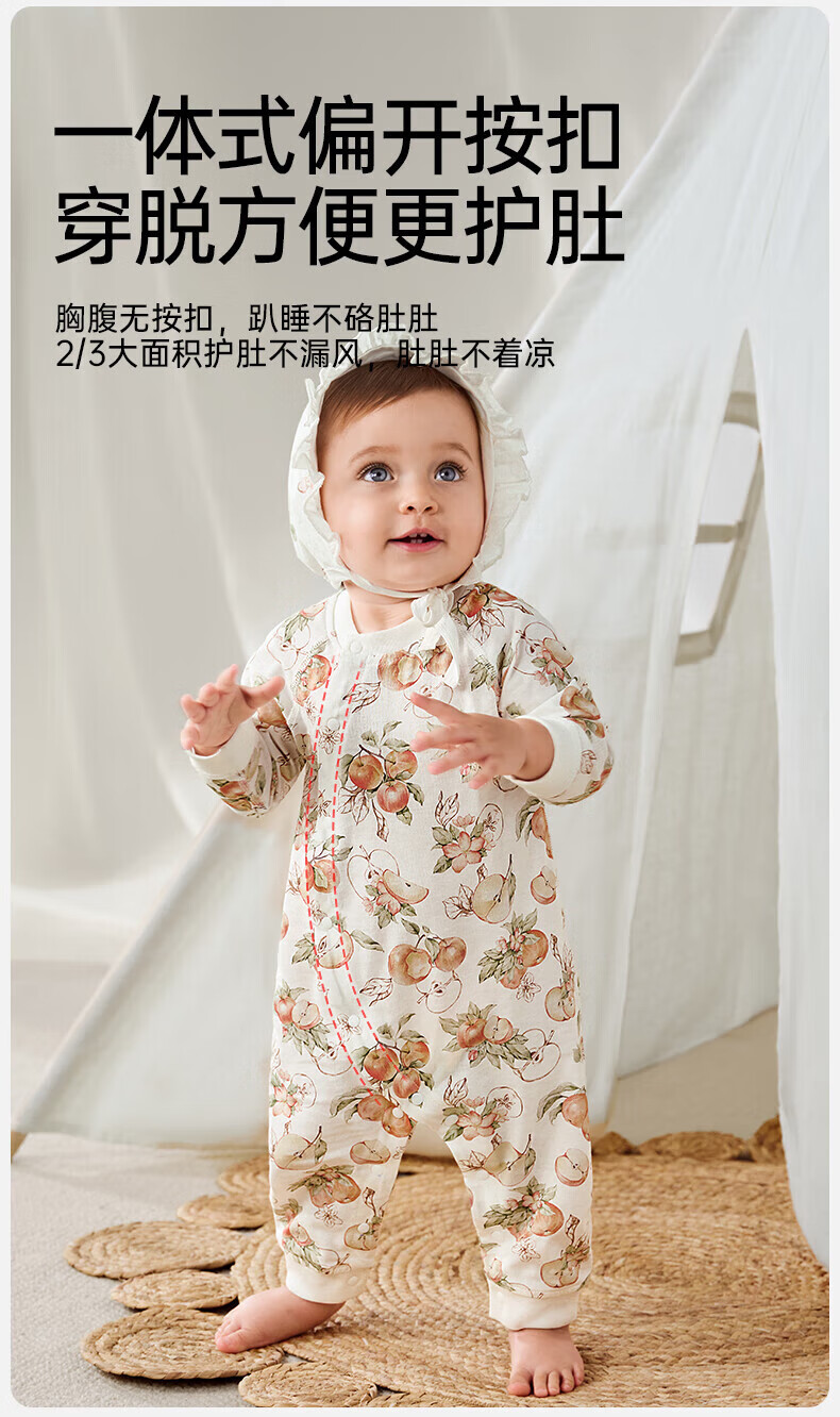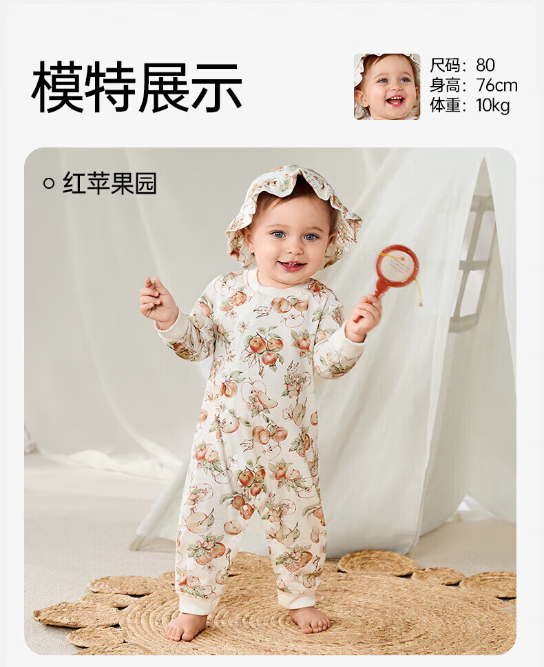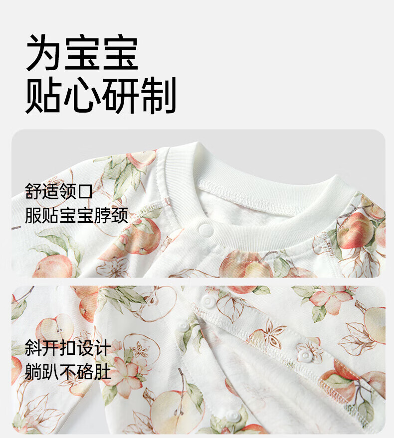 欧孕(OUYUN)婴儿连体衣男女宝宝衣服纯棉长袖春装哈衣外出爬爬服睡衣四季 红苹果园【轻盈透气】 66cm