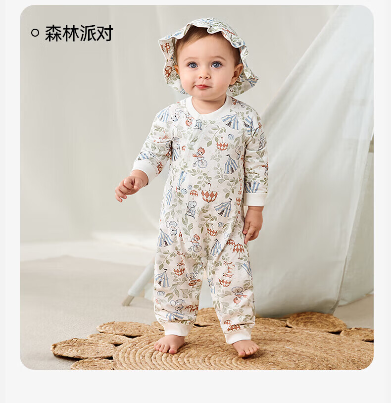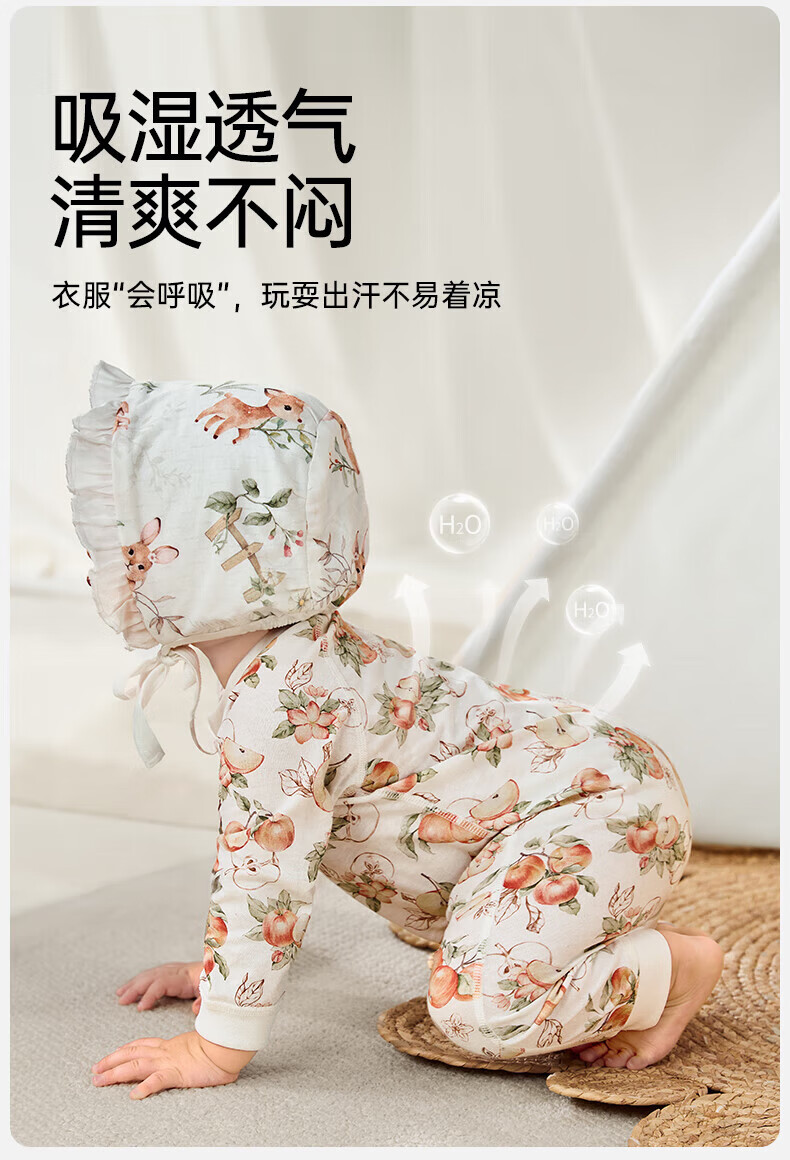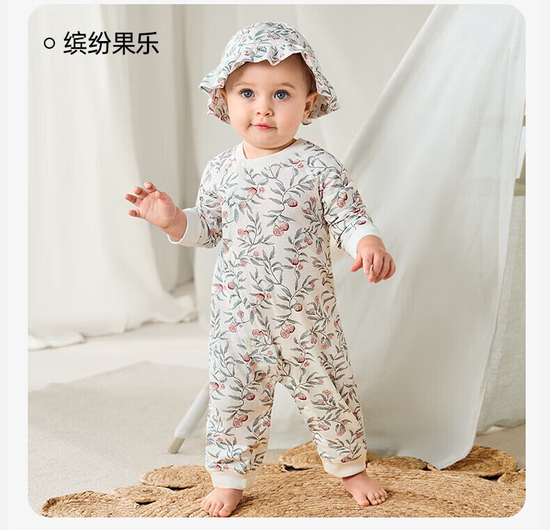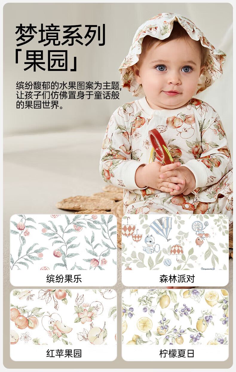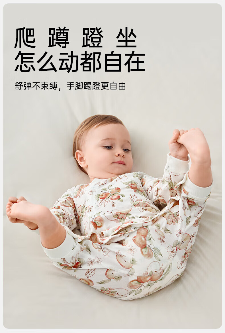 欧孕(OUYUN)婴儿连体衣男女宝宝衣服纯棉长袖春装哈衣外出爬爬服睡衣四季 红苹果园【轻盈透气】 66cm