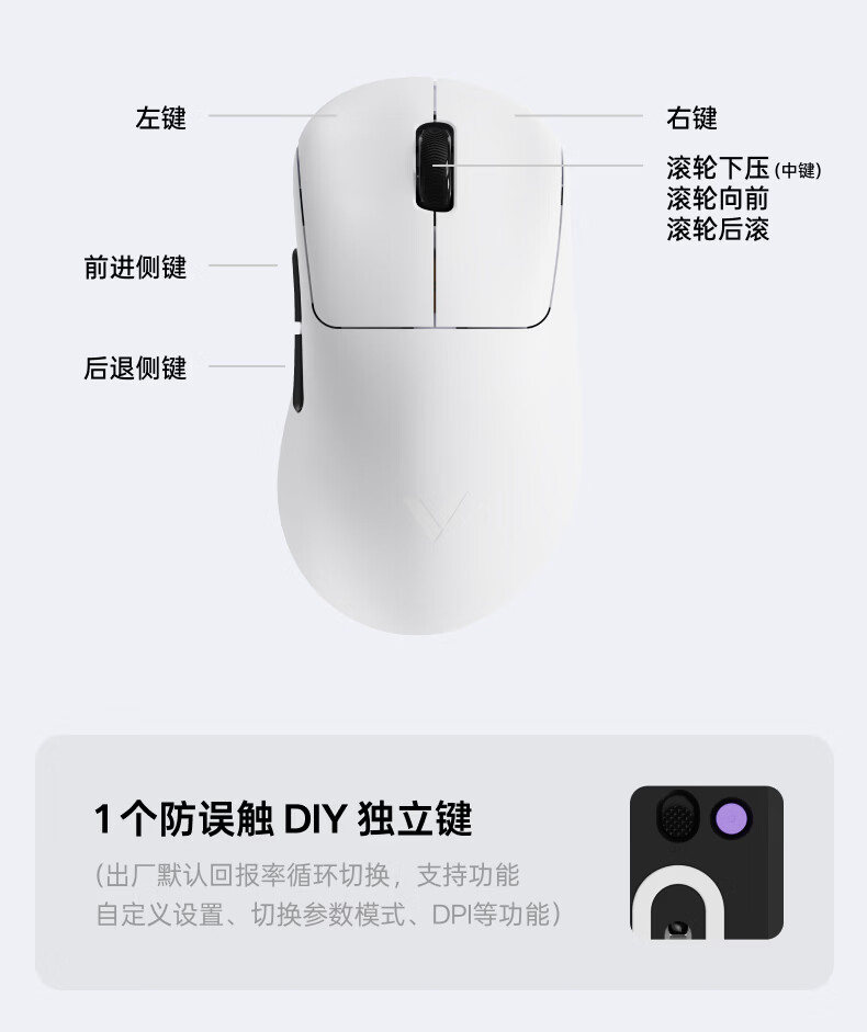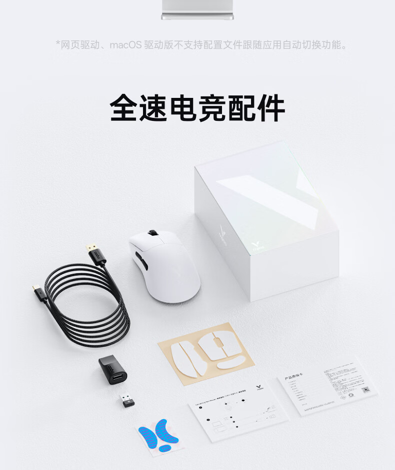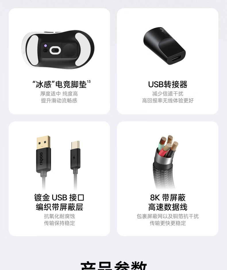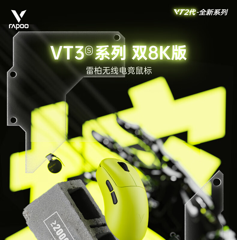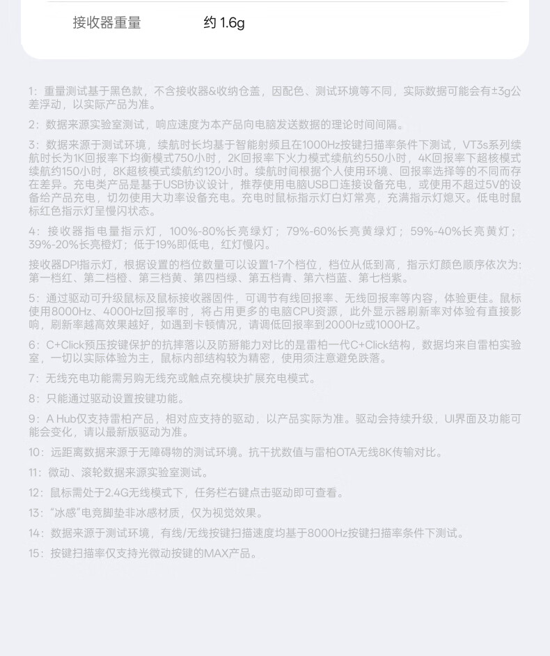 雷柏(Rapoo)VT3s二代双8K版 中小手无线/有线双模游戏鼠标 轻量化设计原相3398引擎 原生8K+8K回报率 白色