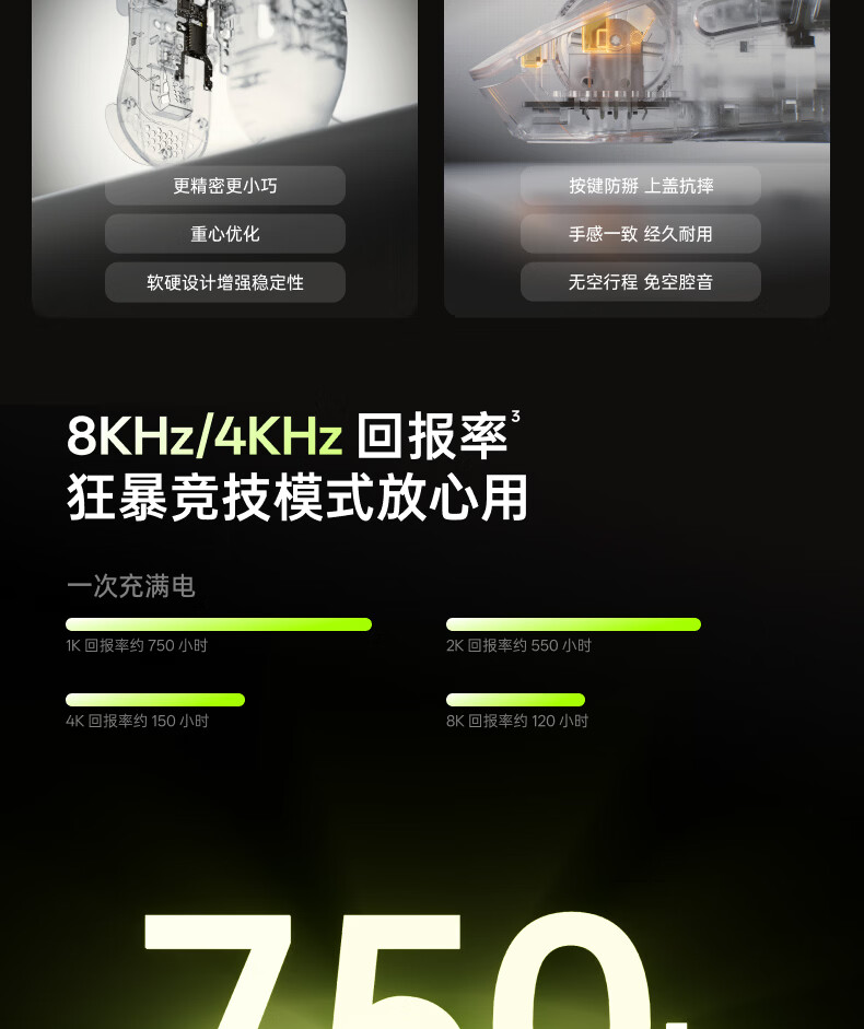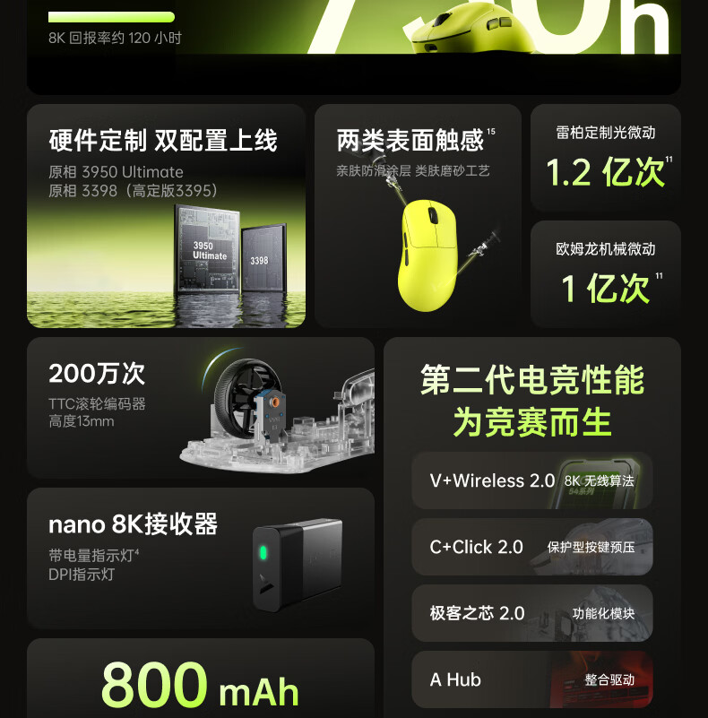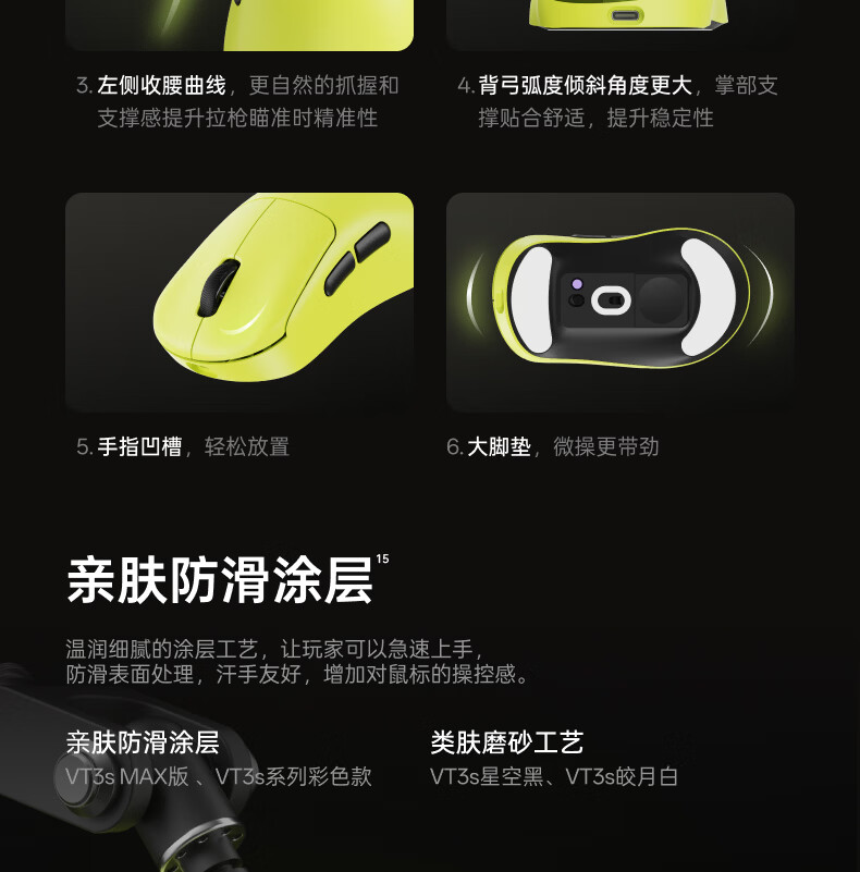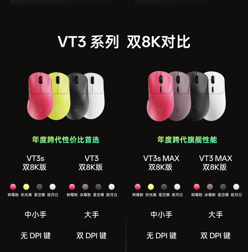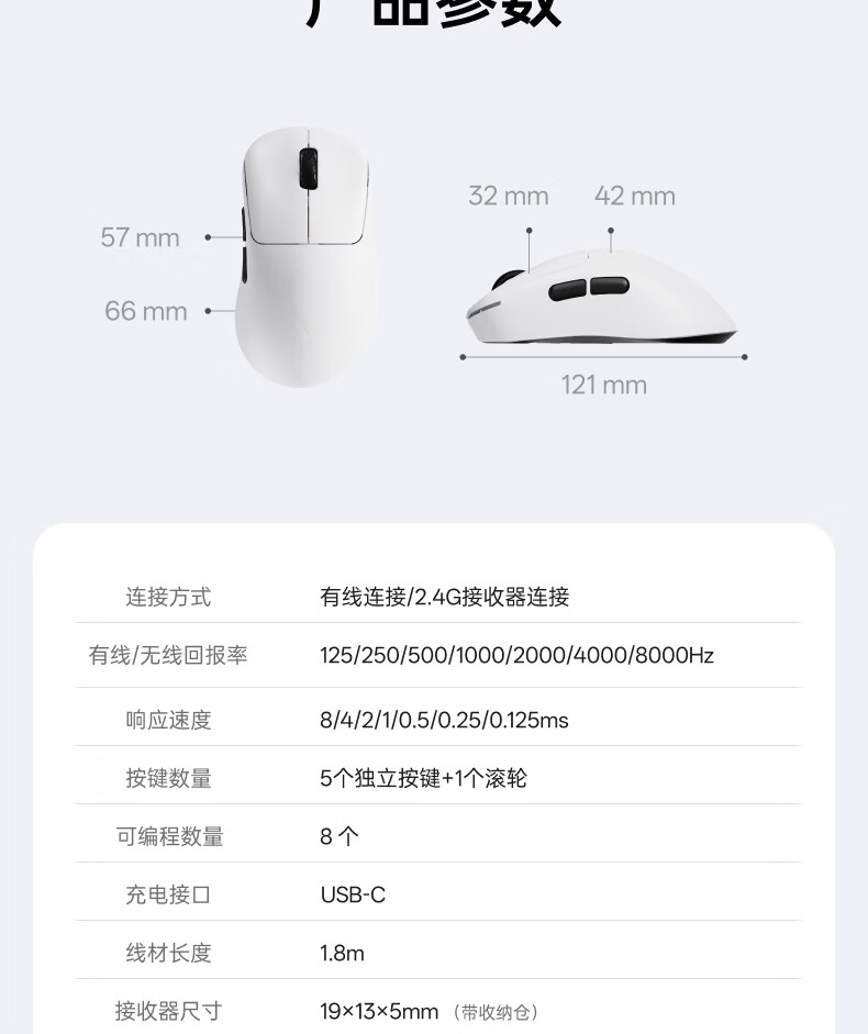 雷柏(Rapoo)VT3s二代双8K版 中小手无线/有线双模游戏鼠标 轻量化设计原相3398引擎 原生8K+8K回报率 白色