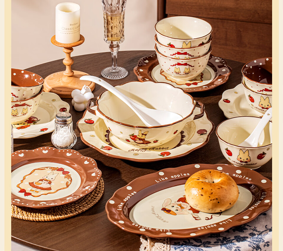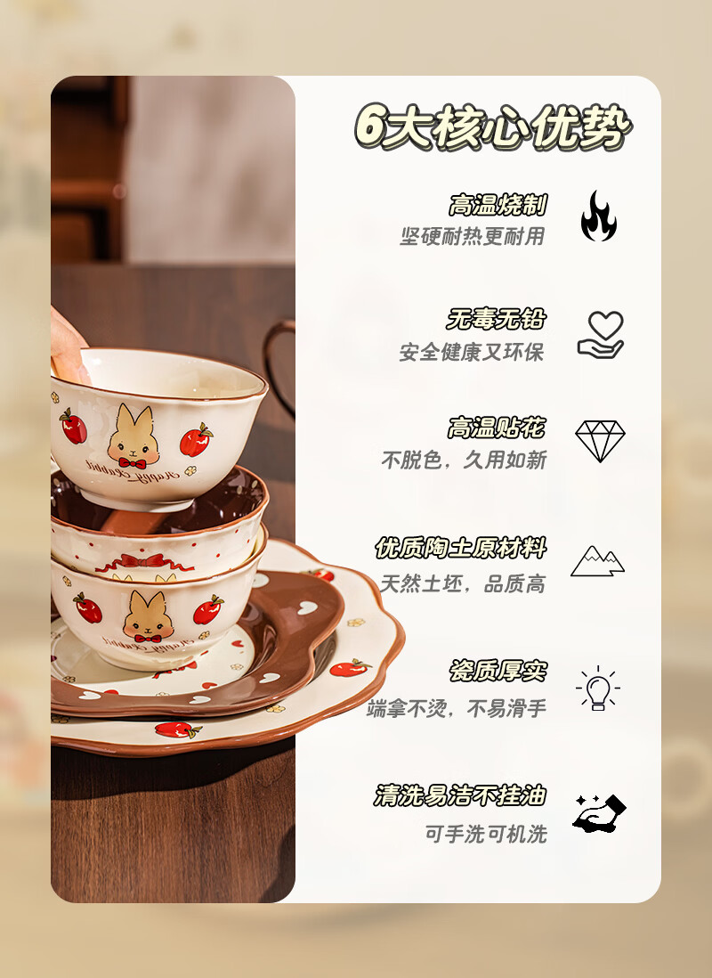 精缔陶瓷JINGDI碗碟套装家用新款陶瓷餐具套装乔迁生日礼物女生新婚结婚订婚送礼 【礼盒装】精致1人食5件套