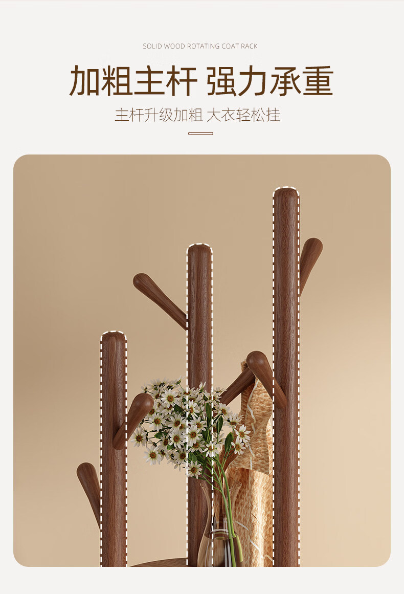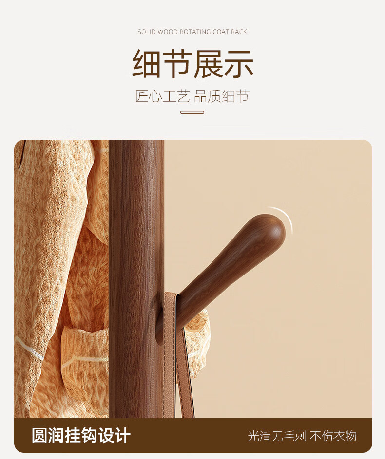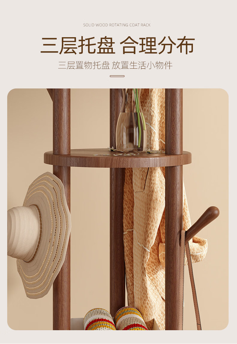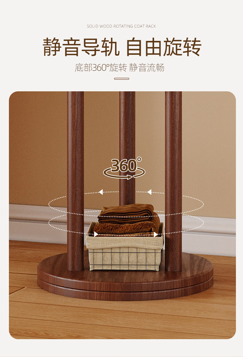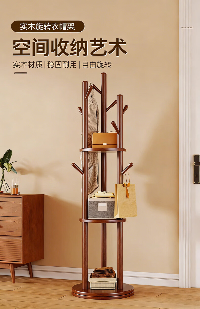 诗元实木旋转衣帽架落地立式挂衣架2026新款家用卧室榉木置物衣服架子 升级旋转款-胡桃色【加厚榉木 稳固耐用】