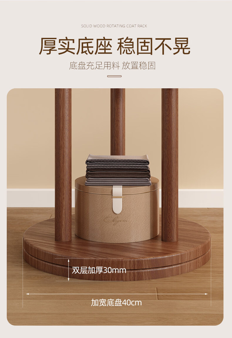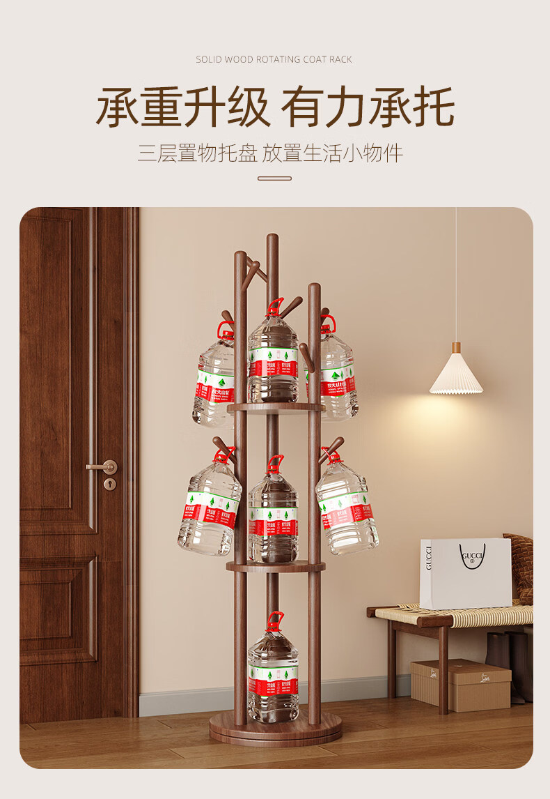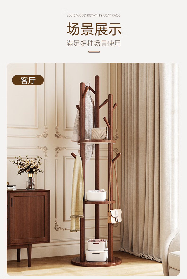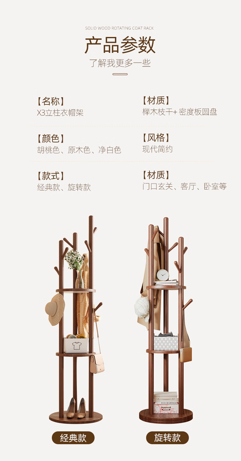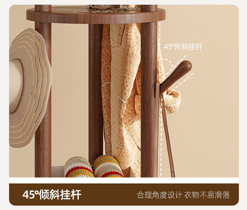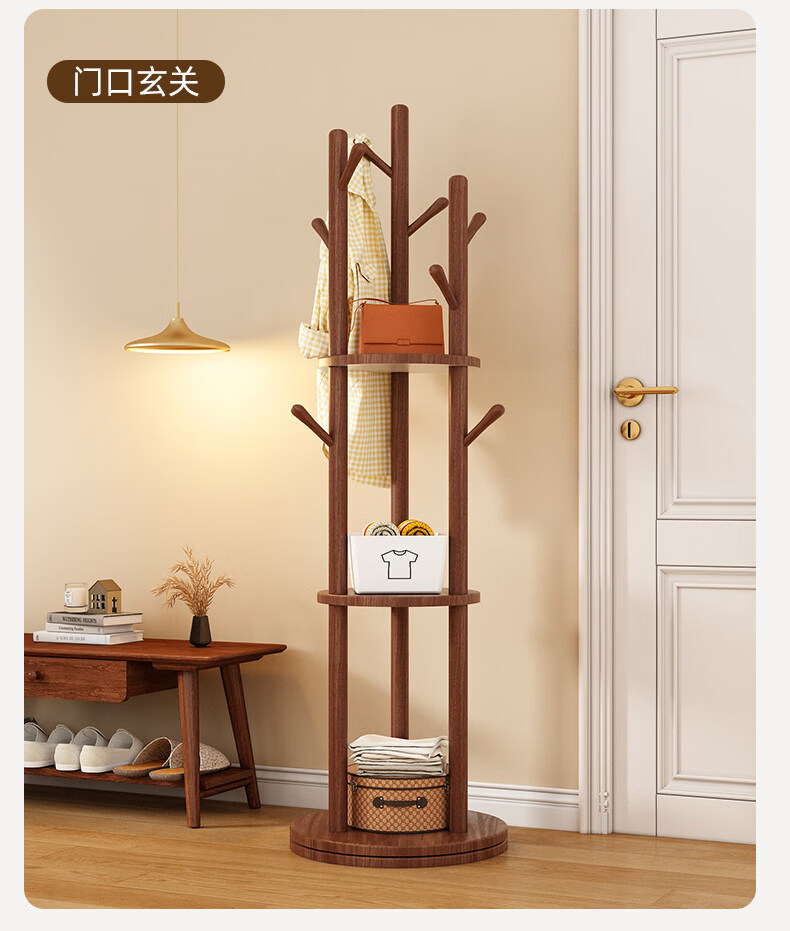 诗元实木旋转衣帽架落地立式挂衣架2026新款家用卧室榉木置物衣服架子 升级旋转款-胡桃色【加厚榉木 稳固耐用】