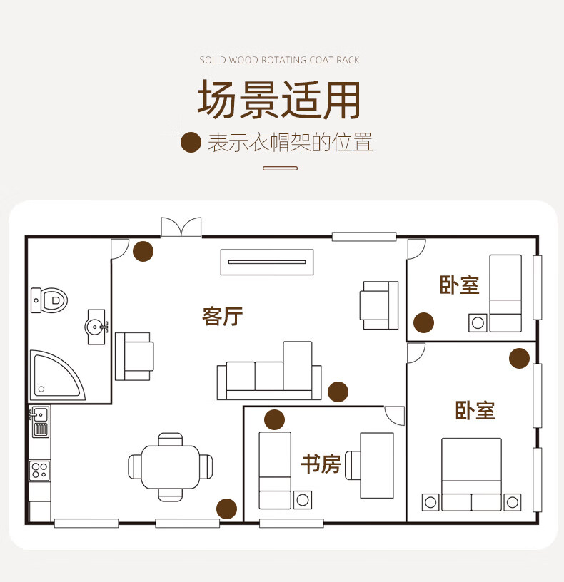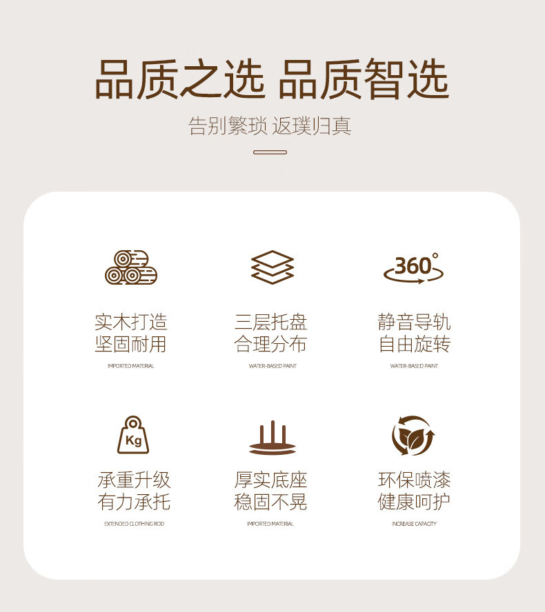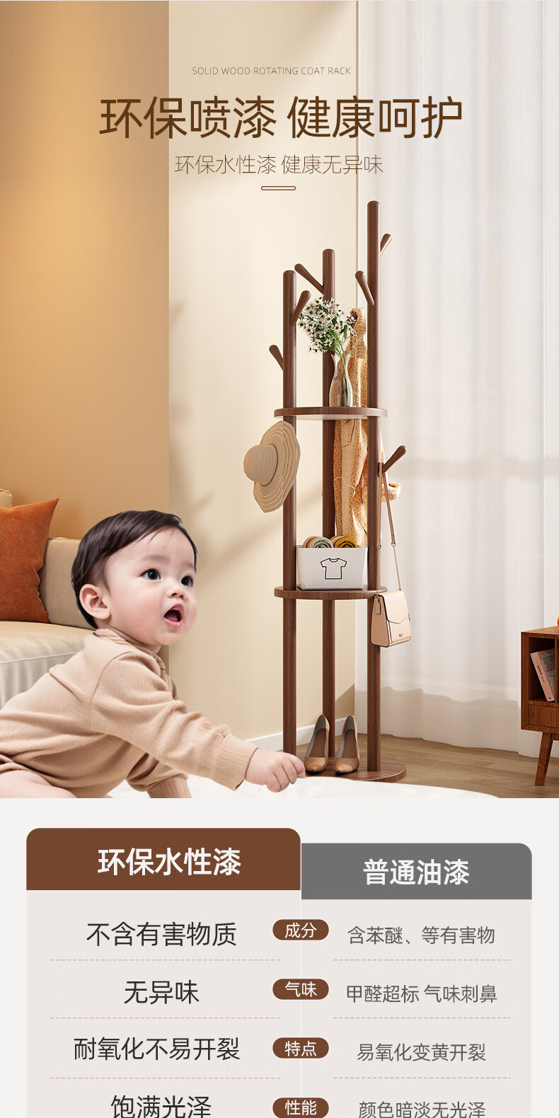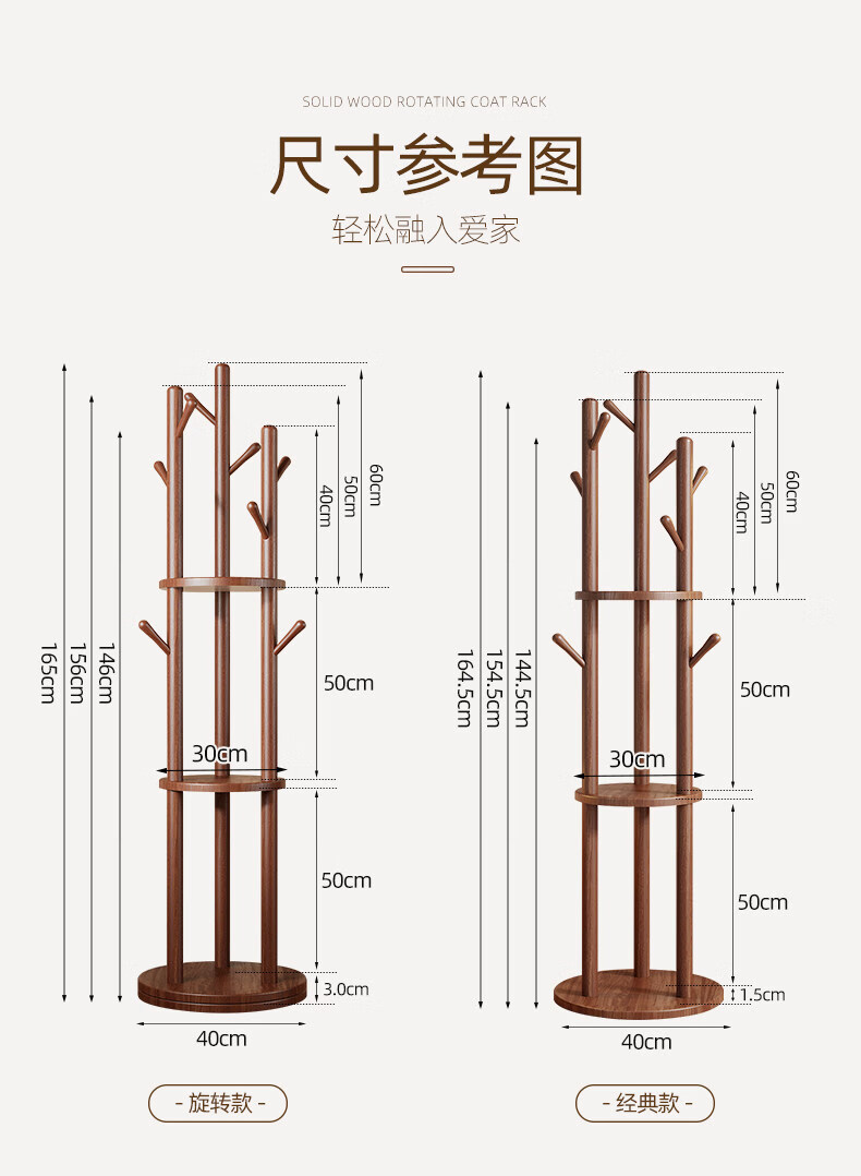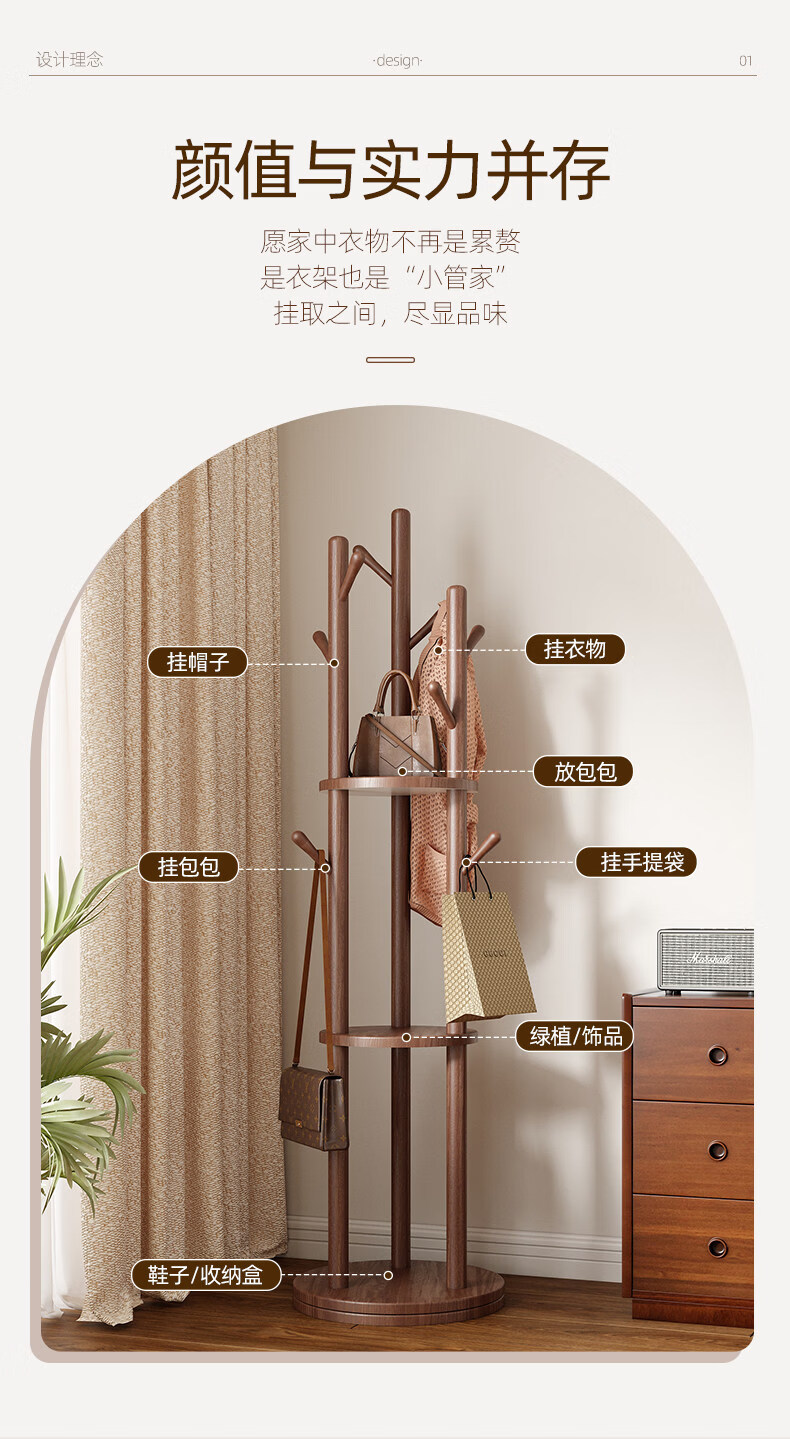 诗元实木旋转衣帽架落地立式挂衣架2026新款家用卧室榉木置物衣服架子 升级旋转款-胡桃色【加厚榉木 稳固耐用】