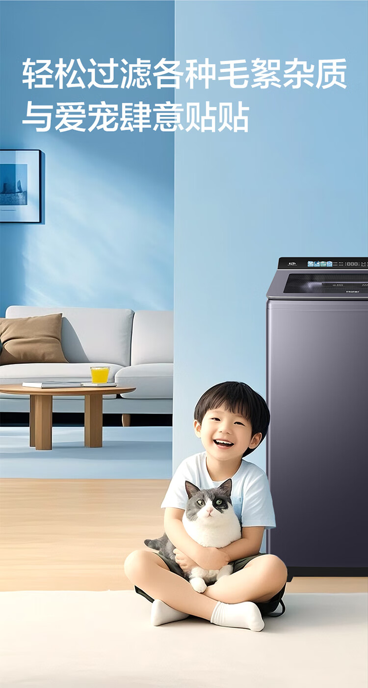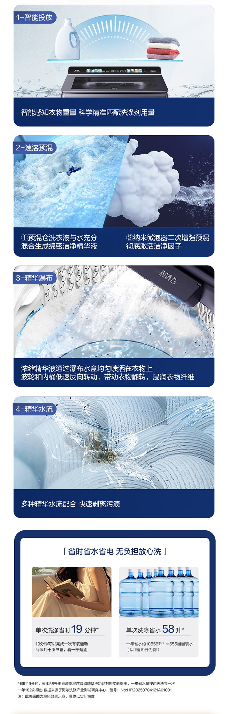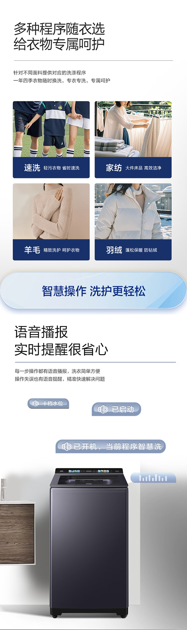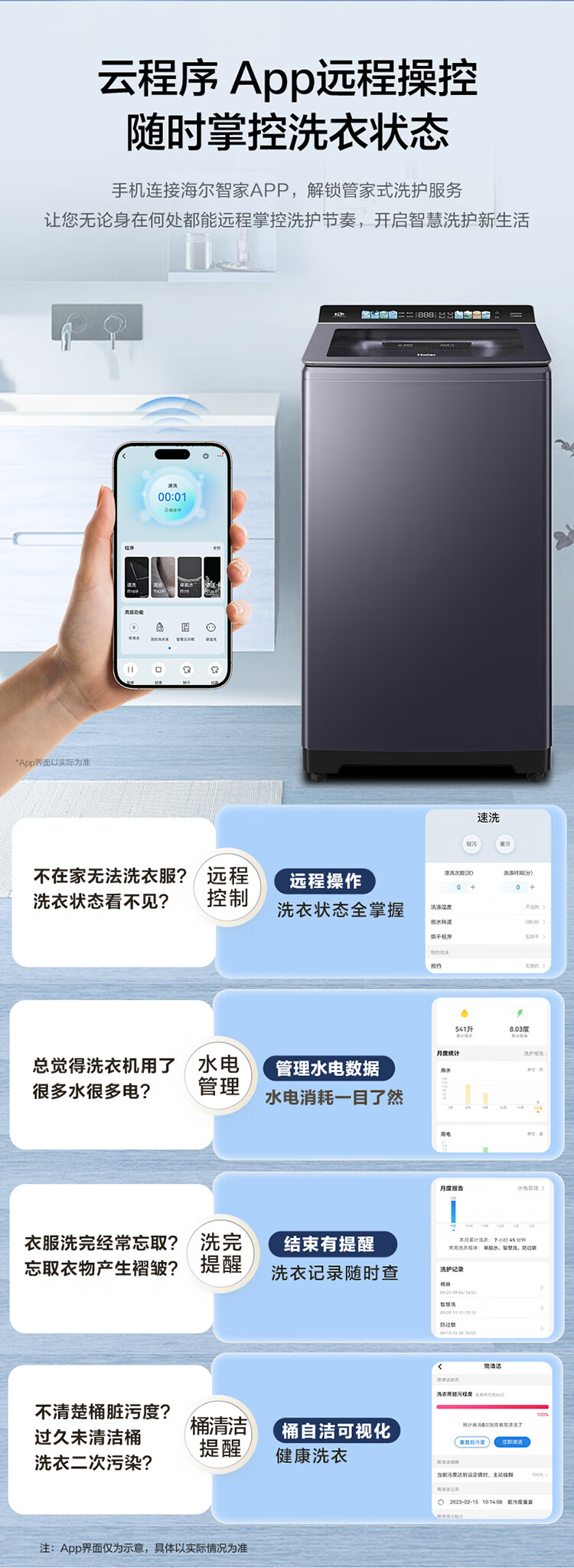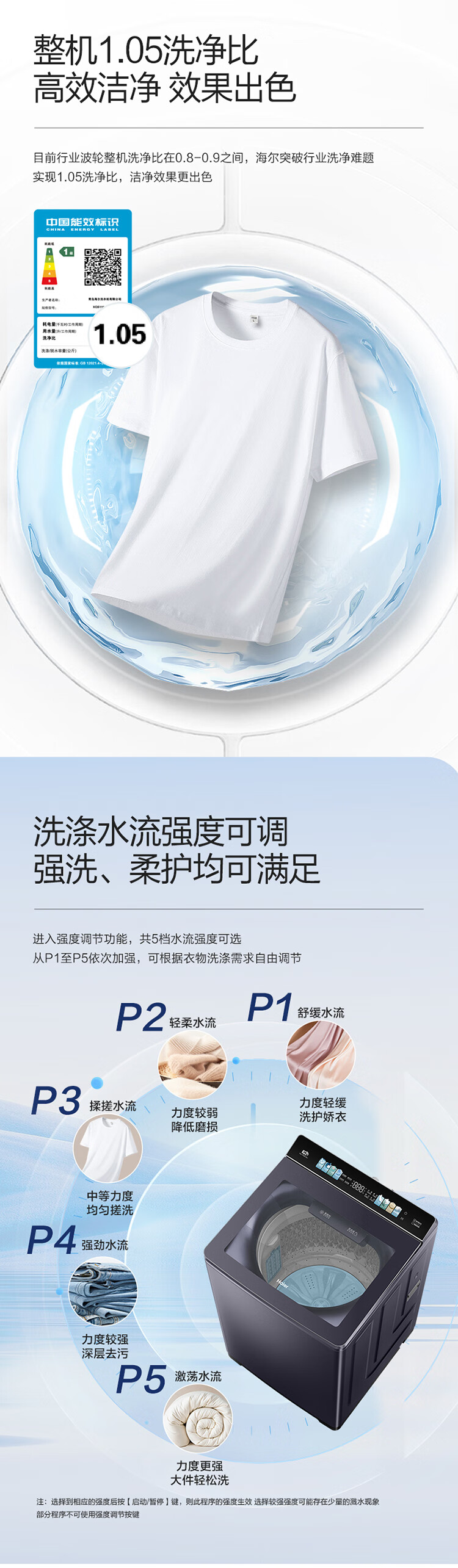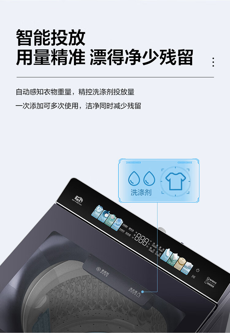 海尔【双动力新品】波轮洗衣机全自动77E 直驱变频精华洗智能投放语音播报一级能效云溪4.0洗衣机 波轮 净护精华洗+顽渍洗净比1.3+语音播报77E