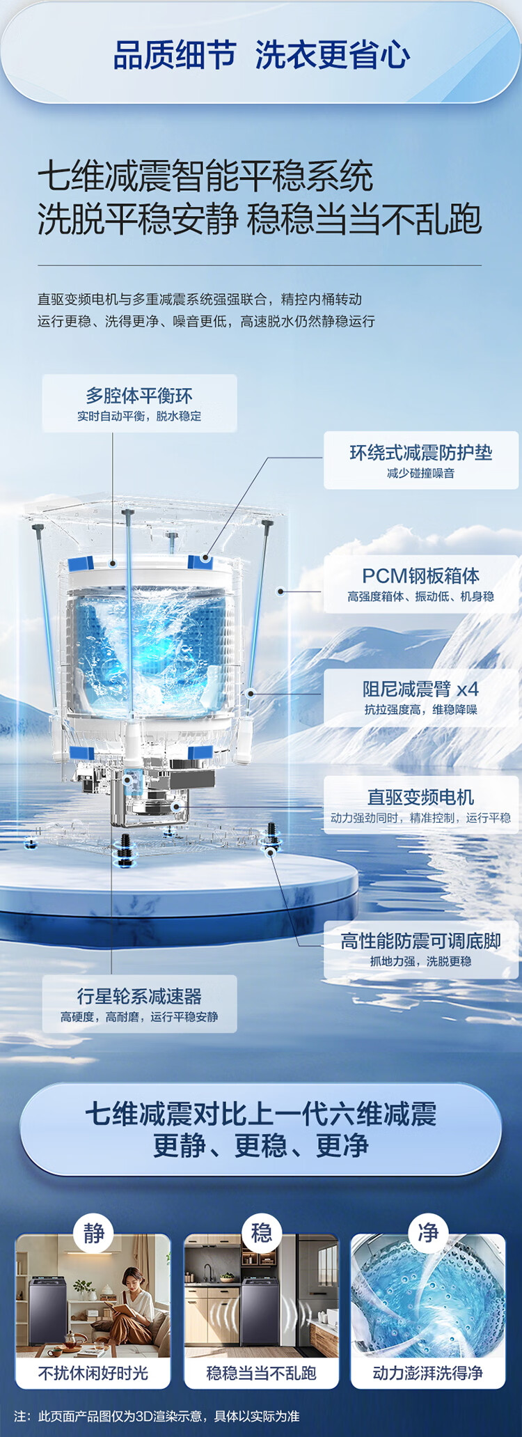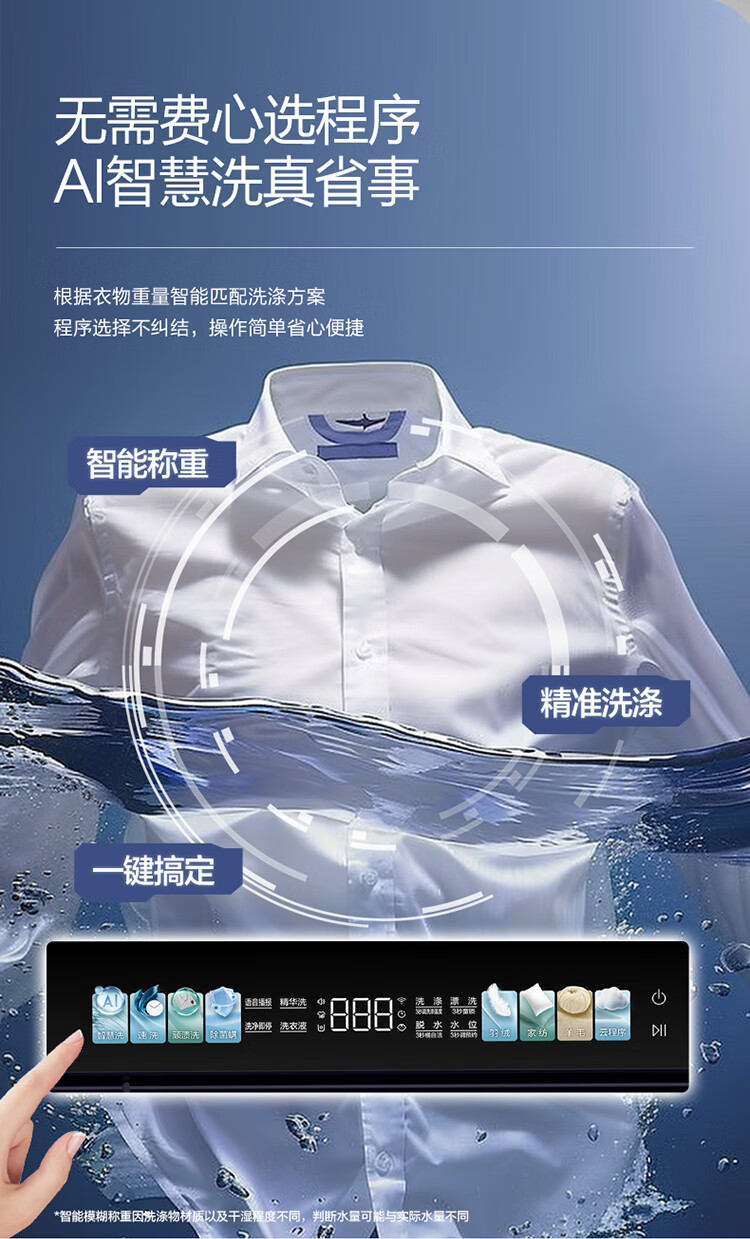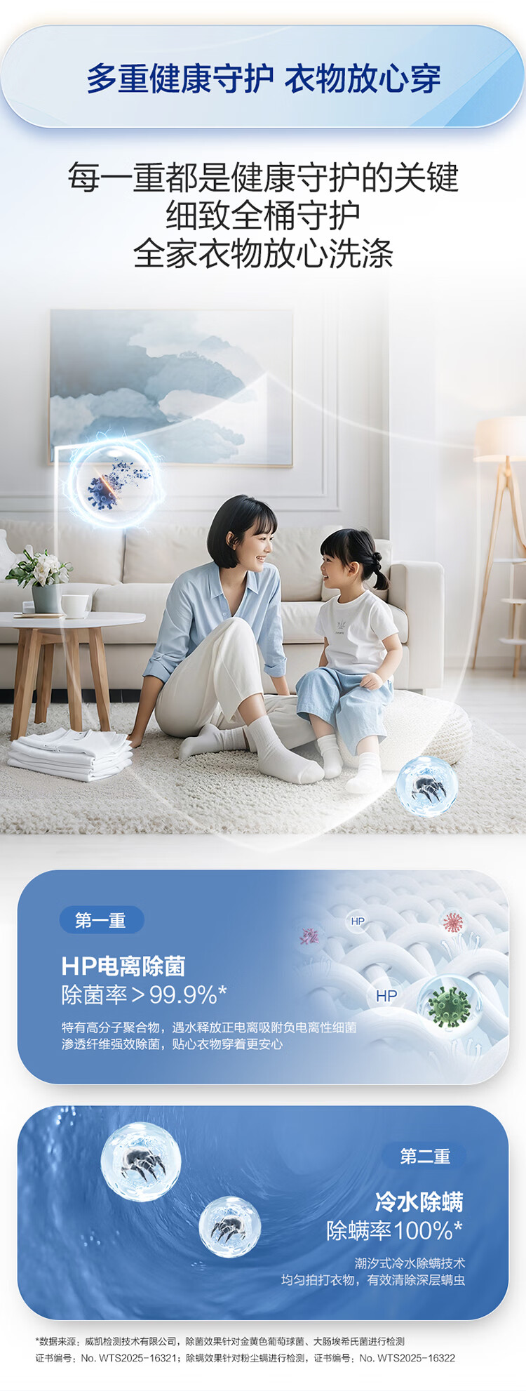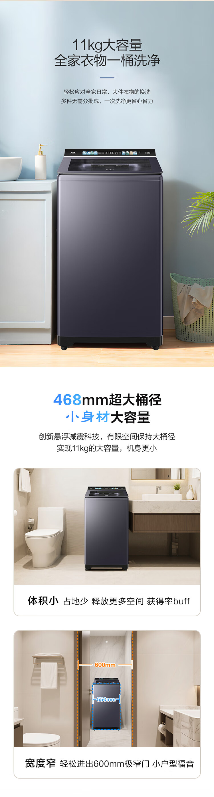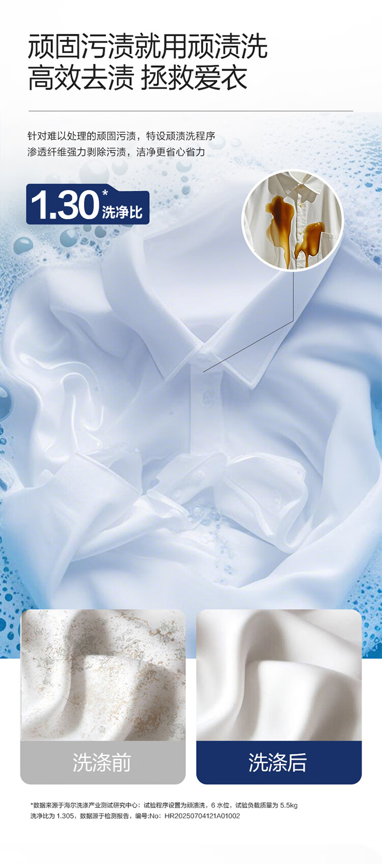 海尔【双动力新品】波轮洗衣机全自动77E 直驱变频精华洗智能投放语音播报一级能效云溪4.0洗衣机 波轮 净护精华洗+顽渍洗净比1.3+语音播报77E