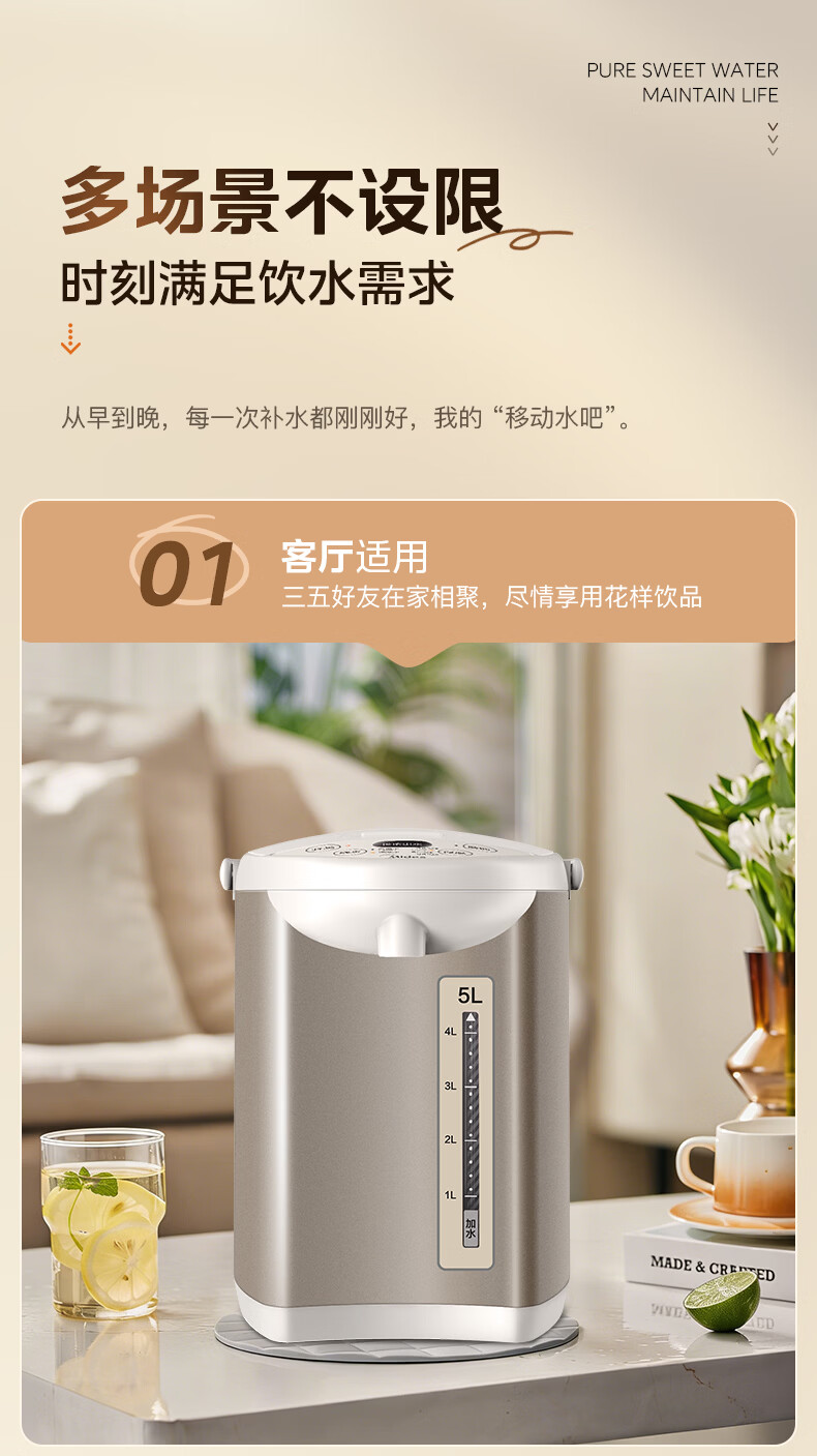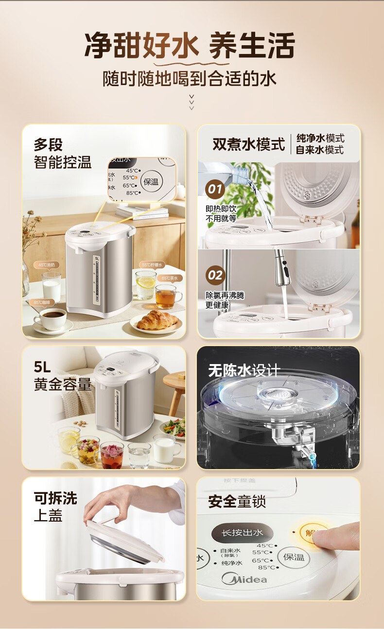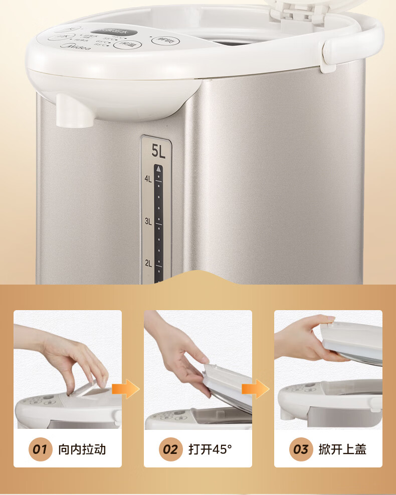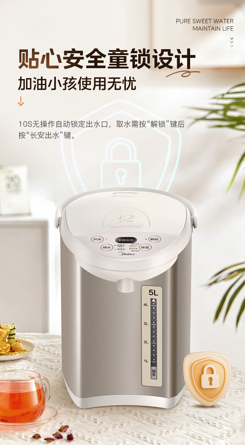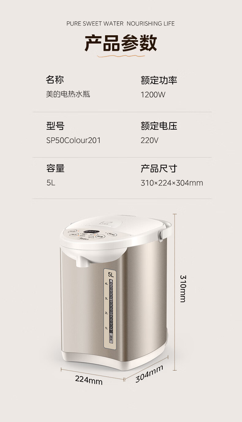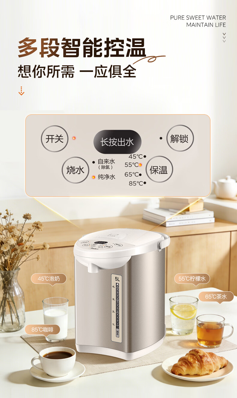 美的(Midea)电热水瓶电热水壶全自动断电保温控温恒温食品级304不锈钢5L大容量家用泡茶母婴冲奶神器Colour201