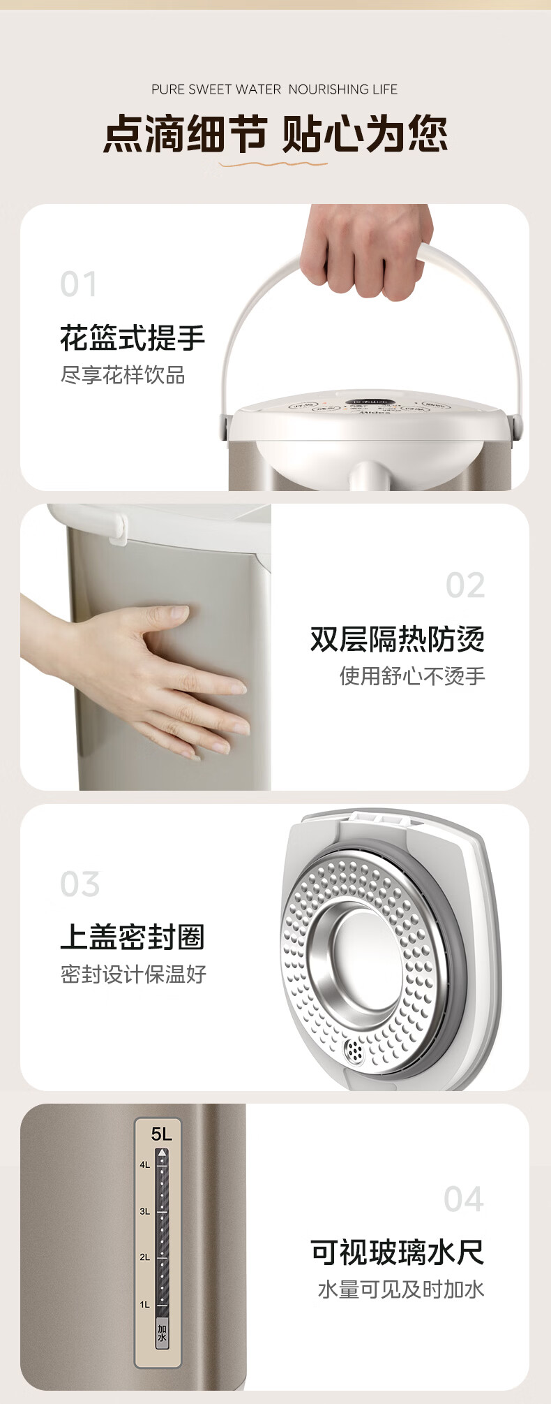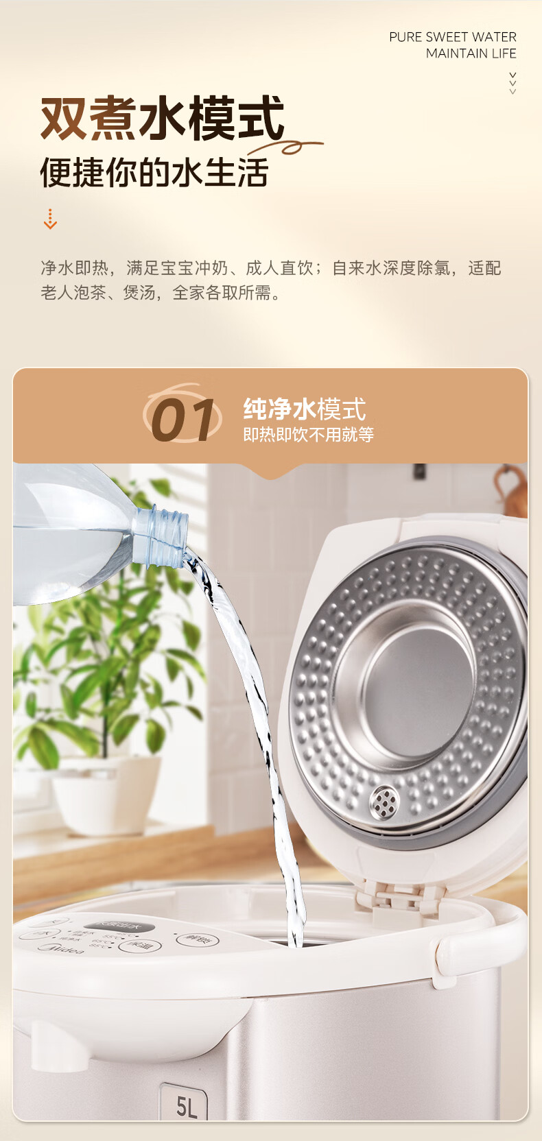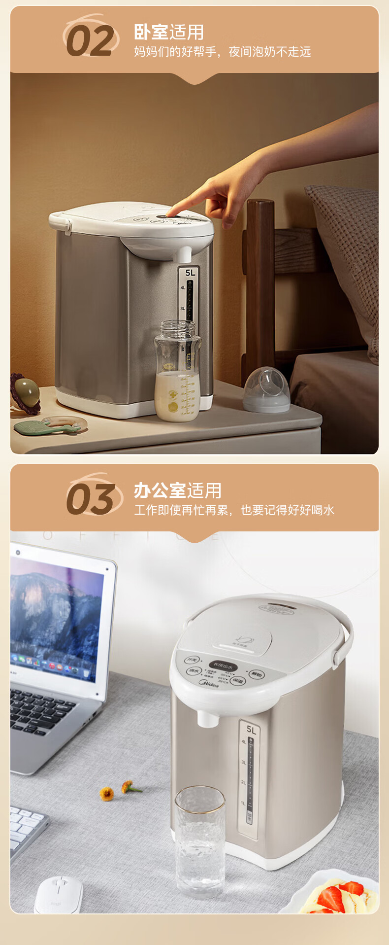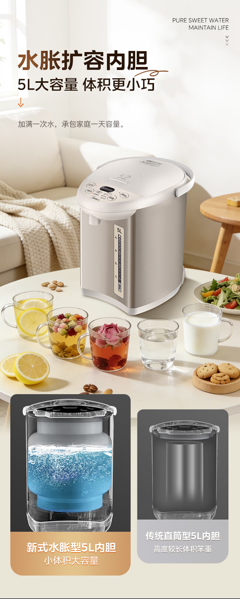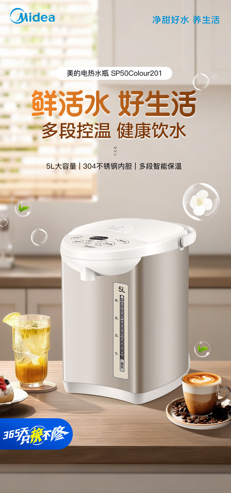 美的(Midea)电热水瓶电热水壶全自动断电保温控温恒温食品级304不锈钢5L大容量家用泡茶母婴冲奶神器Colour201