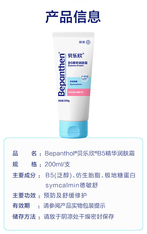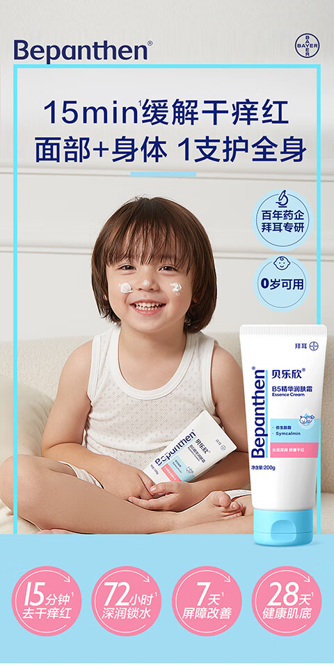 Bepanthen贝乐欣 拜耳新生儿B5精华润肤婴儿秋冬滋润儿童身体乳 B5精华润肤乳200ml+30g
