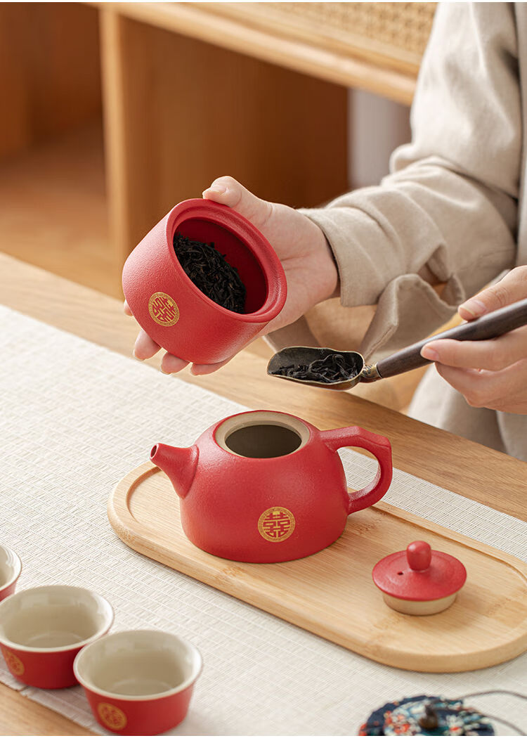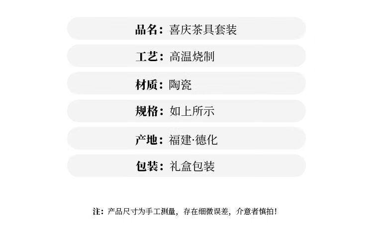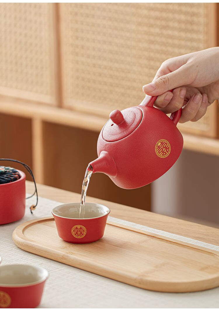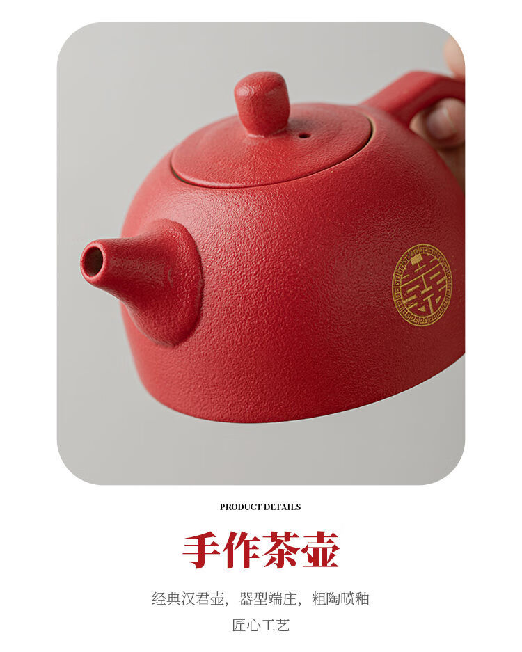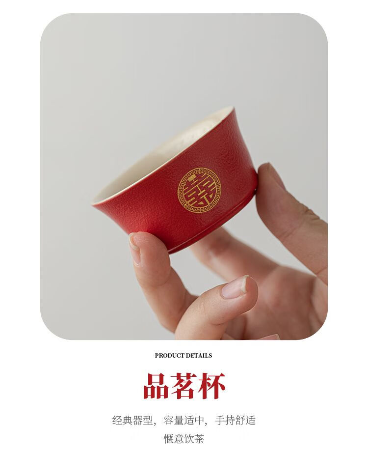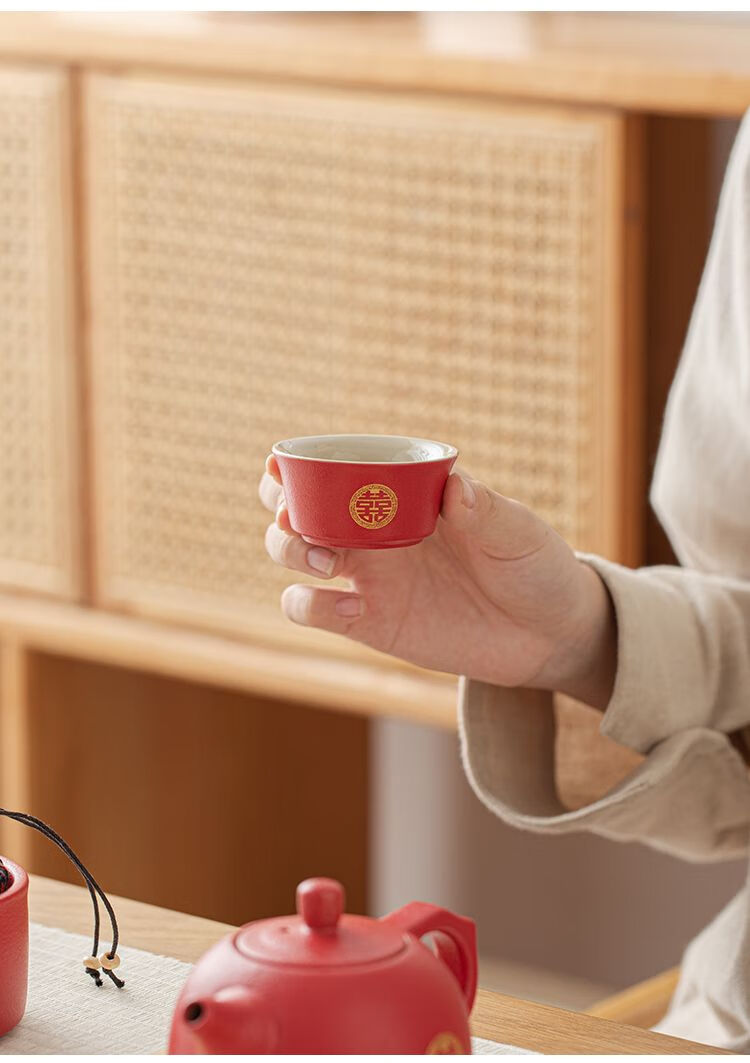 简漾敬茶杯结婚茶具套装家用描金喜杯喜茶壶婚庆新人改口敬茶陪嫁用品 喜字井栏壶6杯