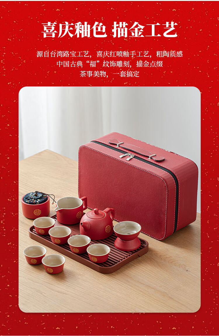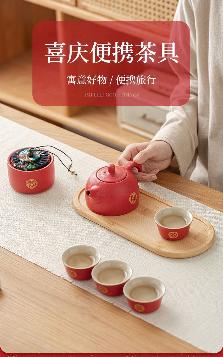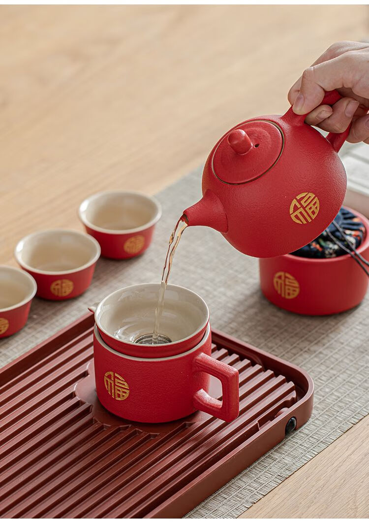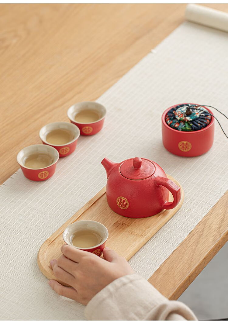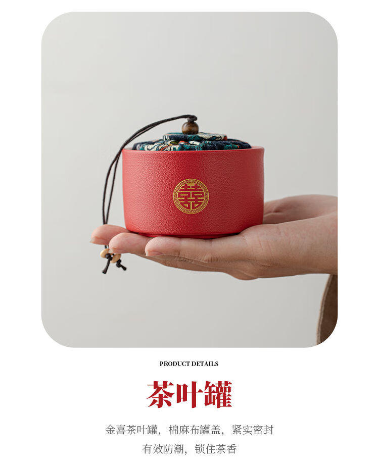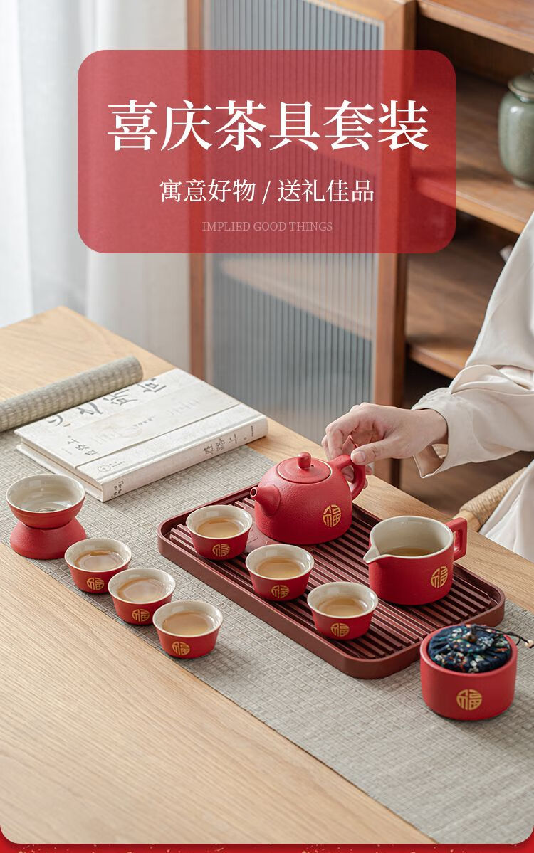 简漾敬茶杯结婚茶具套装家用描金喜杯喜茶壶婚庆新人改口敬茶陪嫁用品 喜字井栏壶6杯