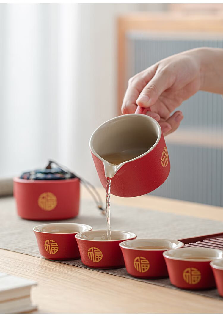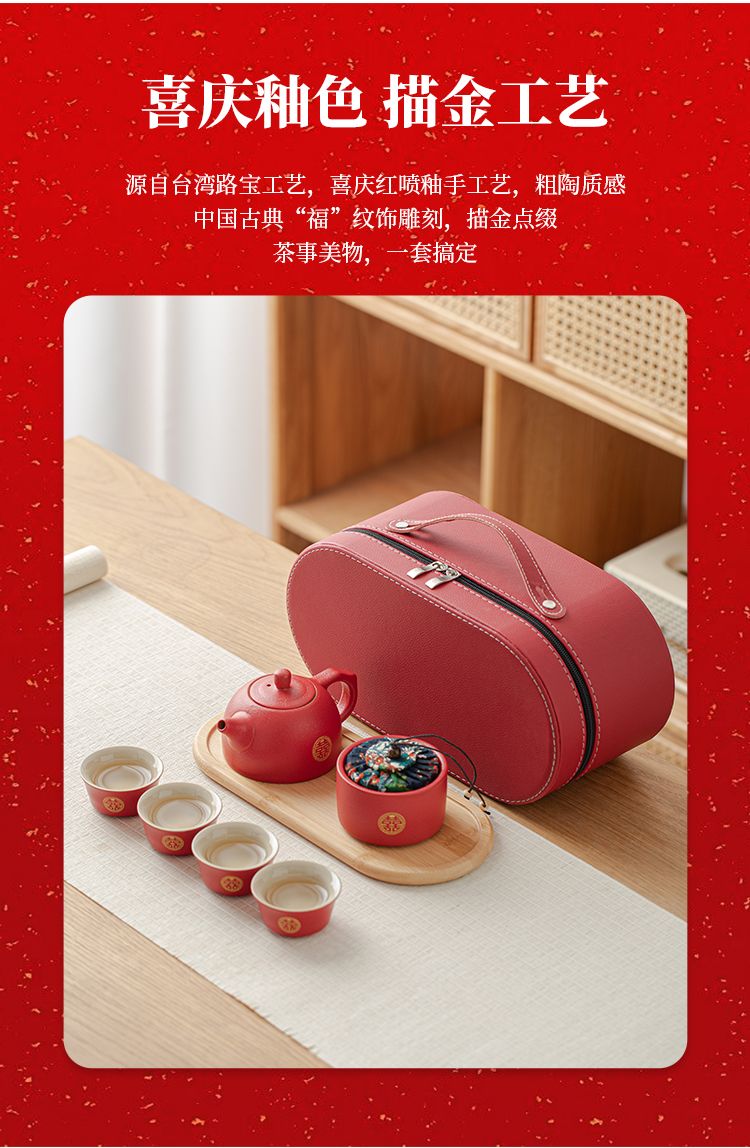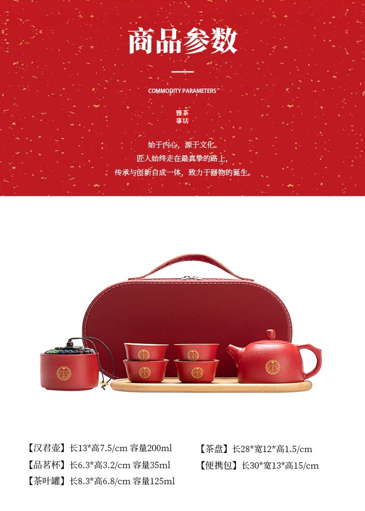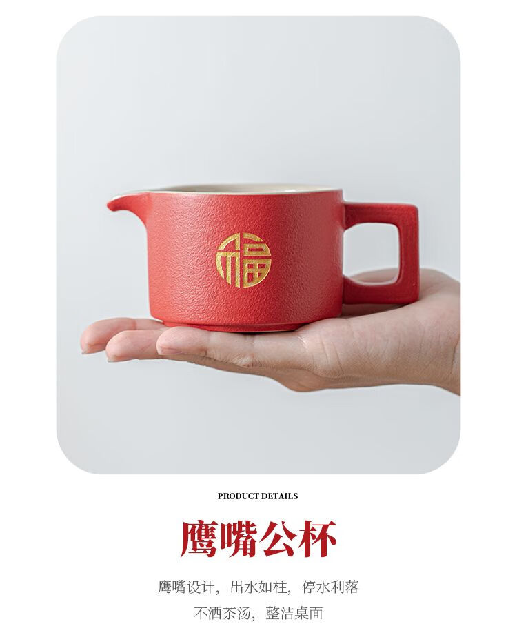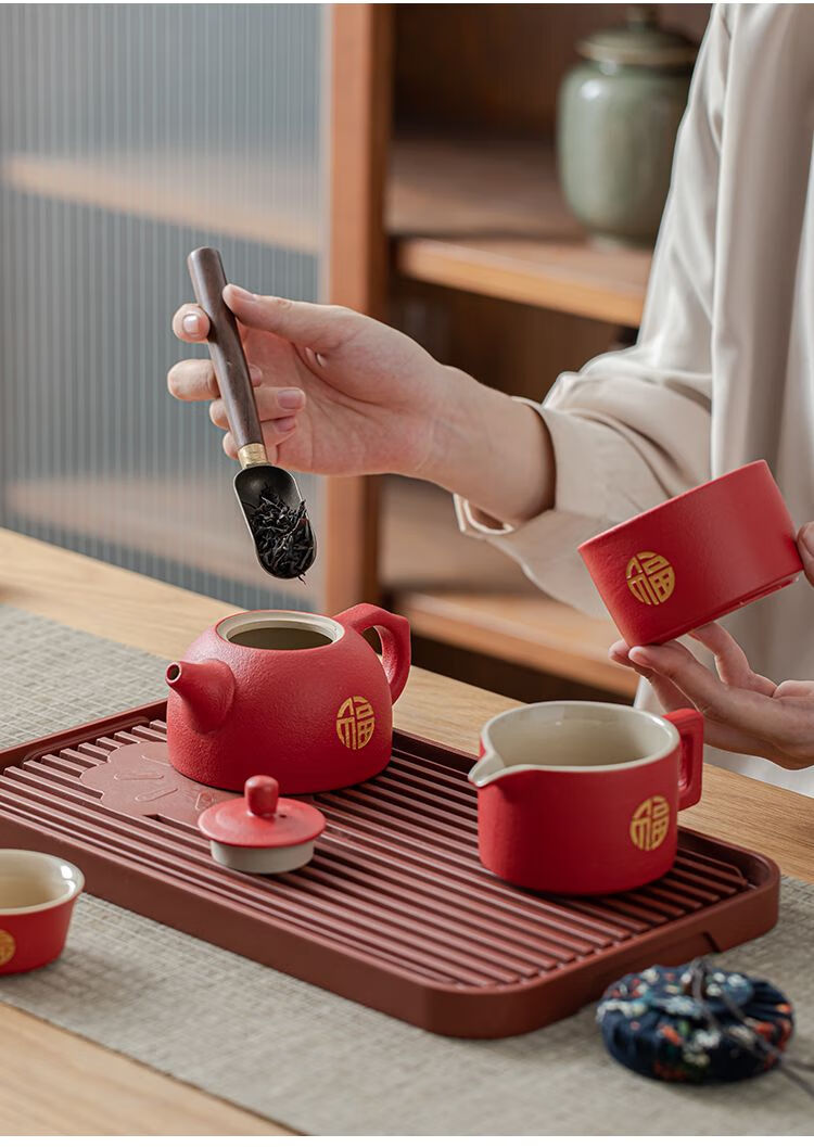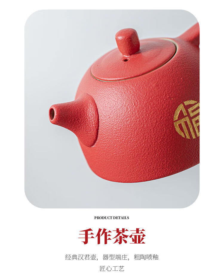 简漾敬茶杯结婚茶具套装家用描金喜杯喜茶壶婚庆新人改口敬茶陪嫁用品 喜字井栏壶6杯