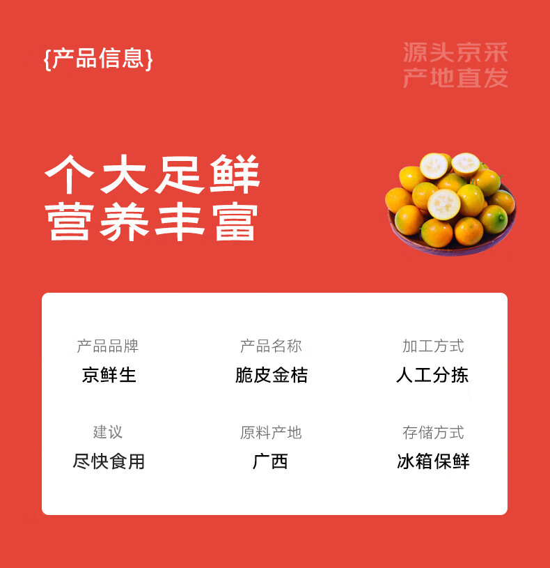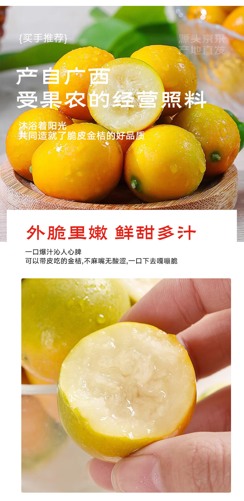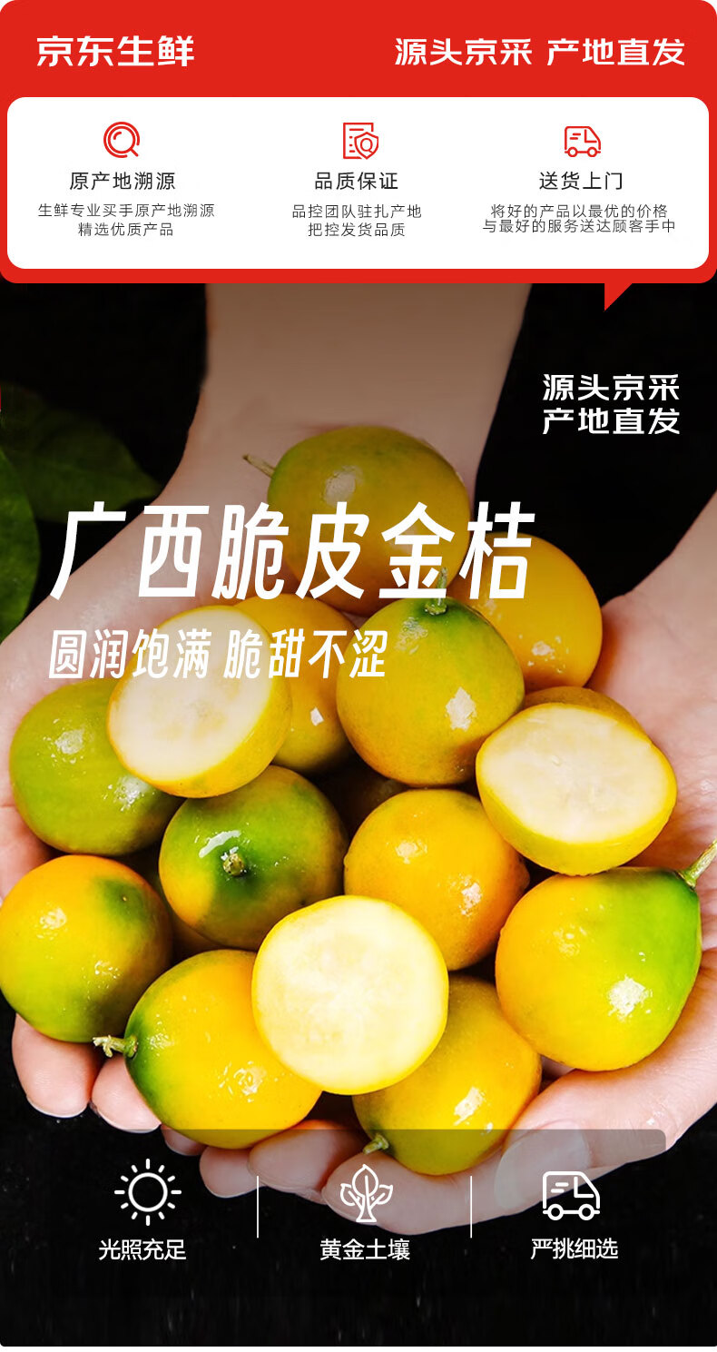 京鲜生 广西脆皮金桔 净重2斤 单果20g+ 金柑新鲜水果 源头直发包邮