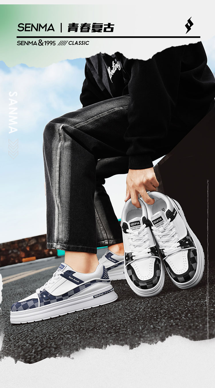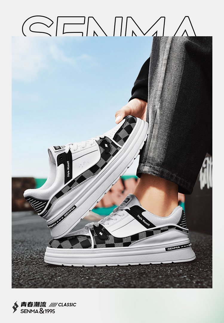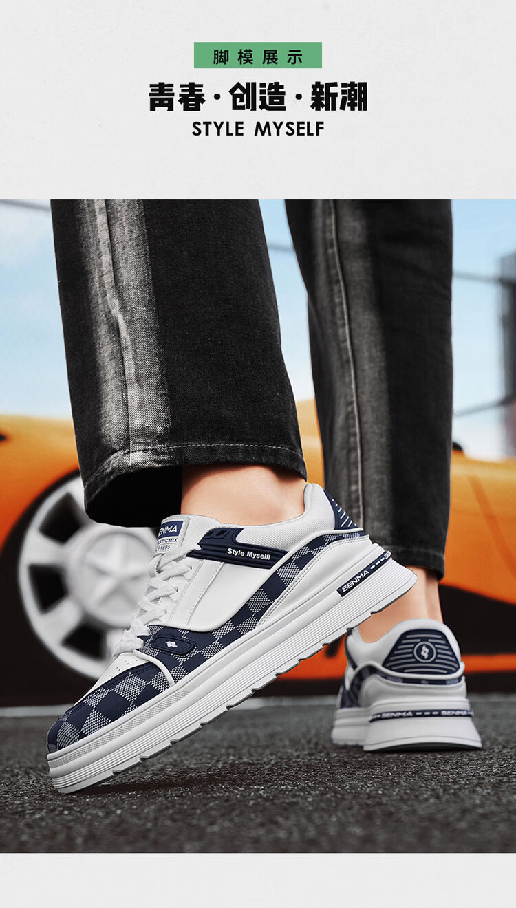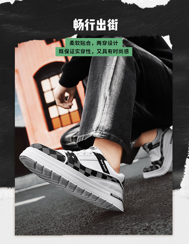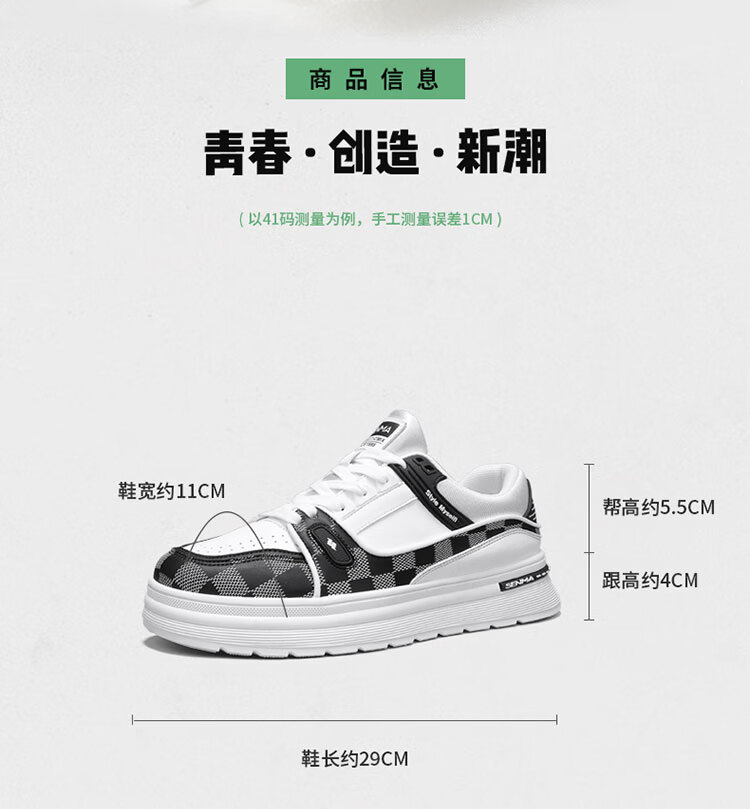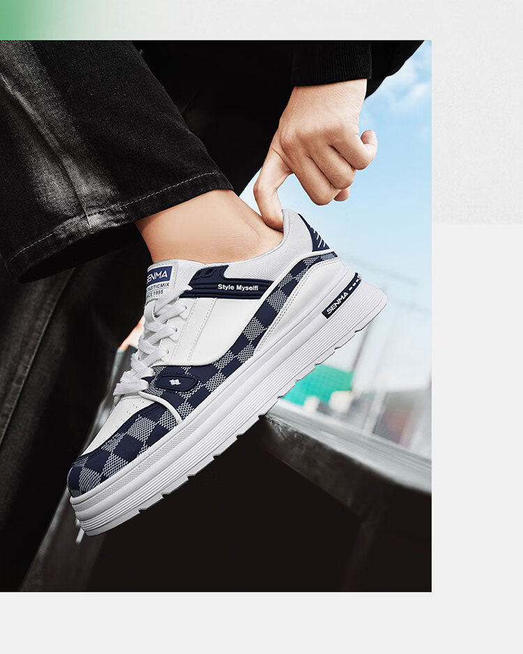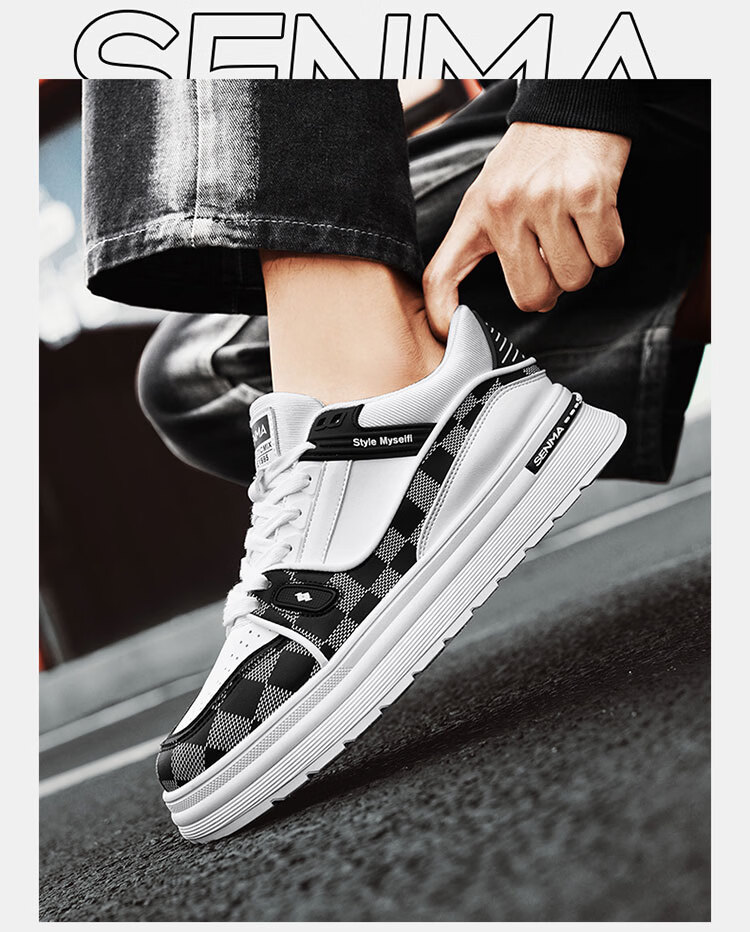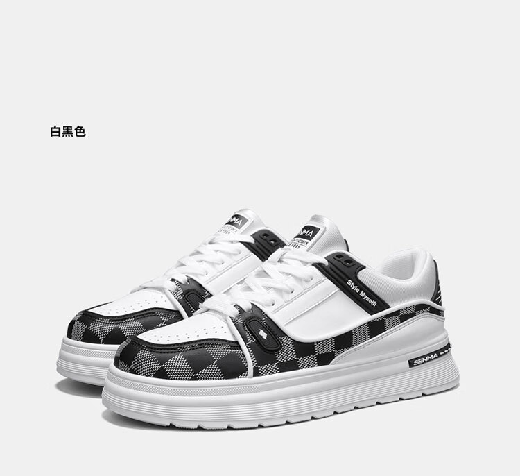 森馬男鞋2026新款春季潮牌百搭运动休闲板鞋男士增高皮面防水小白潮鞋 白黑【基础款】 39 标准码数/现货秒发