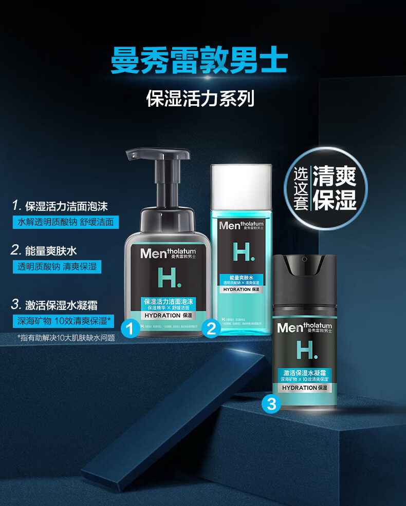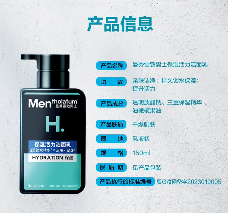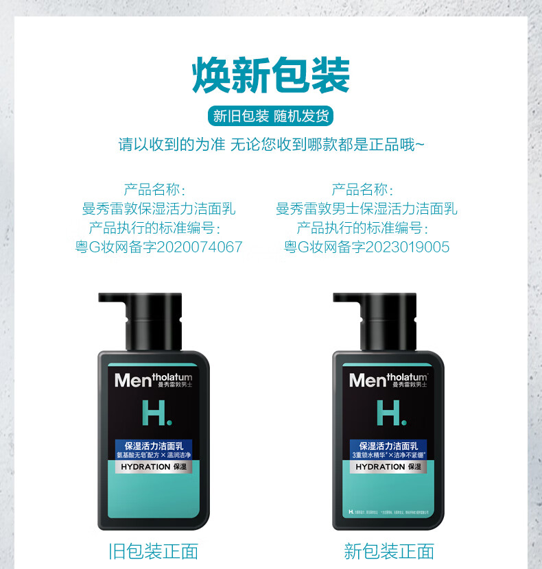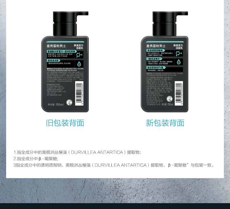 曼秀雷敦男士专用洗面奶控油抗痘+温和保湿氨基酸洁面150ml*2送男生