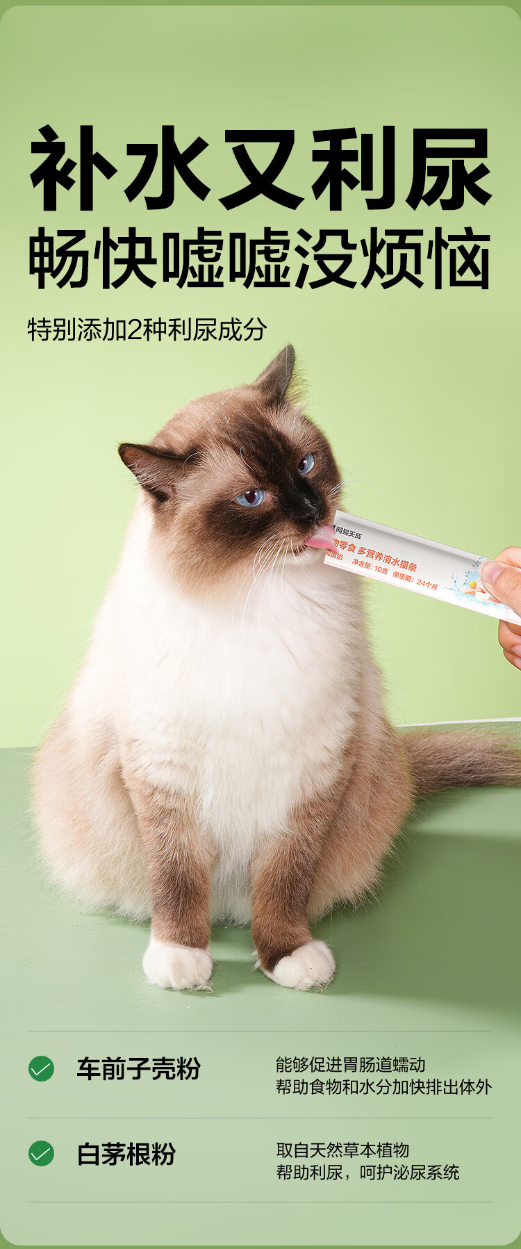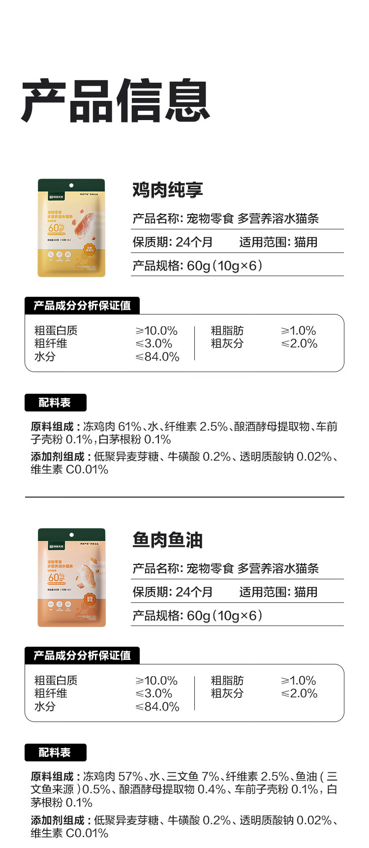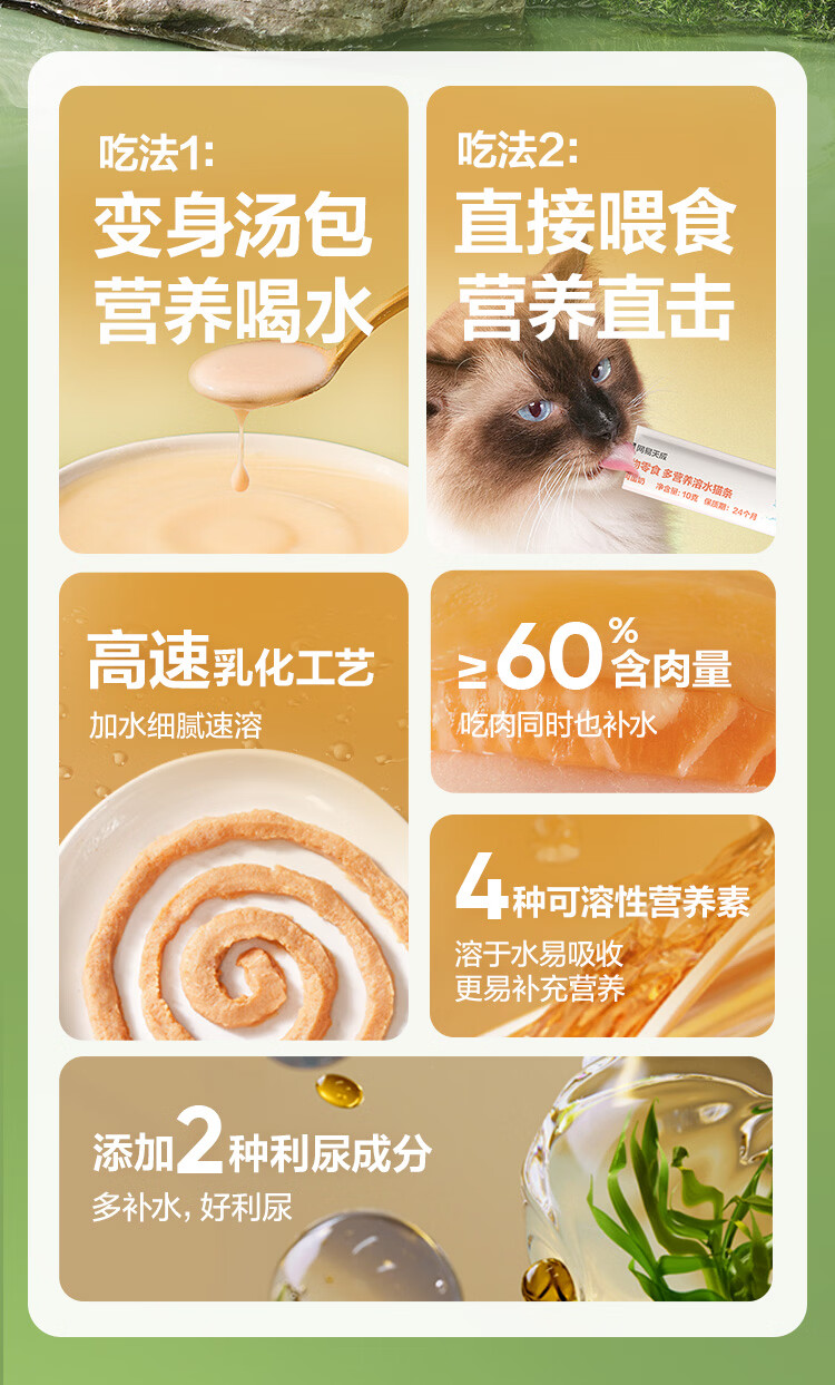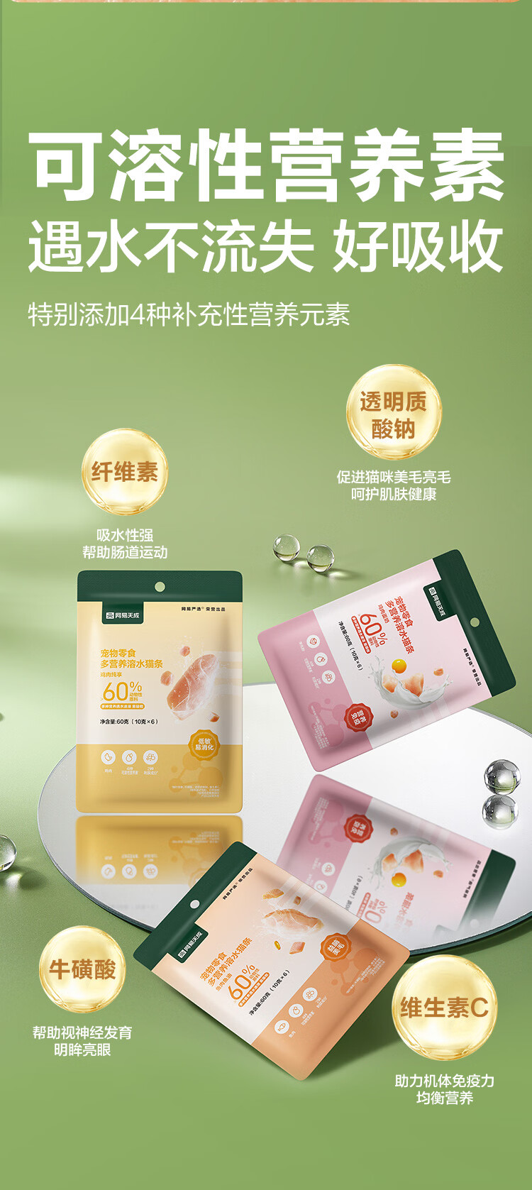 网易严选多营养速溶猫条 宠物零食营养增肥 成幼猫通用美毛猫条低敏易消化 三味混合 10g*60袋