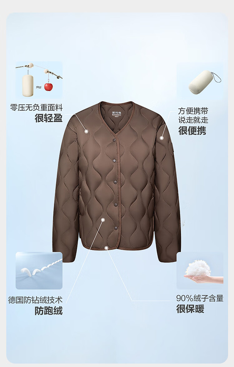波司登(BOSIDENG)春秋轻薄羽绒服女短款90绒三防轻便内胆葫芦纹外套B250131012 【趋势推荐】秘釉色7475 M 165/88A 体重约110-120斤