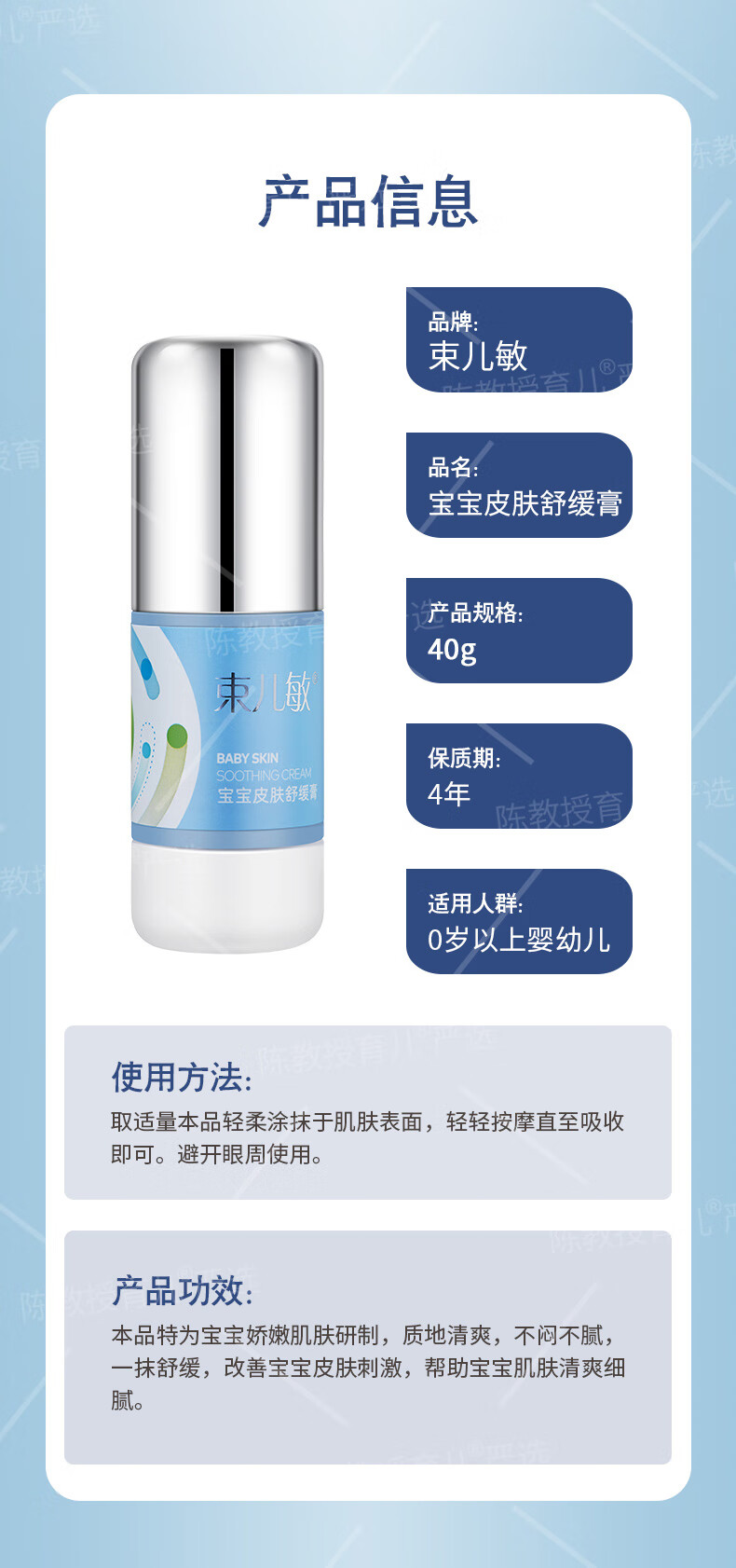 束儿敏儿童保湿舒缓膏 敏感肌肤舒适清爽细腻舒缓膏 舒缓膏40g*2瓶