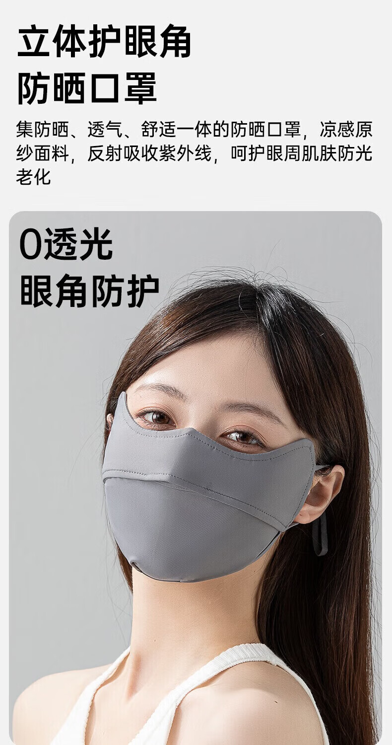 觅橘护眼角防晒口罩冰丝防紫外线户外立体夏季超薄透气遮阳C 【护眼角款】-黑色