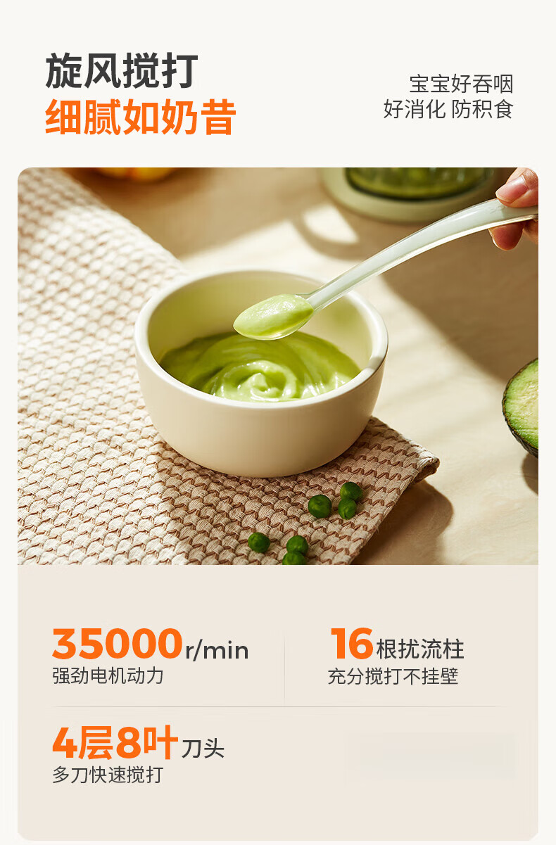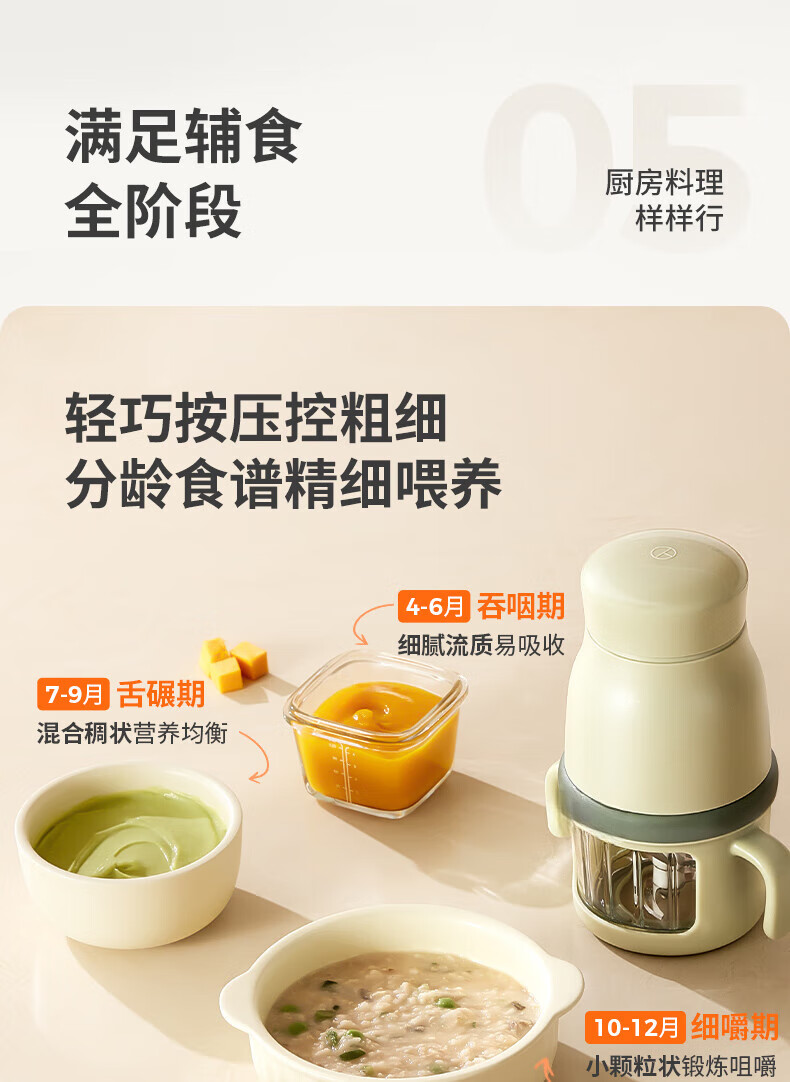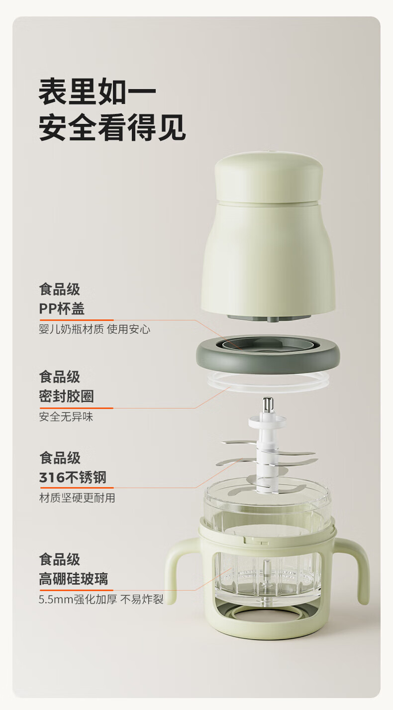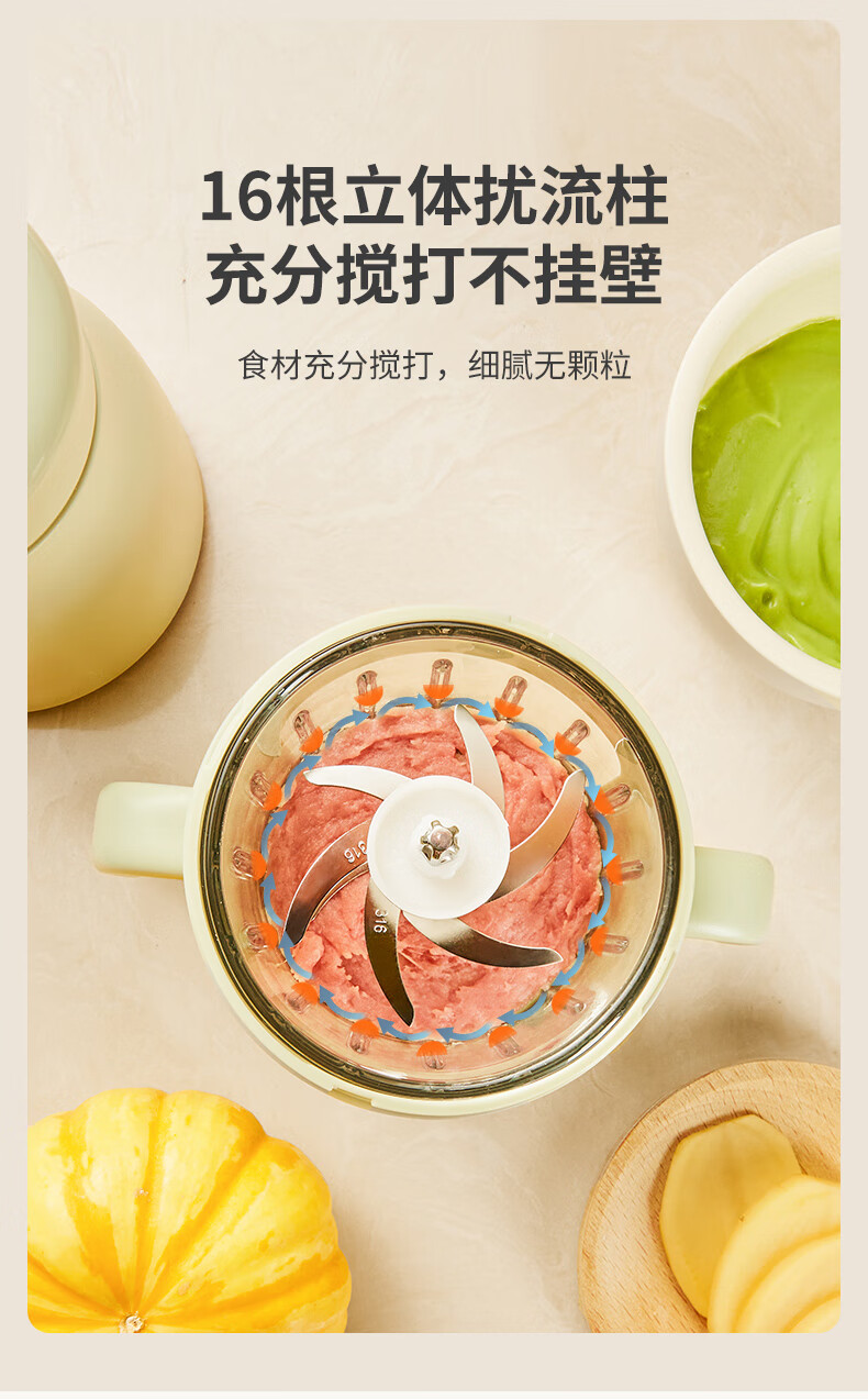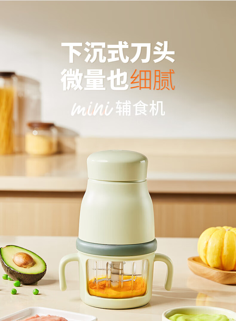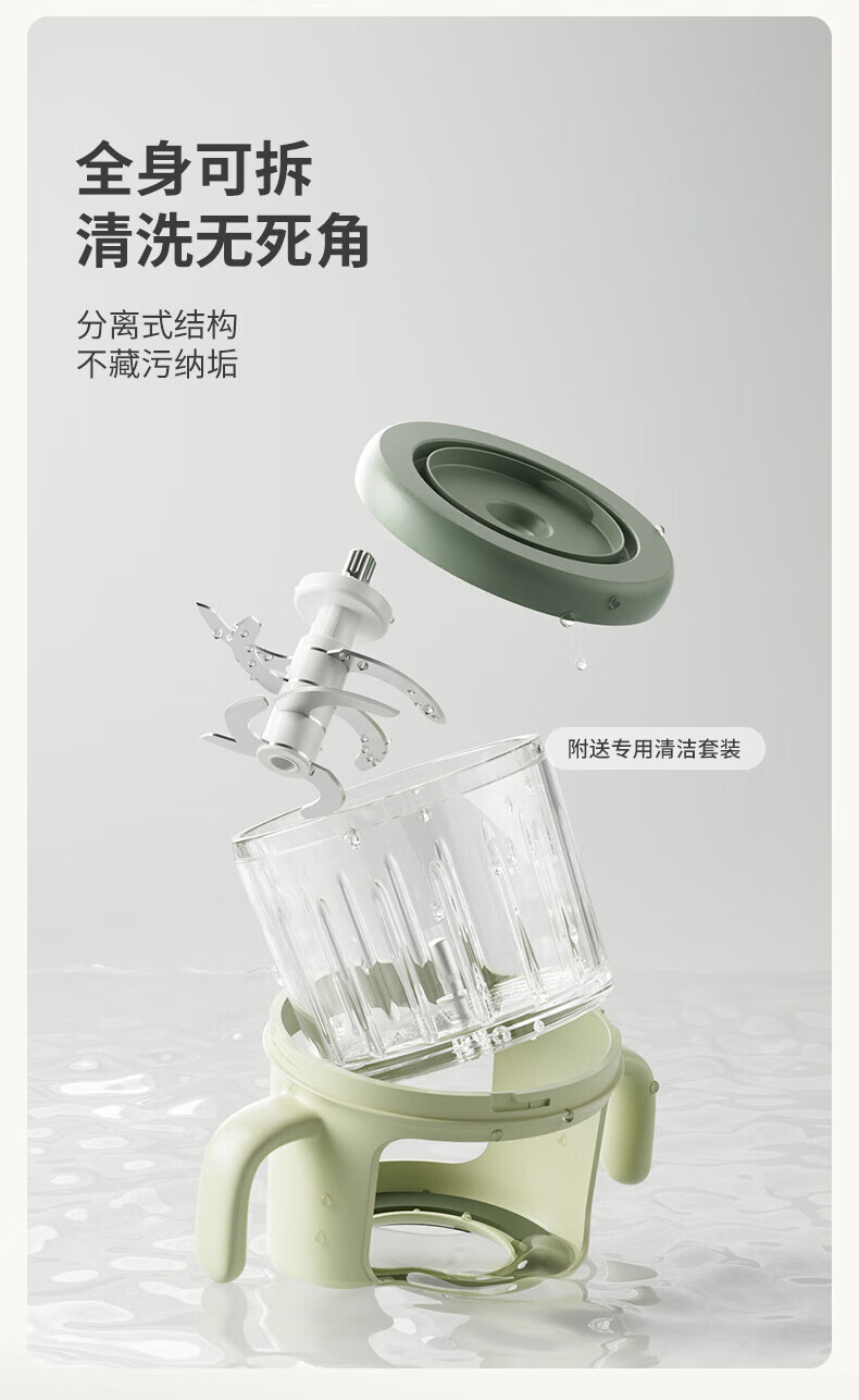 煦凛日本婴儿辅食机打泥机婴儿专用小型多功能幼儿搅拌食物研磨米糊机 【青莲绿】316不锈钢8刀头+单杯