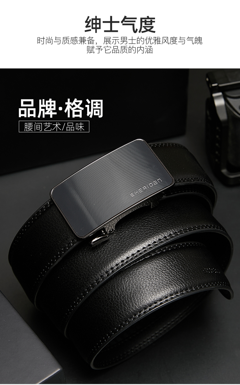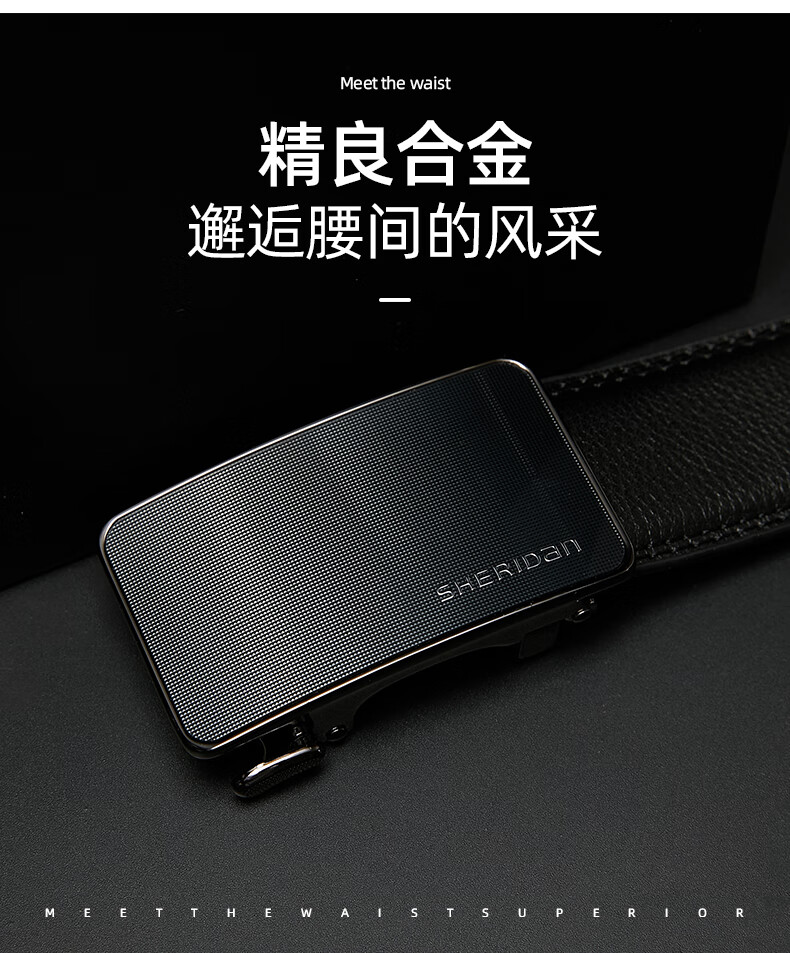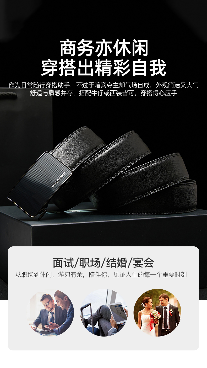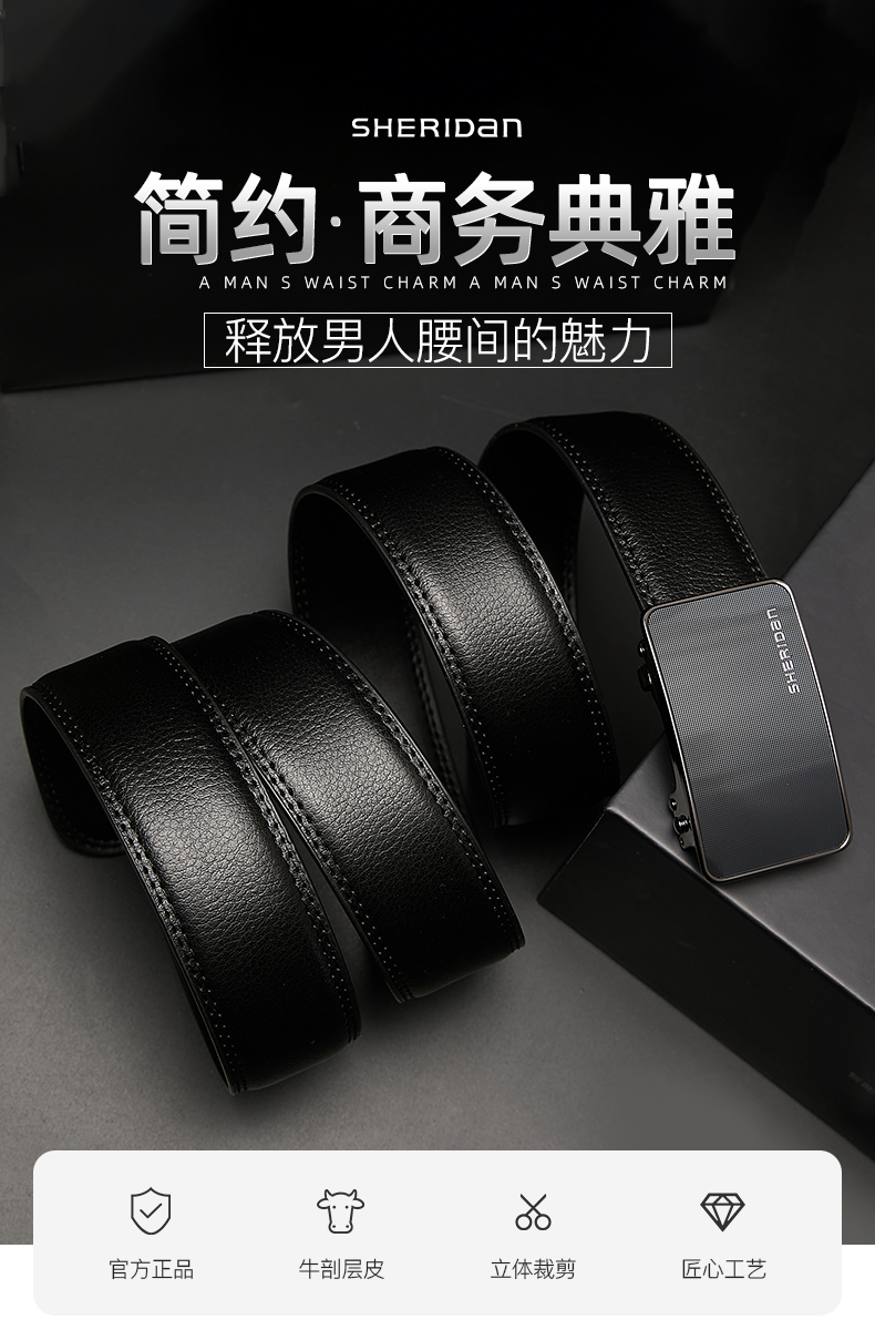 喜来登(SHERIDAN)皮带男士 新款 牛皮自动扣商务腰带休闲裤带精致 礼盒装送男友 黑色SH521565S