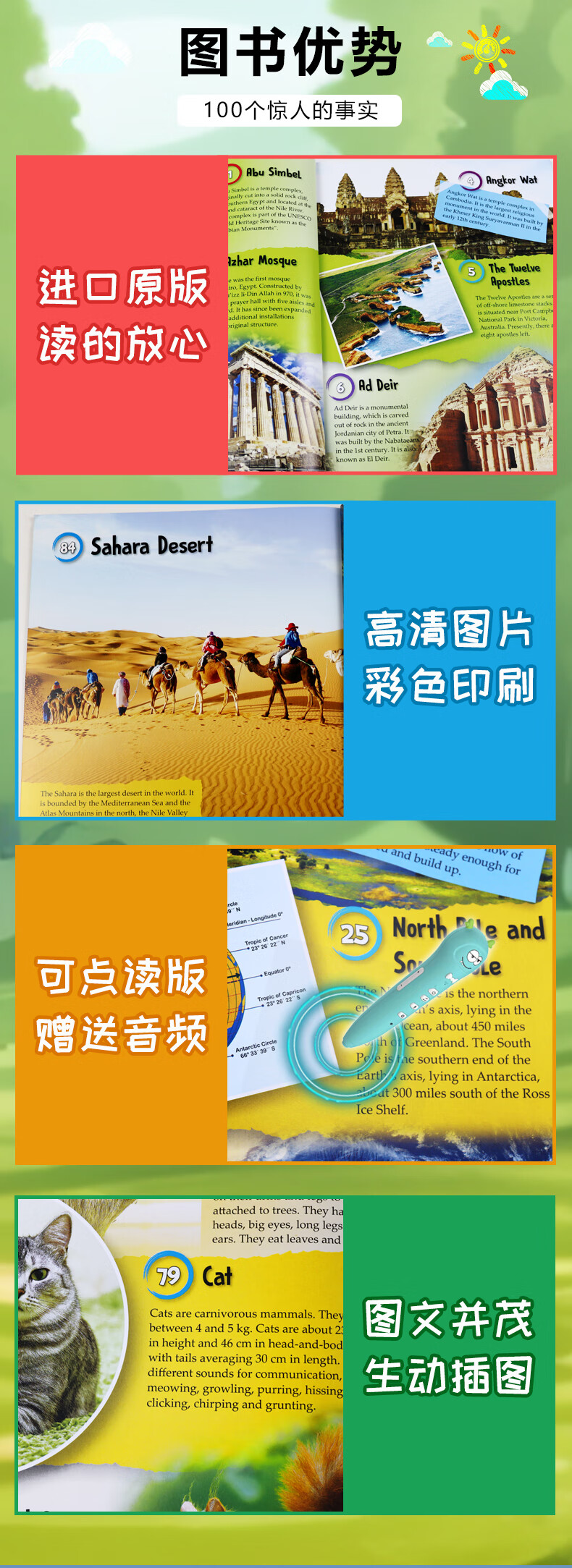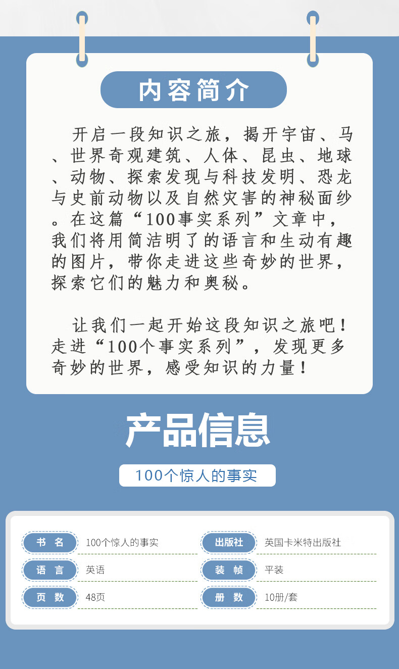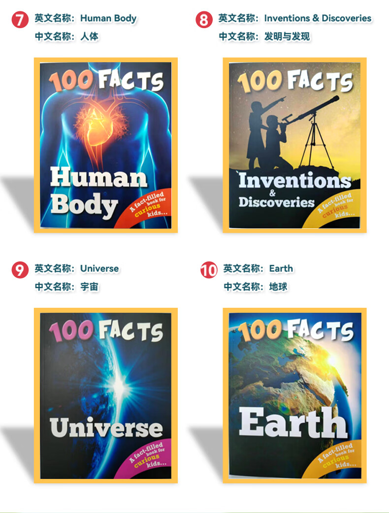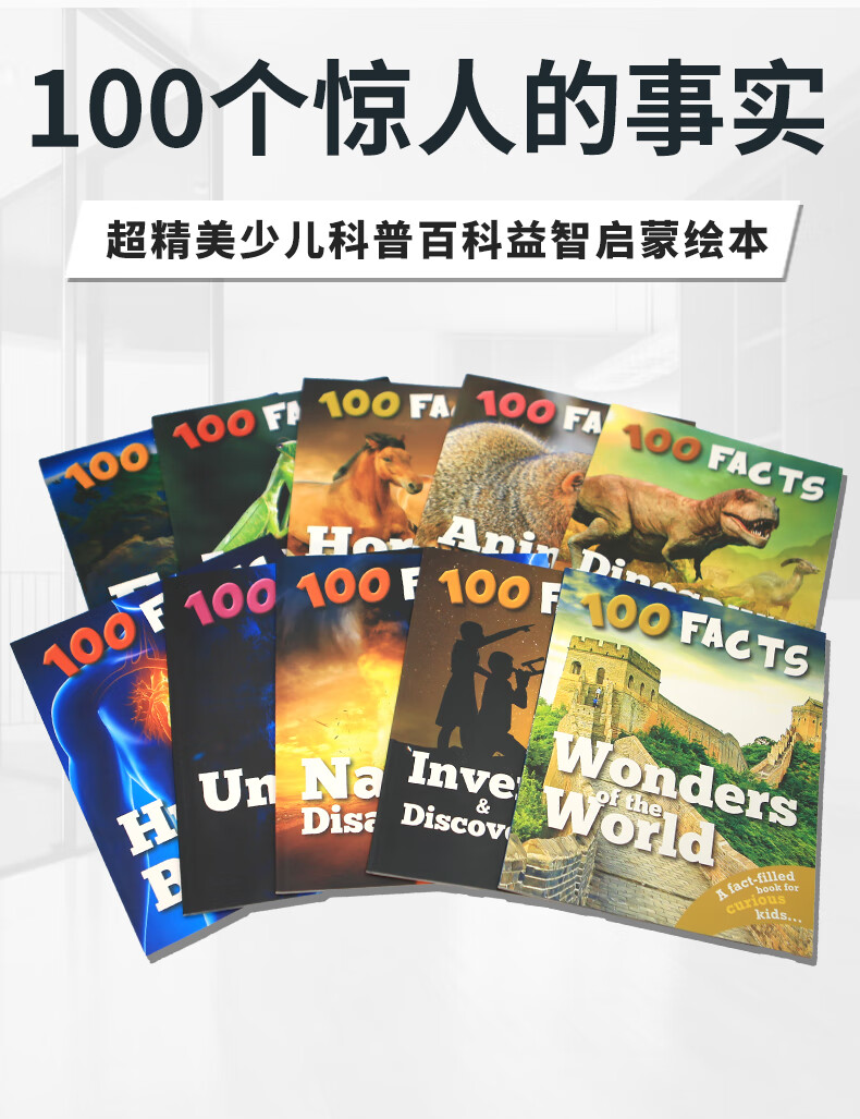 【可点读进口原版正品】儿童科普读物 幼儿英语启蒙绘本 100FACTS 100事实系列 儿童认知百科 英语故事绘本 英文原版 科普百科读物地球简史 动物大百科书籍 100FACTS全套10册