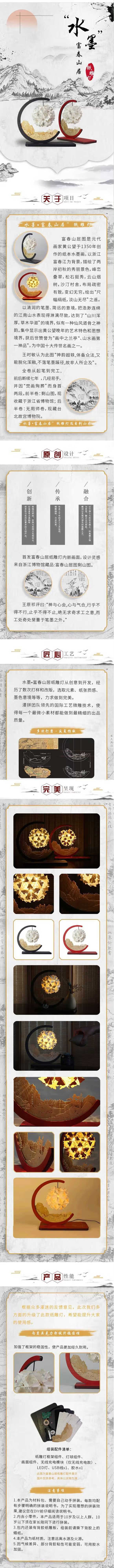 卓誉造物故宫纸雕灯diy文创小夜灯敦煌中式手工元旦节手工生日礼物摆件女 富春山居蓝 非无线充