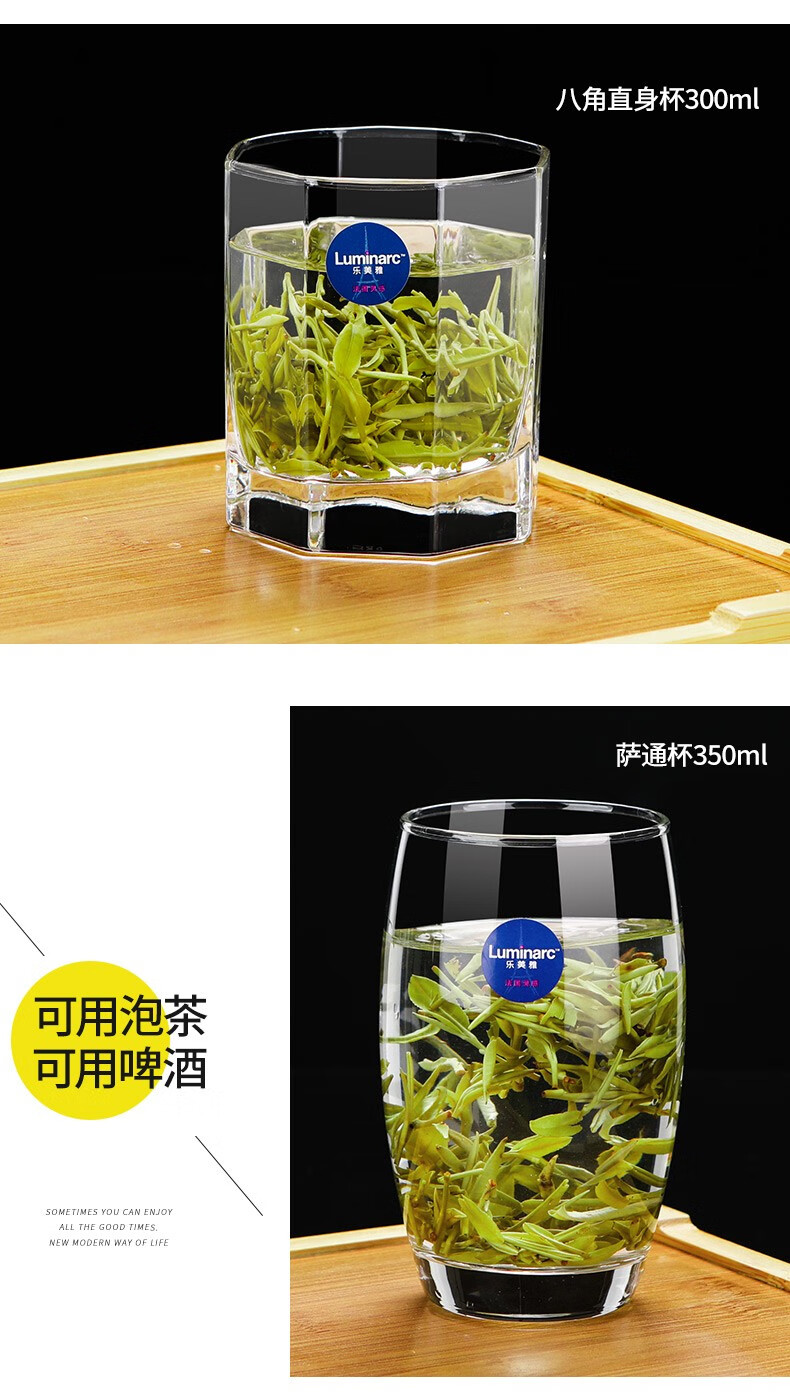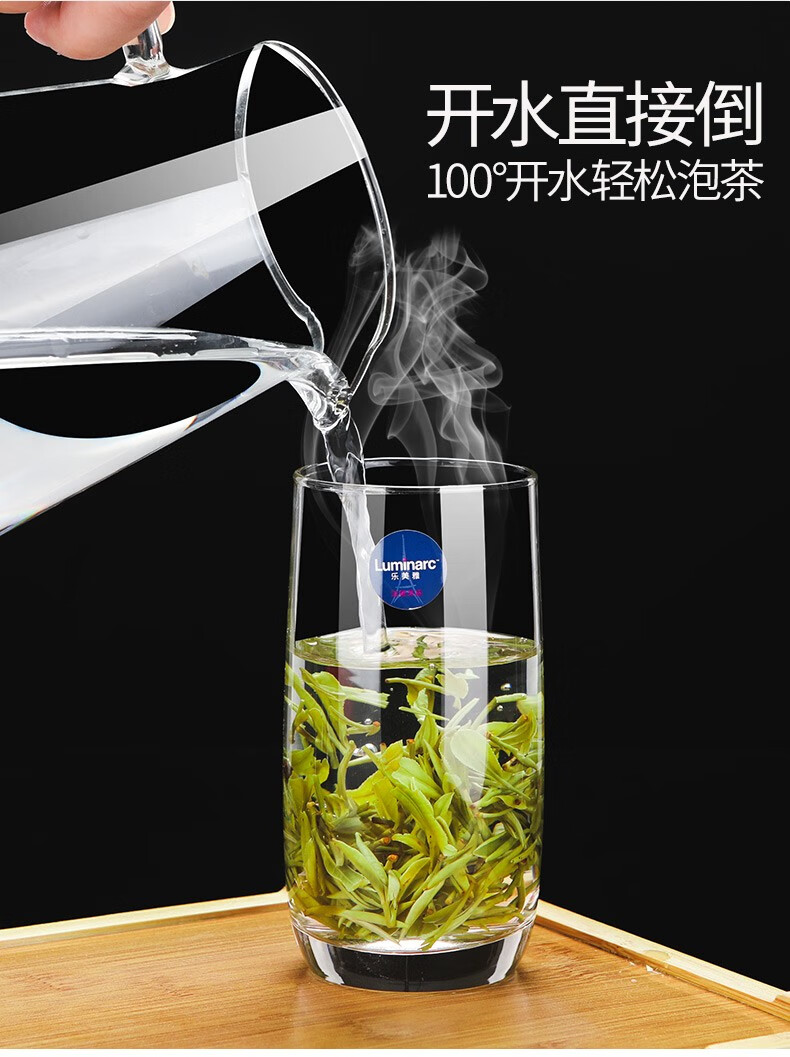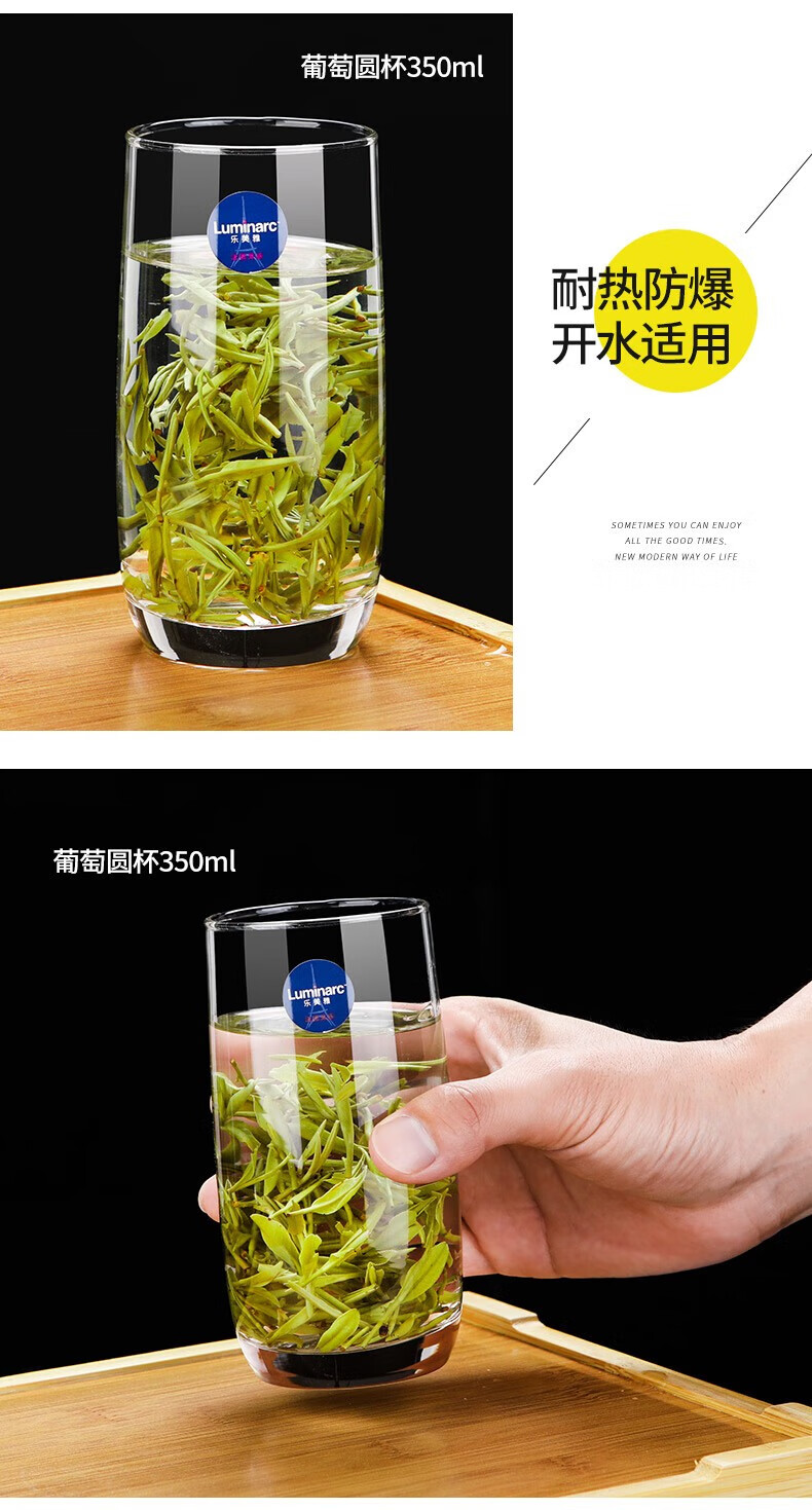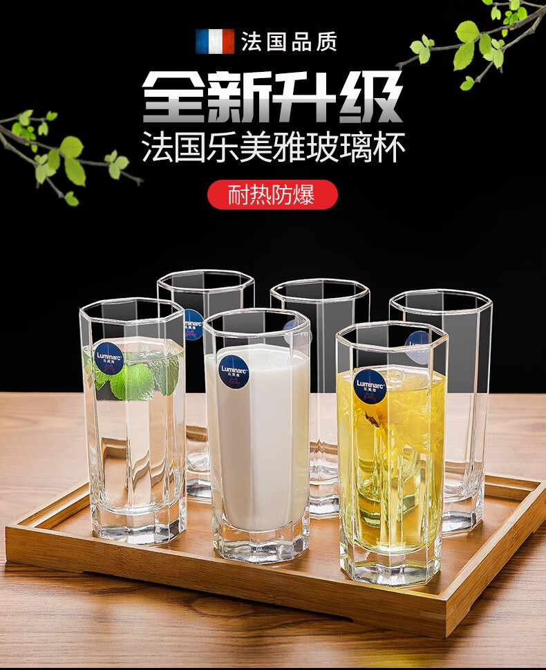 乐美雅无铅耐热玻璃杯四方喝水杯子家用牛奶果汁杯茶杯洋酒啤酒杯6只装 6只装/圆形矮杯150ML