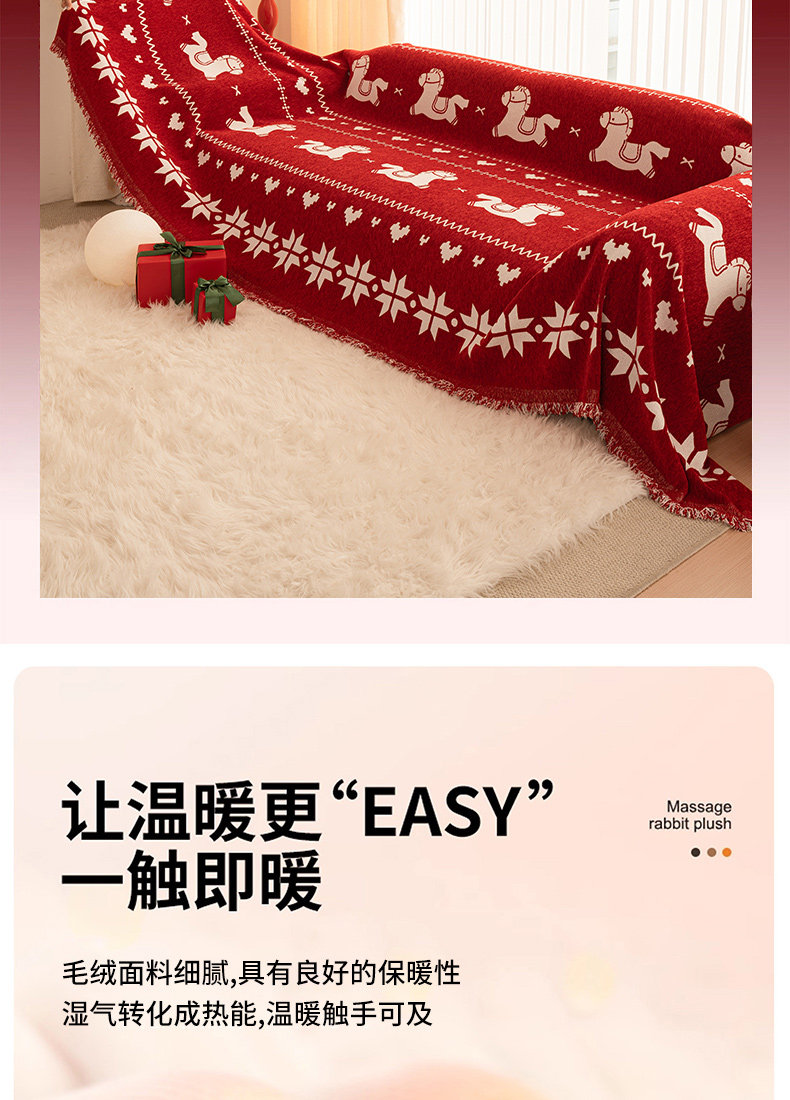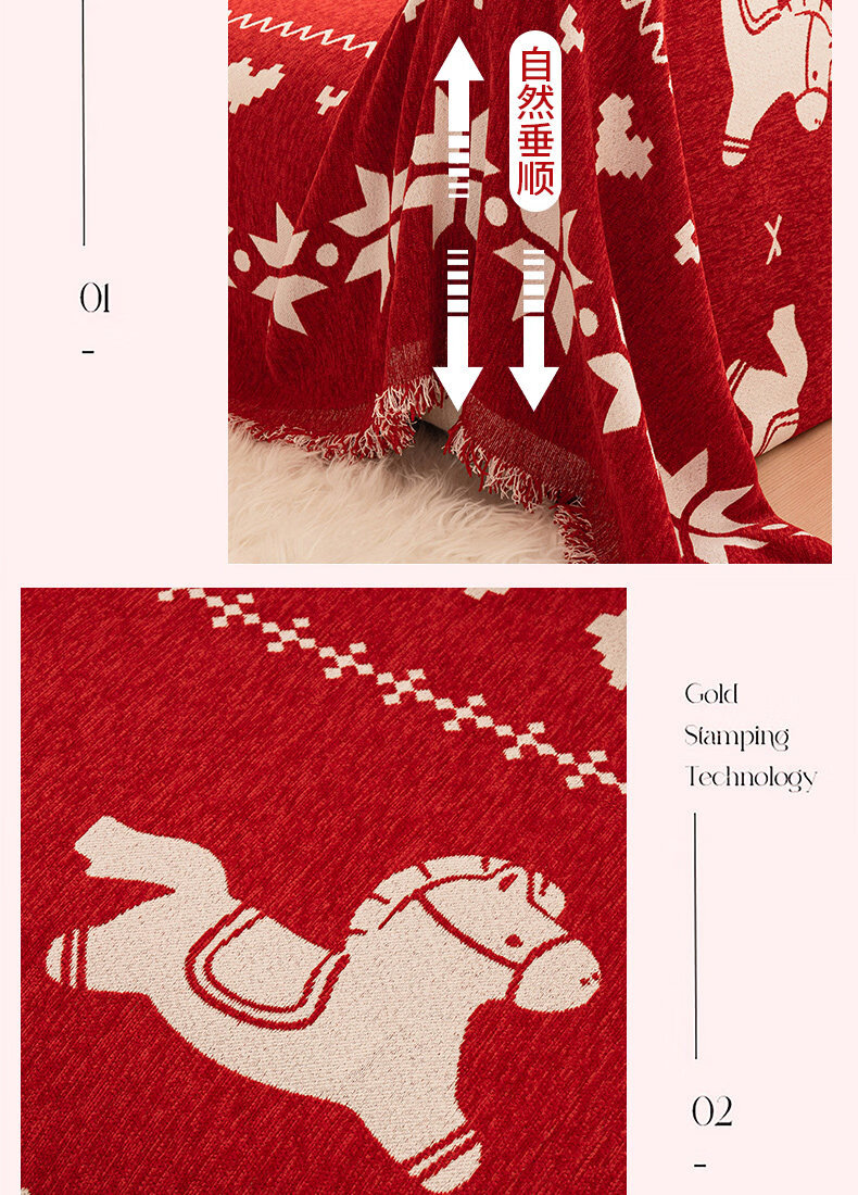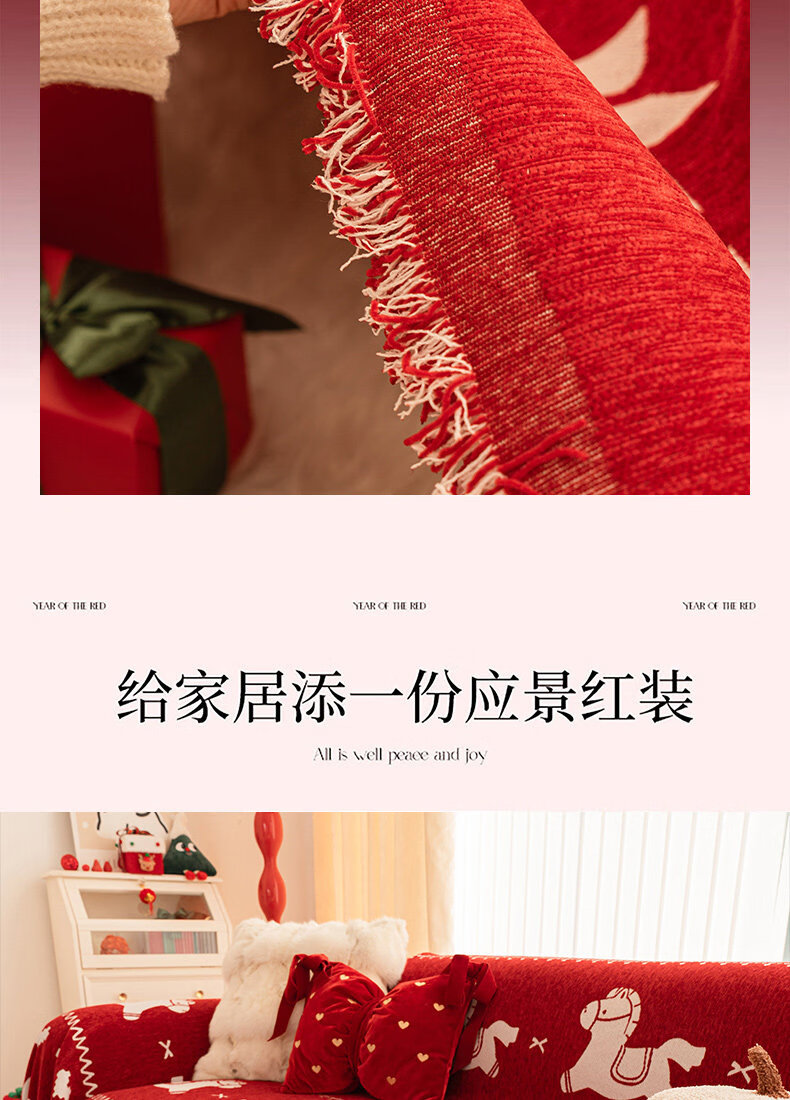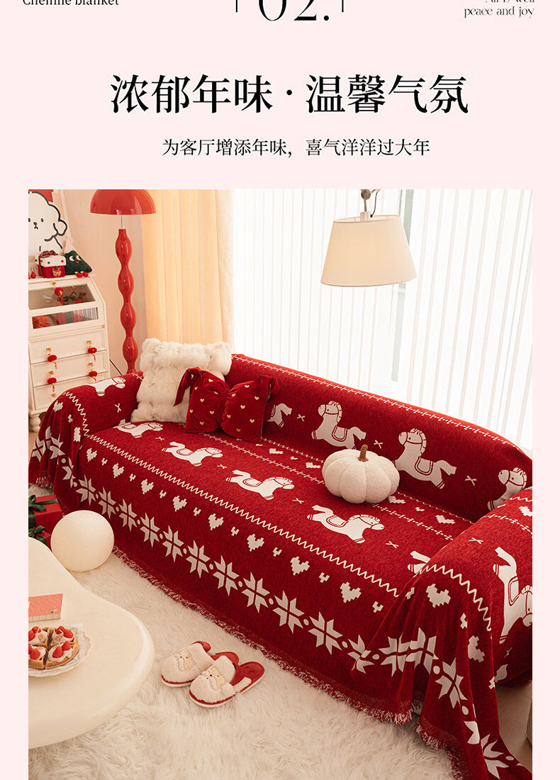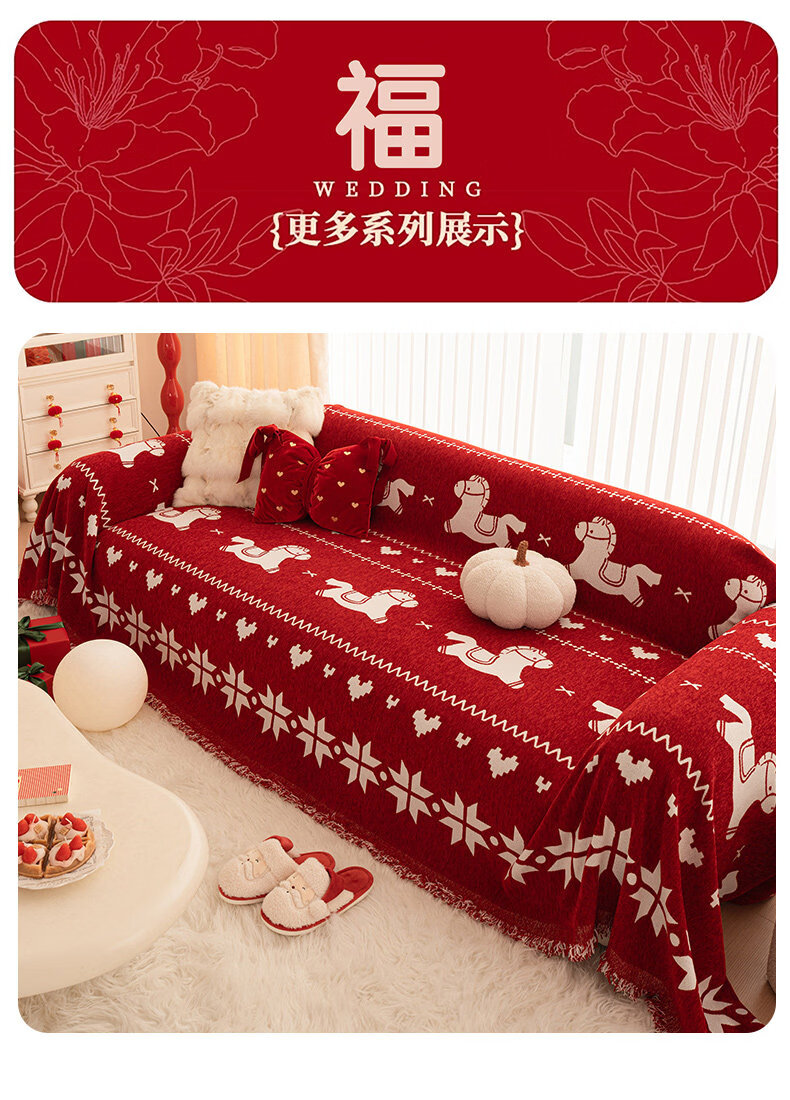 ALPLUME红色喜庆沙发盖布2026年新款四季通用防猫抓一整张全盖沙发巾毯子 福随马至 180*180cm【适合大单人位】