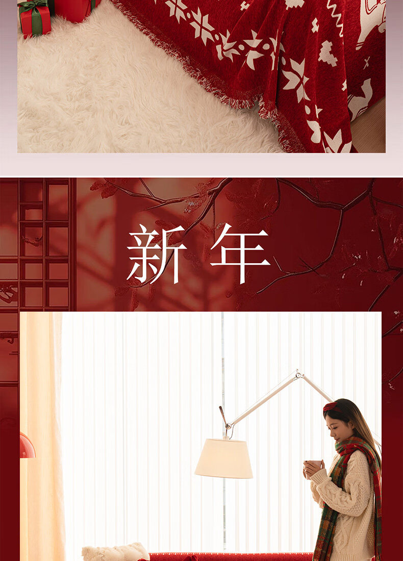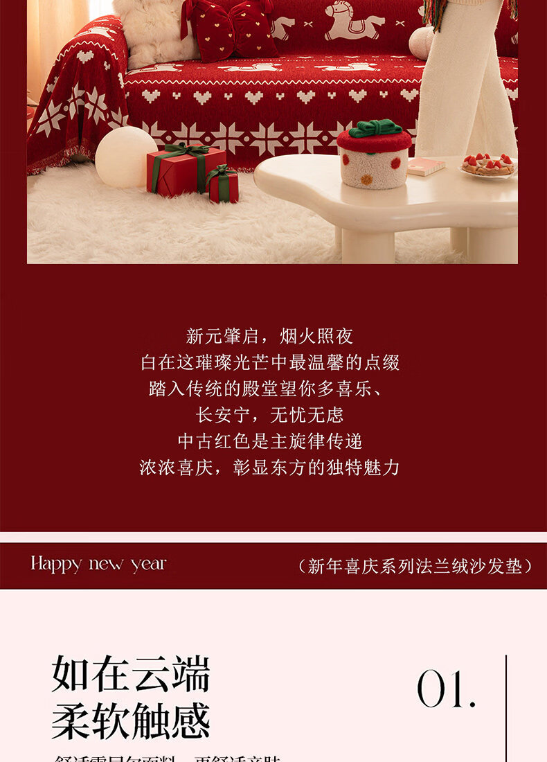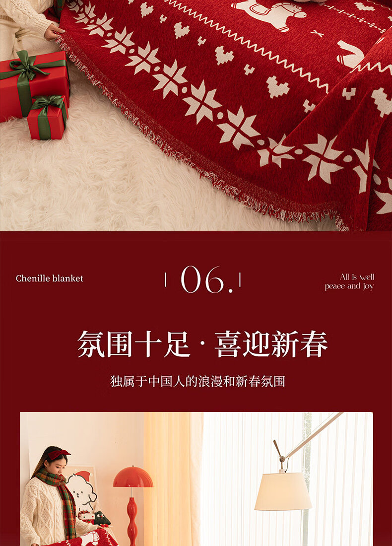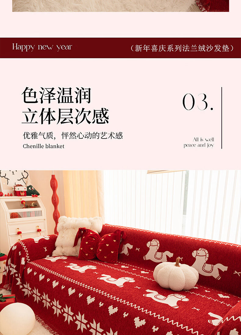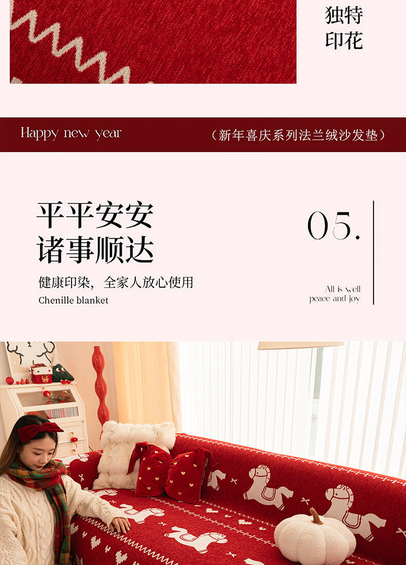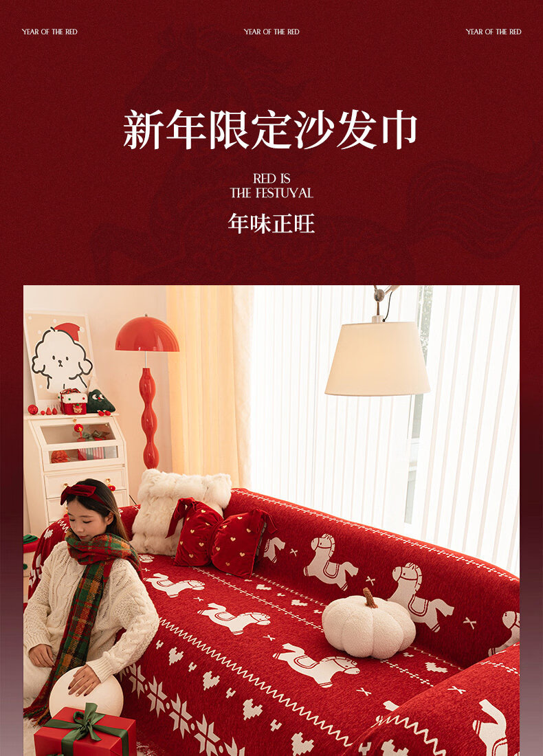 ALPLUME红色喜庆沙发盖布2026年新款四季通用防猫抓一整张全盖沙发巾毯子 福随马至 180*180cm【适合大单人位】