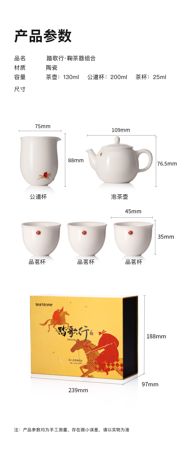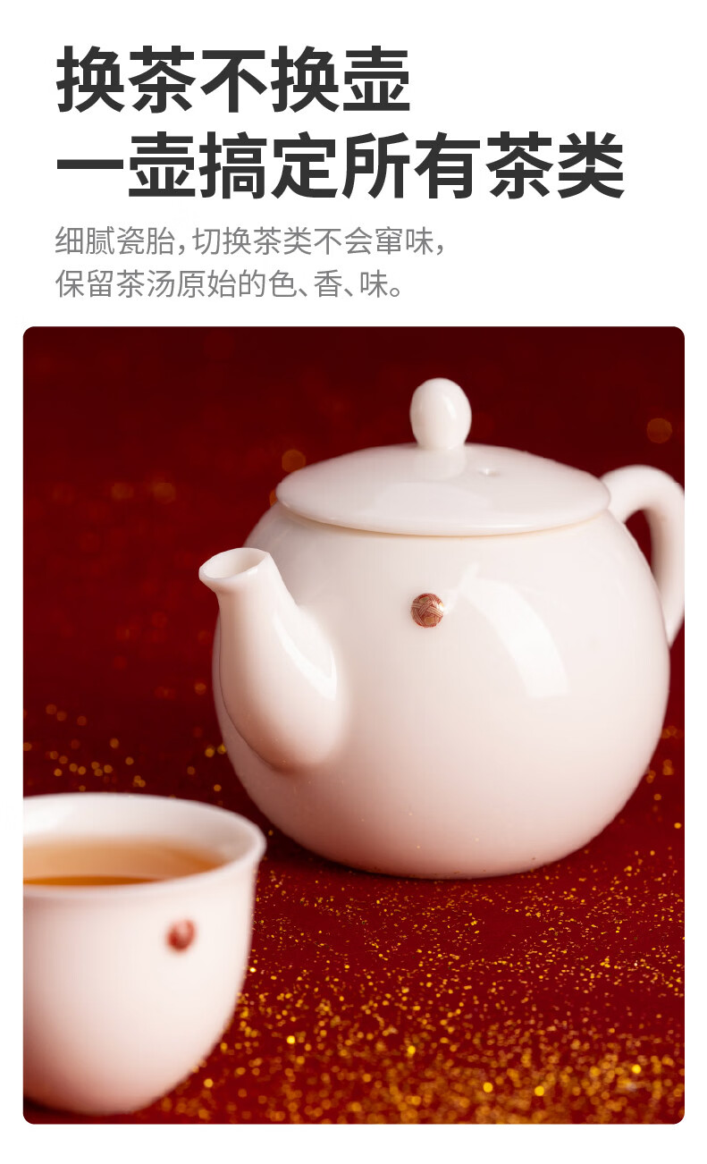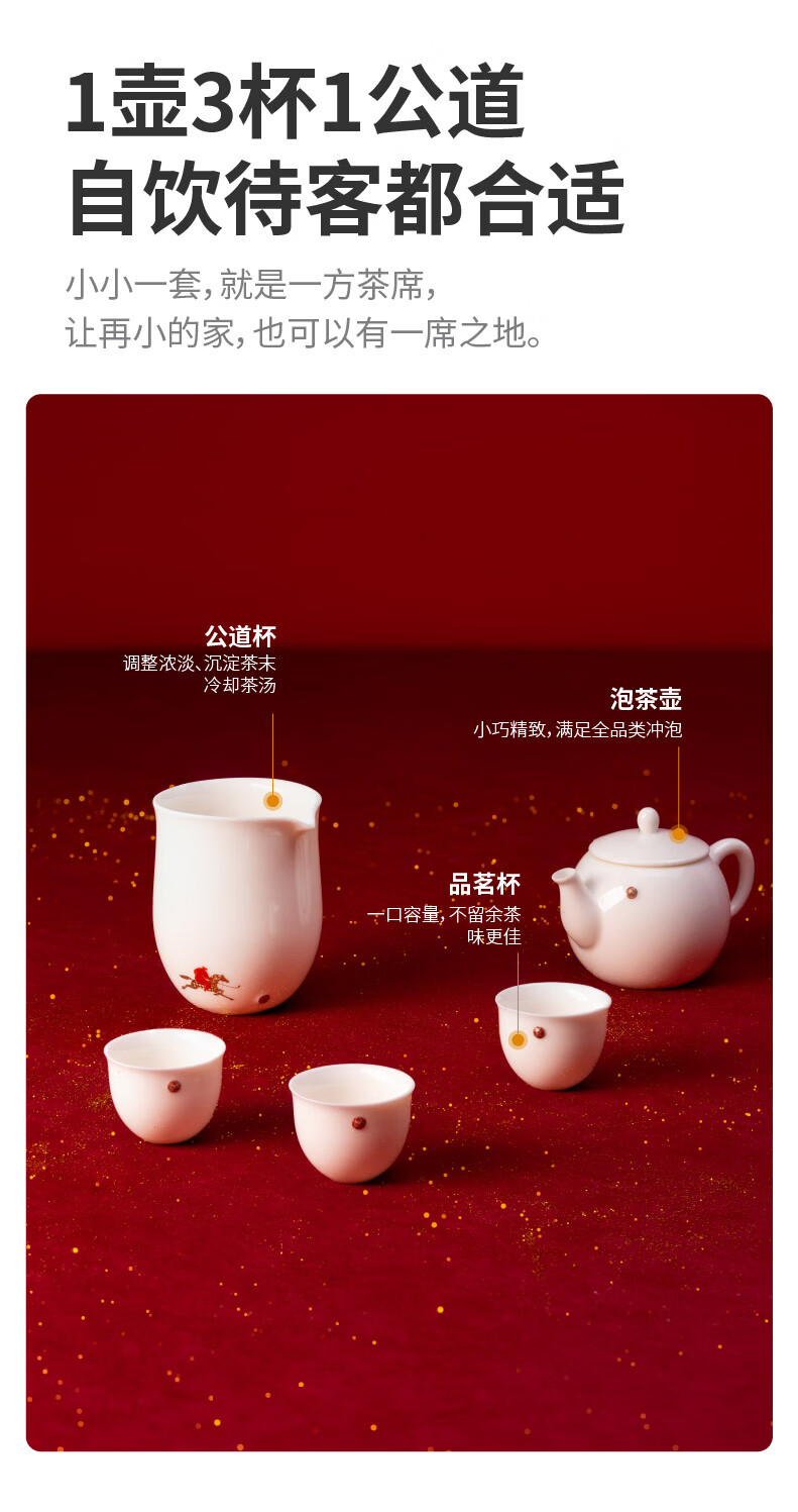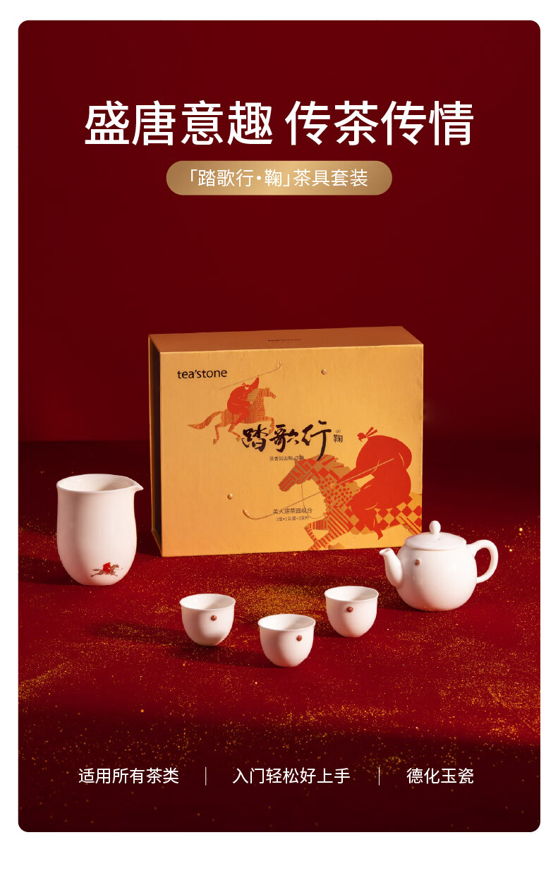 teastone美人痣踏歌行鞠羊脂玉白瓷功夫茶具套装礼盒1壶3杯公道杯茶壶马年 【马年限定】踏歌行·鞠 3人饮